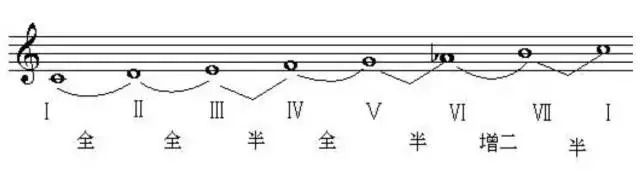 和声小调音阶:6 7 1 2 3 4 #5 6