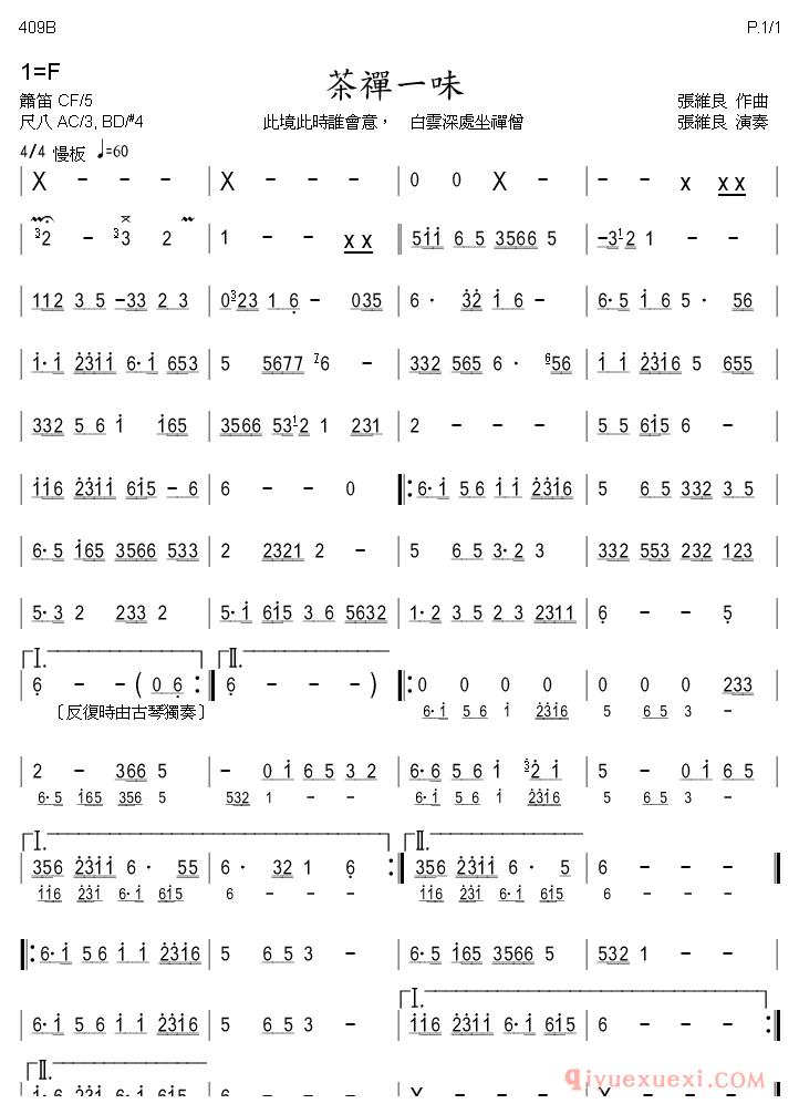 箫谱《茶禅一味》独奏曲目高清电子版乐谱歌词图片是器乐学习网于2021年10月09日 09:37:39更新分享的洞箫曲谱;资源收录于洞箫曲谱栏目中;器乐学习网免费分享箫谱《茶禅一味》独奏曲目简谱与五线谱歌谱图片,欢迎在线免费下载;器乐学习网无需注册会员,直接免费下载各类乐器学习资源及乐谱。