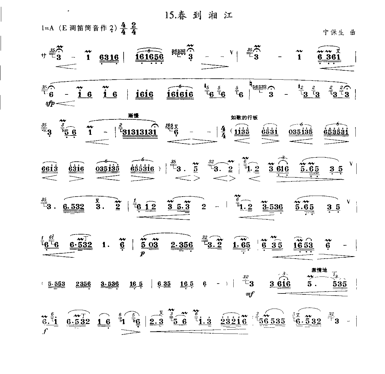 竹笛乐谱《春到湘江》宁保生 曲高清电子版乐谱歌词图片是器乐学习网于2023年07月14日 09:53:58更新分享的笛子曲谱;资源收录于笛子曲谱栏目中;器乐学习网免费分享竹笛乐谱《春到湘江》宁保生 曲简谱与五线谱歌谱图片,欢迎在线免费下载;器乐学习网无需注册会员,直接免费下载各类乐器学习资源及乐谱。