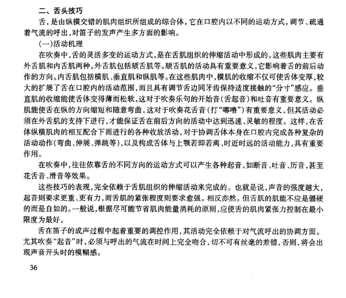 舌,是由纵横交错的肌肉组织所组成的综合体,它在口腔内以不同的运动方式,调节、疏通着气流的呼出,对笛子的发声产生多方面的影响。