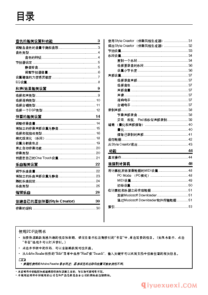 PSR-S650电子琴参考手册(简体中文)目录