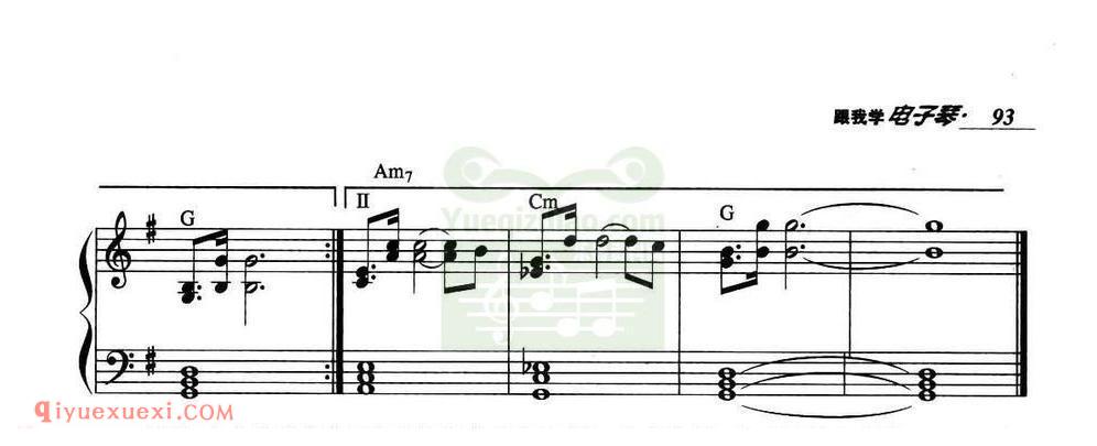 提示:本曲的难点在双音及保留吾(指)的奏法,注意弹好三连音及附点音符。