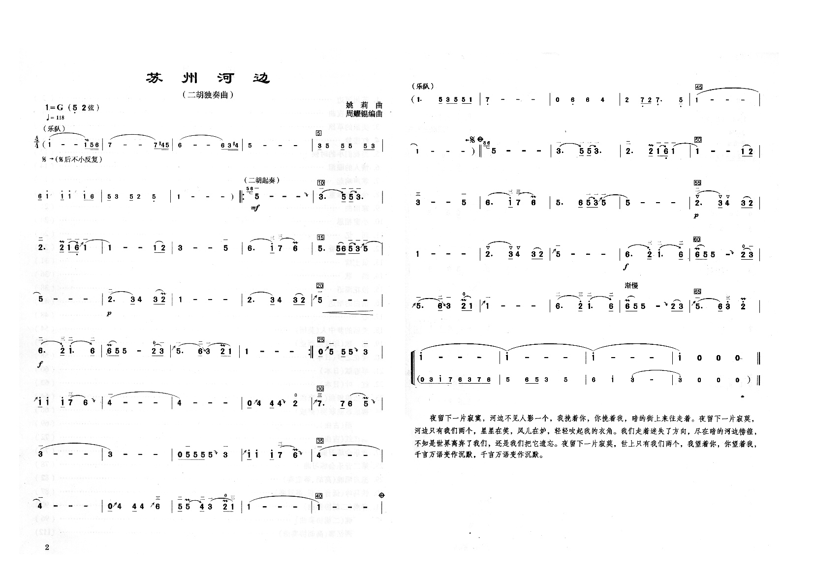 苏州河边二胡曲谱高清电子版乐谱歌词图片是器乐学习网于2024年07月13日 11:46:07更新分享的二胡曲谱;资源收录于二胡曲谱栏目中;器乐学习网免费分享苏州河边二胡曲谱简谱与五线谱歌谱图片,欢迎在线免费下载;器乐学习网无需注册会员,直接免费下载各类乐器学习资源及乐谱。