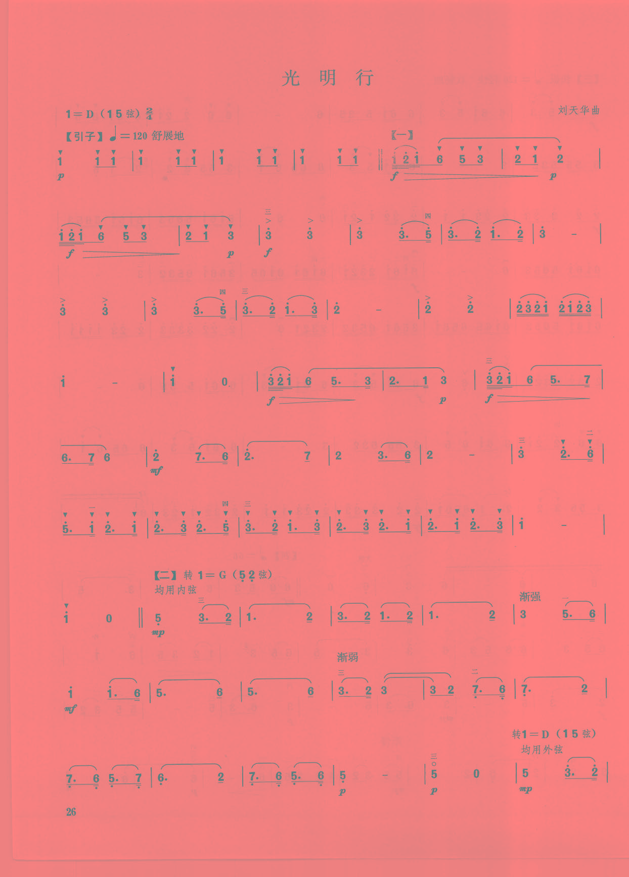 二胡考级四级乐曲谱《光明行》刘天华曲高清电子版乐谱歌词图片是器乐学习网于2023年08月17日 16:39:52更新分享的二胡曲谱;资源收录于二胡曲谱栏目中;器乐学习网免费分享二胡考级四级乐曲谱《光明行》刘天华曲简谱与五线谱歌谱图片,欢迎在线免费下载;器乐学习网无需注册会员,直接免费下载各类乐器学习资源及乐谱。