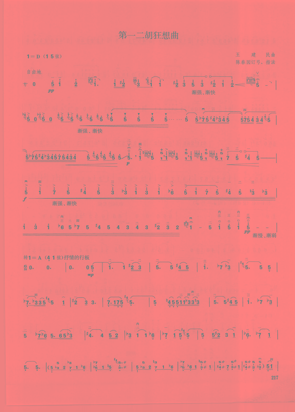 二胡考级十级乐曲谱《第一二胡狂想曲》王建民曲 陈春园订弓、指法高清电子版乐谱歌词图片是器乐学习网于2023年08月20日 09:49:15更新分享的二胡曲谱;资源收录于二胡曲谱栏目中;器乐学习网免费分享二胡考级十级乐曲谱《第一二胡狂想曲》王建民曲 陈春园订弓、指法简谱与五线谱歌谱图片,欢迎在线免费下载;器乐学习网无需注册会员,直接免费下载各类乐器学习资源及乐谱。