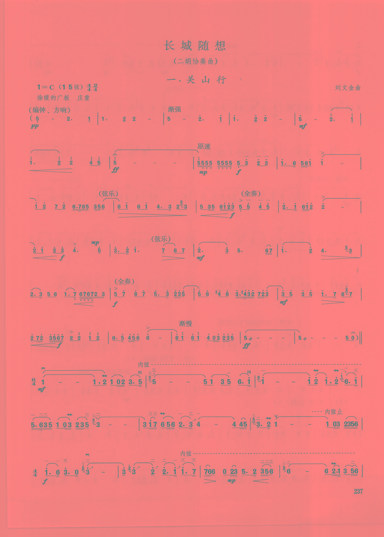 二胡考级十级乐曲谱《长城随想》刘文金曲高清电子版乐谱歌词图片是器乐学习网于2023年08月20日 09:55:02更新分享的二胡曲谱;资源收录于二胡曲谱栏目中;器乐学习网免费分享二胡考级十级乐曲谱《长城随想》刘文金曲简谱与五线谱歌谱图片,欢迎在线免费下载;器乐学习网无需注册会员,直接免费下载各类乐器学习资源及乐谱。