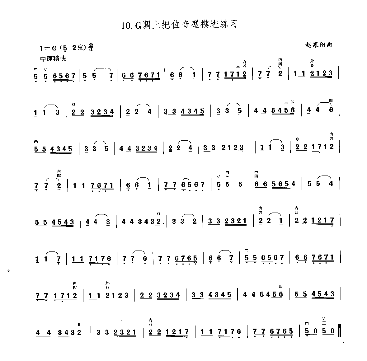 二胡一把位进一步练习谱:G调上把位音型模进练习