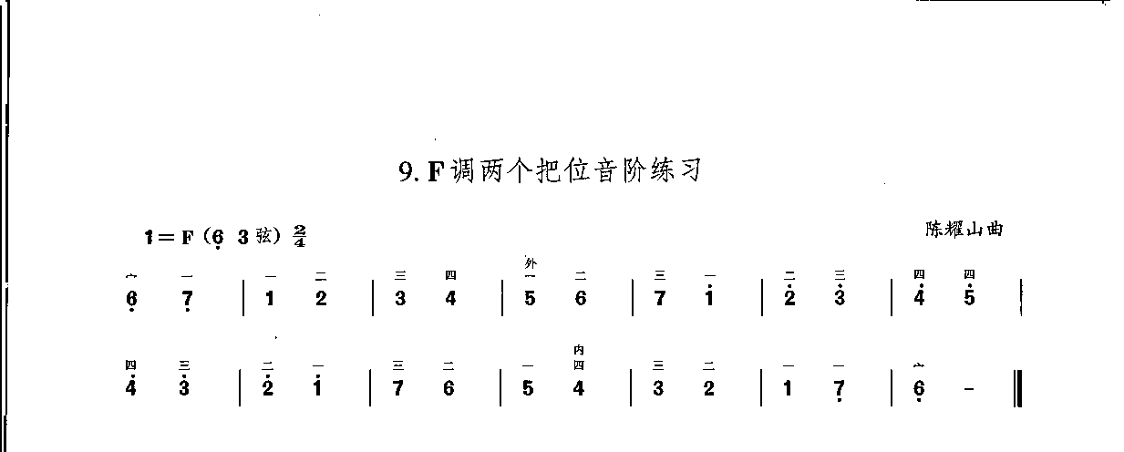 二胡换把练习谱:F调两个把位音阶练习高清电子版乐谱歌词图片是器乐学习网于2023年09月13日 12:03:20更新分享的二胡曲谱;资源收录于二胡曲谱栏目中;器乐学习网免费分享二胡换把练习谱:F调两个把位音阶练习简谱与五线谱歌谱图片,欢迎在线免费下载;器乐学习网无需注册会员,直接免费下载各类乐器学习资源及乐谱。