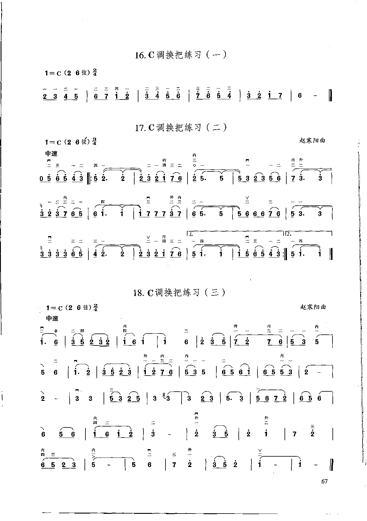 二胡换把练习谱:C调换把练习