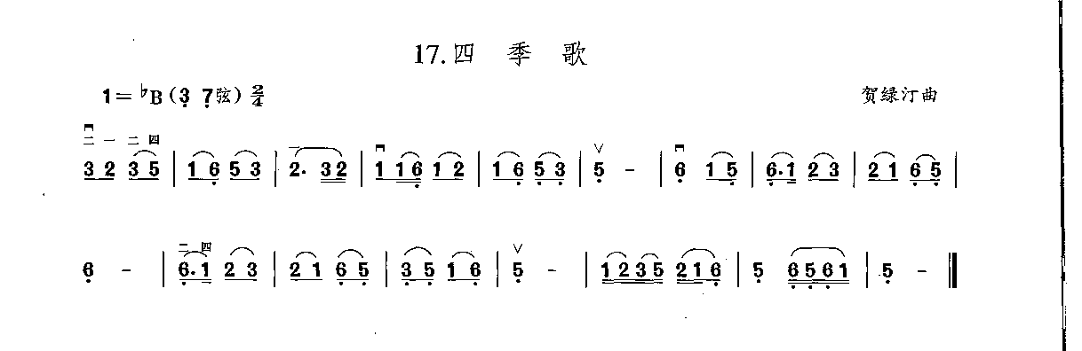 二胡谱:四季歌&贺绿汀曲高清电子版乐谱歌词图片是器乐学习网于2023年09月14日 16:07:33更新分享的二胡曲谱;资源收录于二胡曲谱栏目中;器乐学习网免费分享二胡谱:四季歌&贺绿汀曲简谱与五线谱歌谱图片,欢迎在线免费下载;器乐学习网无需注册会员,直接免费下载各类乐器学习资源及乐谱。