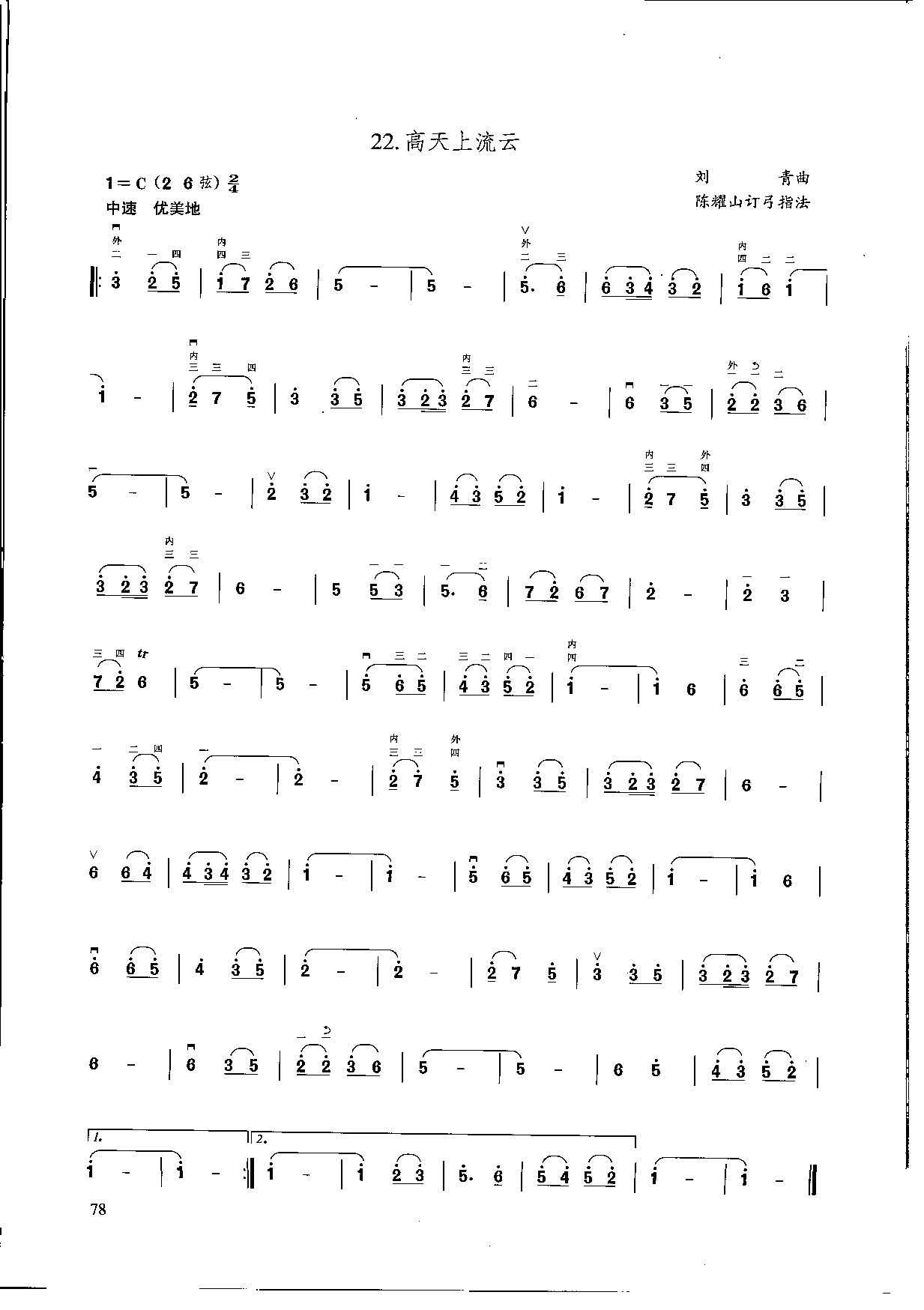 二胡谱:高山上流云&刘青曲 陈耀山订弓指法