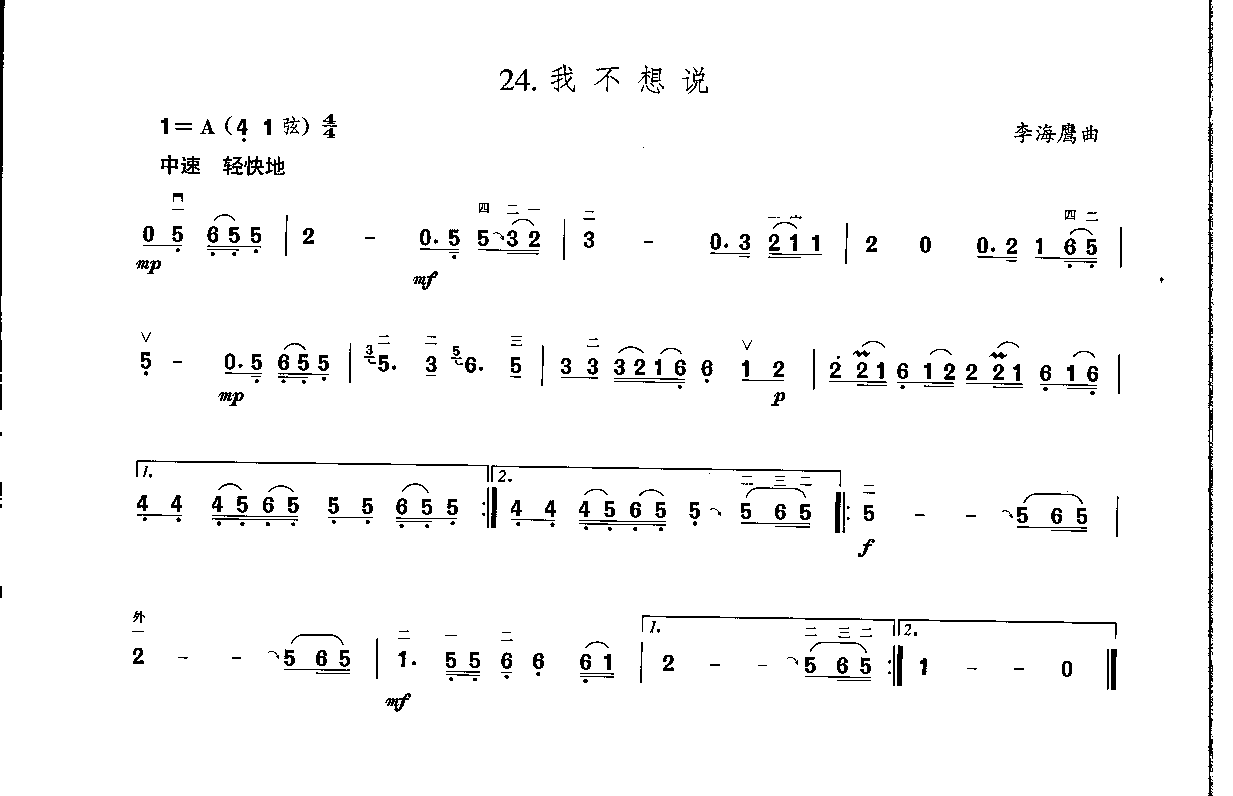 二胡谱:我不想说&李海鹰曲