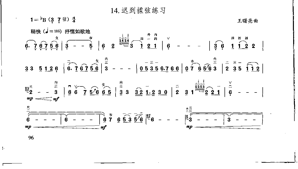二胡技巧练习谱:迟到揉弦练习高清电子版乐谱歌词图片是器乐学习网于2023年09月14日 16:23:53更新分享的二胡曲谱;资源收录于二胡曲谱栏目中;器乐学习网免费分享二胡技巧练习谱:迟到揉弦练习简谱与五线谱歌谱图片,欢迎在线免费下载;器乐学习网无需注册会员,直接免费下载各类乐器学习资源及乐谱。