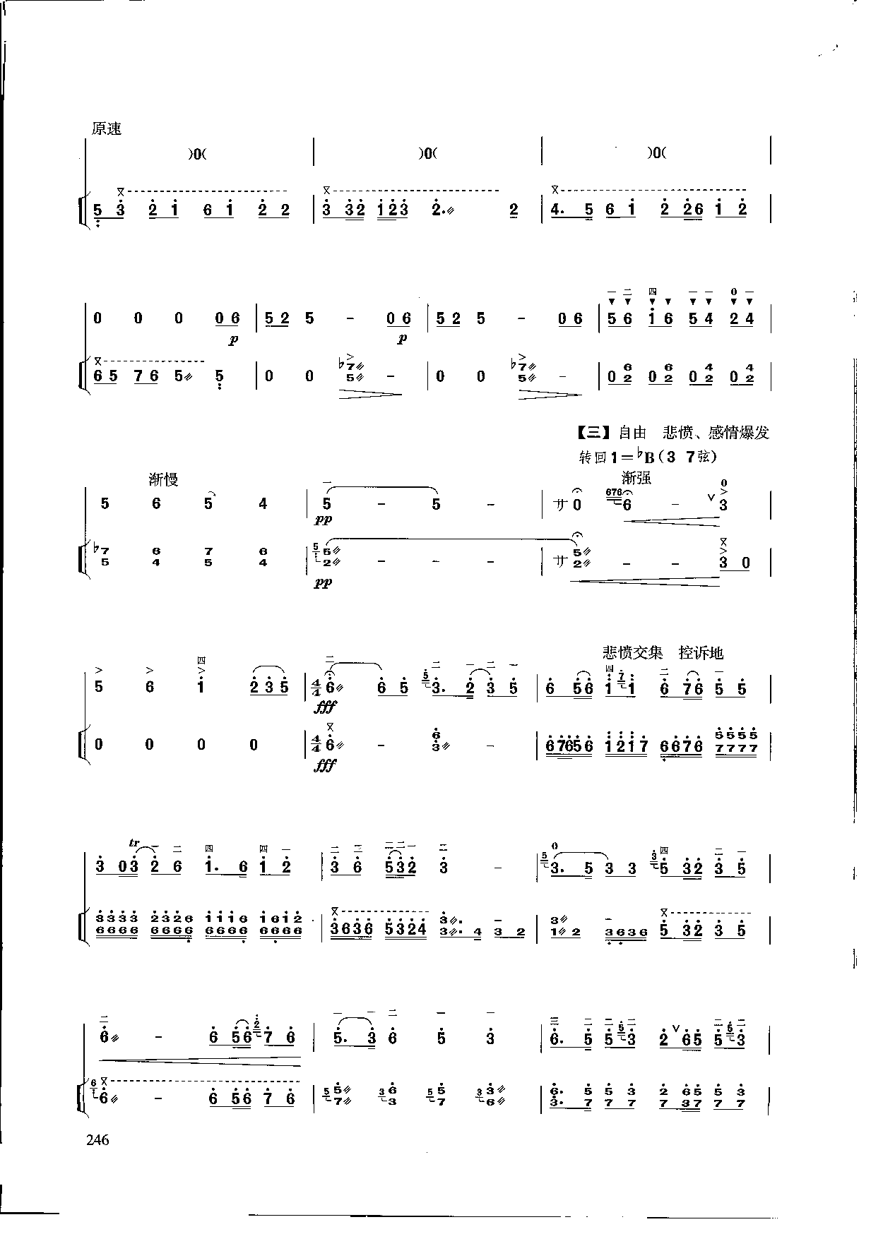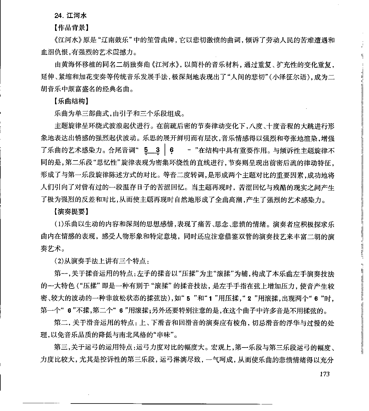 《江河水》原是“辽南鼓乐”中的笙管曲牌,它以悲切激愤的曲调,倾诉了劳动人民的苦难遭遇和血泪仇恨,有强烈的艺术霹撼力。