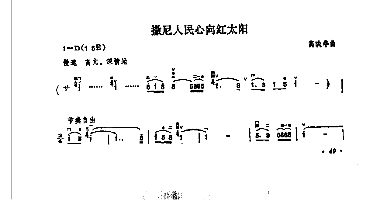 二胡简谱:撒尼人民心向红太阳 高映华曲(革命传统歌曲)