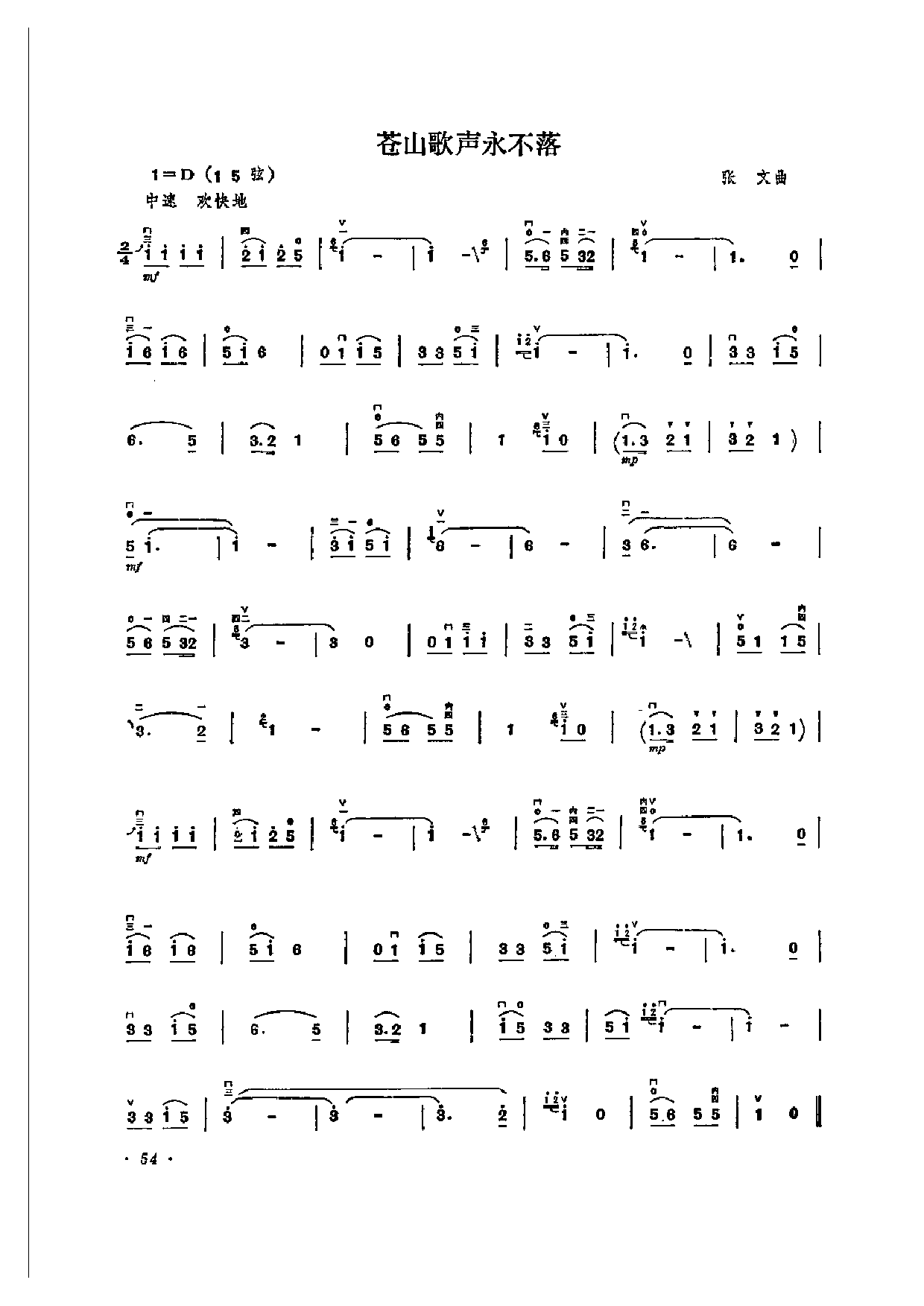 二胡简谱:苍山歌声永不落 张文曲(革命传统歌曲)高清电子版乐谱歌词图片是器乐学习网于2023年10月10日 08:25:56更新分享的二胡曲谱;资源收录于二胡曲谱栏目中;器乐学习网免费分享二胡简谱:苍山歌声永不落 张文曲(革命传统歌曲)简谱与五线谱歌谱图片,欢迎在线免费下载;器乐学习网无需注册会员,直接免费下载各类乐器学习资源及乐谱。