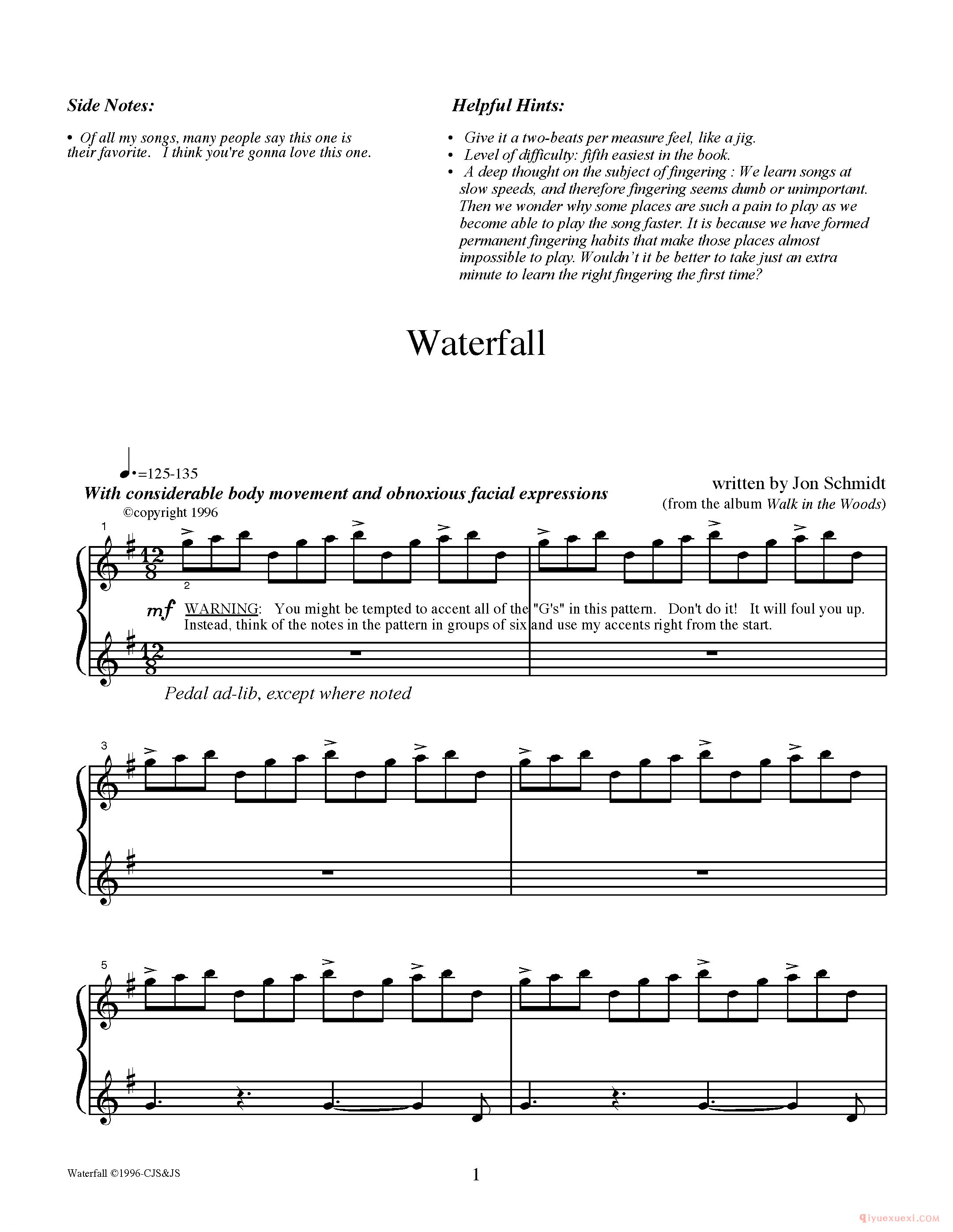钢琴独奏集《Waterfall》Jon Schmidt高清电子版乐谱歌词图片是器乐学习网于2021年10月11日 09:49:36更新分享的钢琴曲谱;资源收录于钢琴曲谱栏目中;器乐学习网免费分享钢琴独奏集《Waterfall》Jon Schmidt简谱与五线谱歌谱图片,欢迎在线免费下载;器乐学习网无需注册会员,直接免费下载各类乐器学习资源及乐谱。