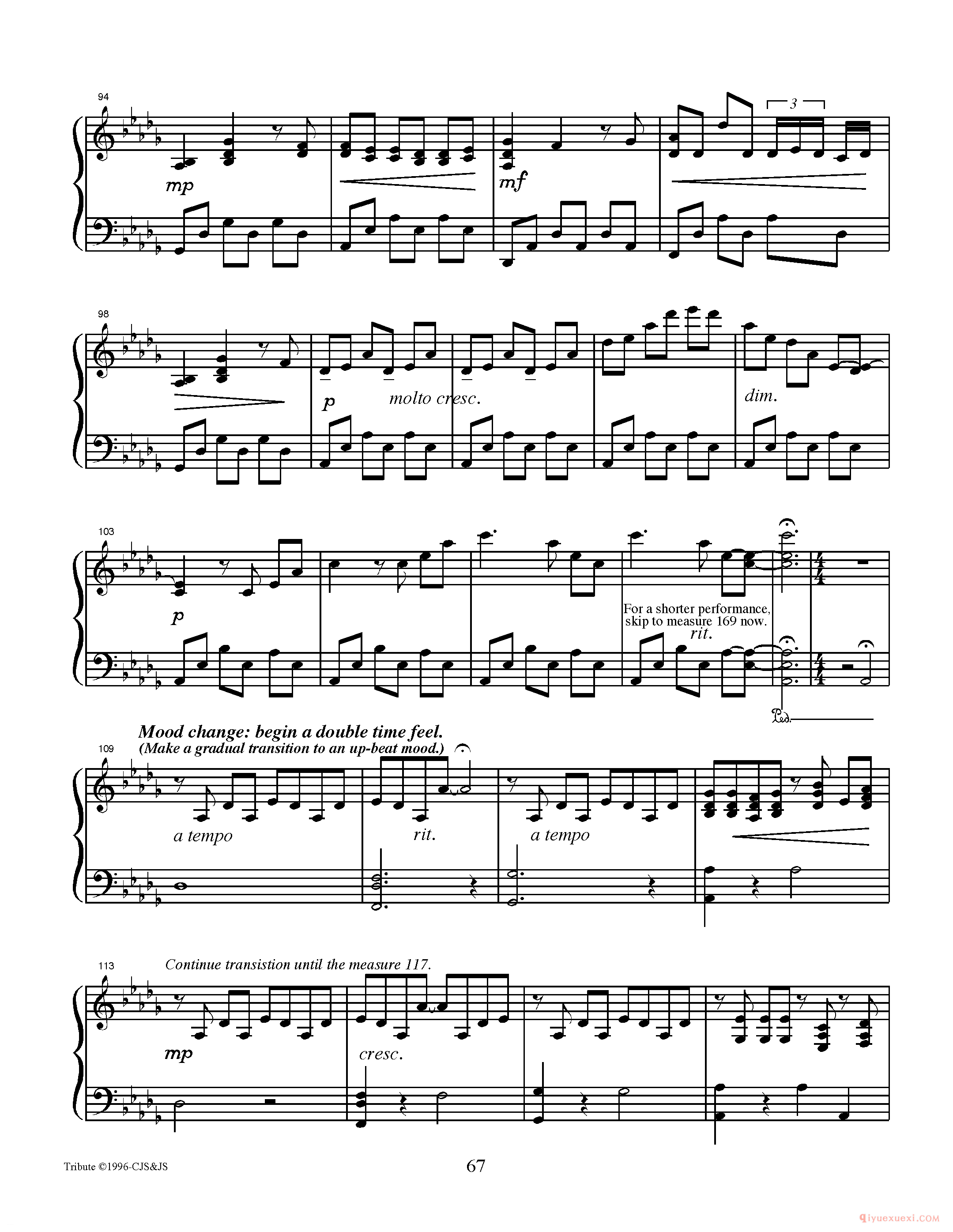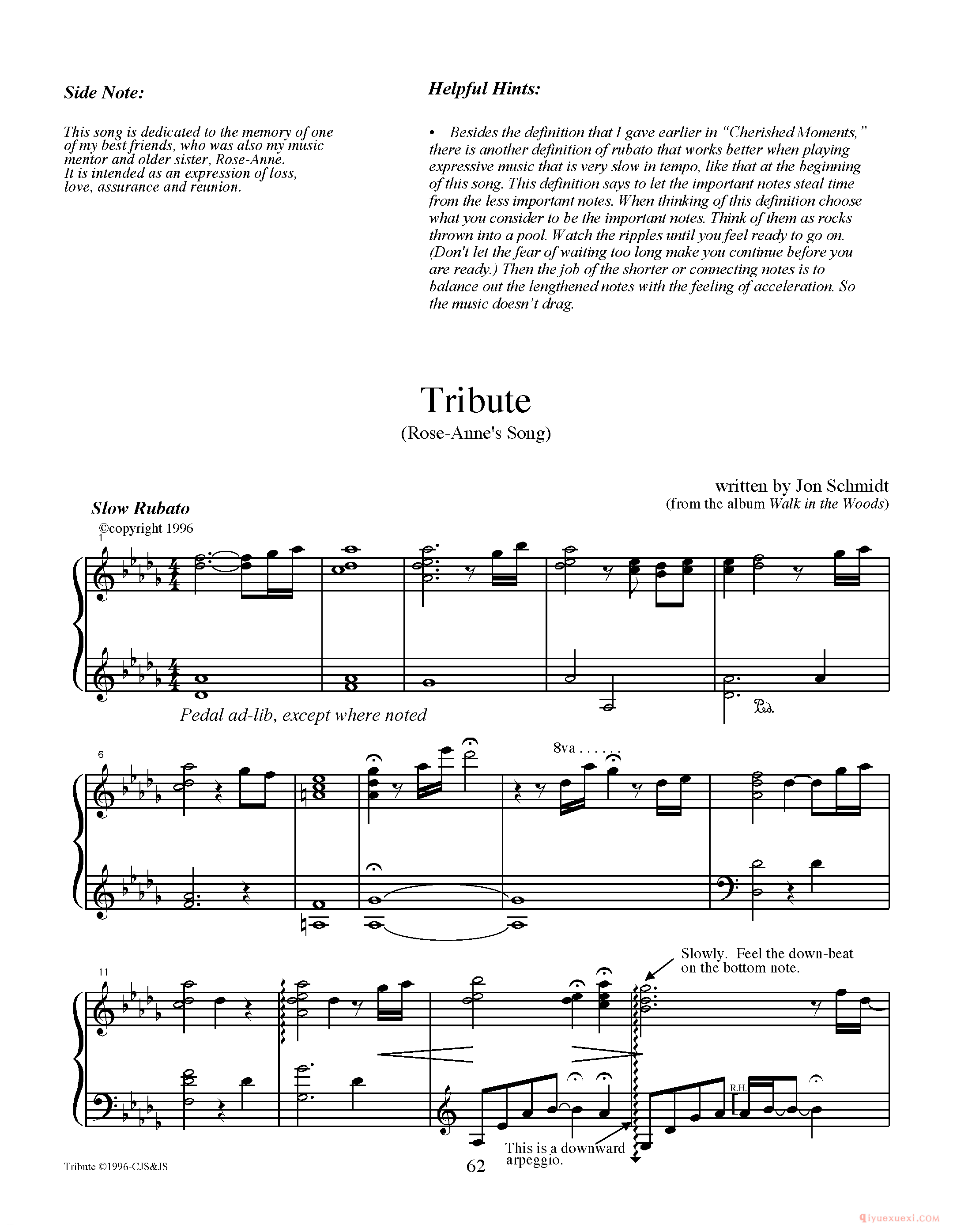 钢琴独奏曲谱《Tribute (Original Key)》Jon Schmidt高清电子版乐谱歌词图片是器乐学习网于2021年10月11日 09:58:06更新分享的钢琴曲谱;资源收录于钢琴曲谱栏目中;器乐学习网免费分享钢琴独奏曲谱《Tribute (Original Key)》Jon Schmidt简谱与五线谱歌谱图片,欢迎在线免费下载;器乐学习网无需注册会员,直接免费下载各类乐器学习资源及乐谱。