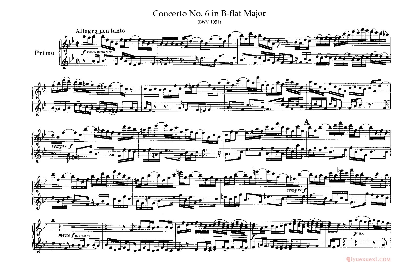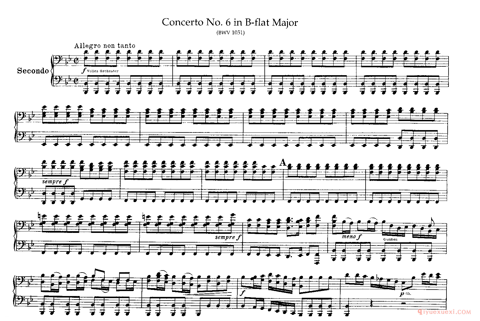 巴赫勃兰登堡协奏曲第六首降B大调《Concerto NO.6 in B-flat Major BWV1051》钢琴四手联弹高清电子版乐谱歌词图片是器乐学习网于2021年10月12日 10:42:30更新分享的钢琴曲谱;资源收录于钢琴曲谱栏目中;器乐学习网免费分享巴赫勃兰登堡协奏曲第六首降B大调《Concerto NO.6 in B-flat Major BWV1051》钢琴四手联弹简谱与五线谱歌谱图片,欢迎在线免费下载;器乐学习网无需注册会员,直接免费下载各类乐器学习资源及乐谱。