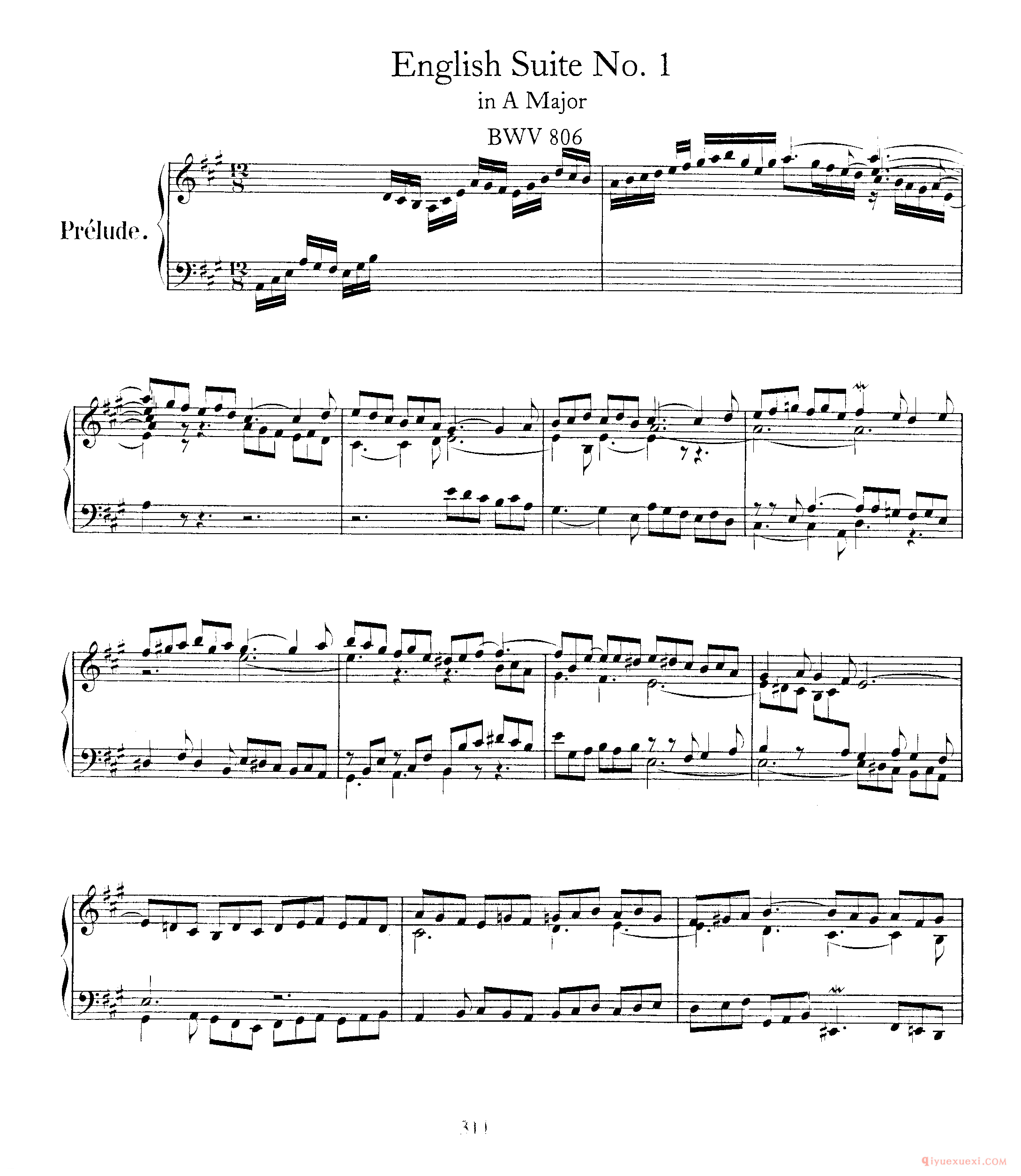 巴赫英国组曲第一首A大调《English Suite No.1 in A Major BWV806》高清电子版乐谱歌词图片是器乐学习网于2021年10月12日 11:07:08更新分享的钢琴曲谱;资源收录于钢琴曲谱栏目中;器乐学习网免费分享巴赫英国组曲第一首A大调《English Suite No.1 in A Major BWV806》简谱与五线谱歌谱图片,欢迎在线免费下载;器乐学习网无需注册会员,直接免费下载各类乐器学习资源及乐谱。