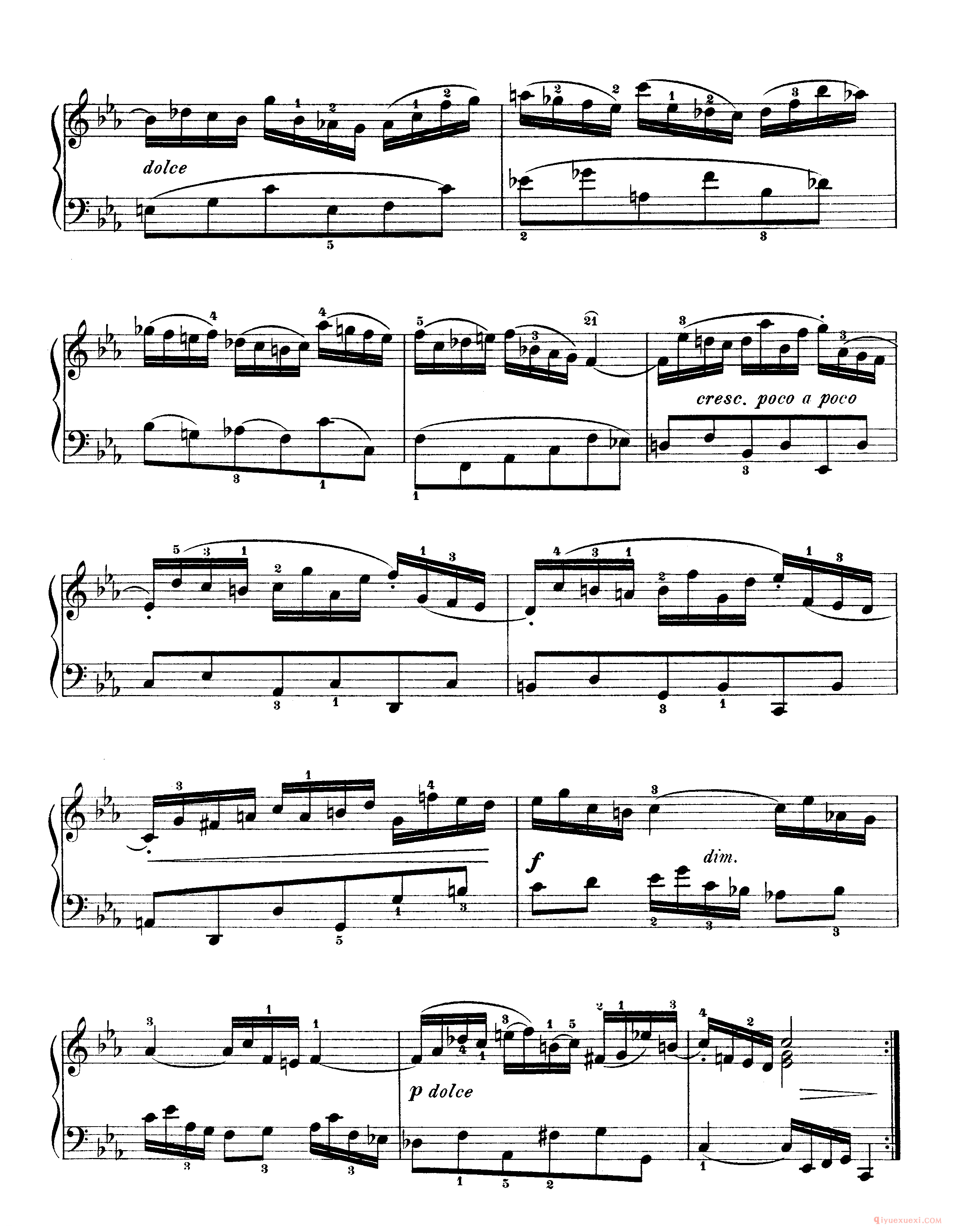 技巧: 1.这首作品和前面第八条的训练内容是一样的,都是音阶型的跑动练习,所不同的是这条练习曲以左手训练为主,左手需要注意的技巧要点和右手一样,仍然是换指动作的准确性。(具...