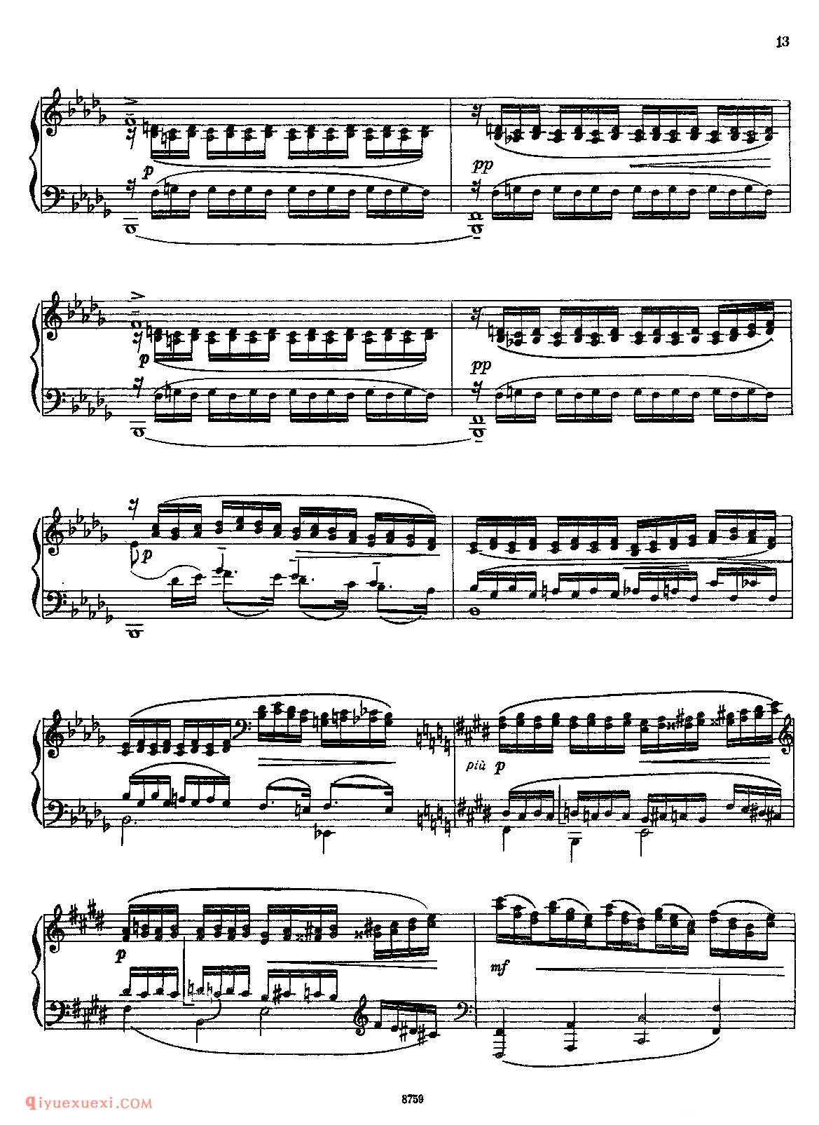 技巧: 1.这首作品和前面第八条的训练内容是一样的,都是音阶型的跑动练习,所不同的是这条练习曲以左手训练为主,左手需要注意的技巧要点和右手一样,仍然是换指动作的准确性。(具...