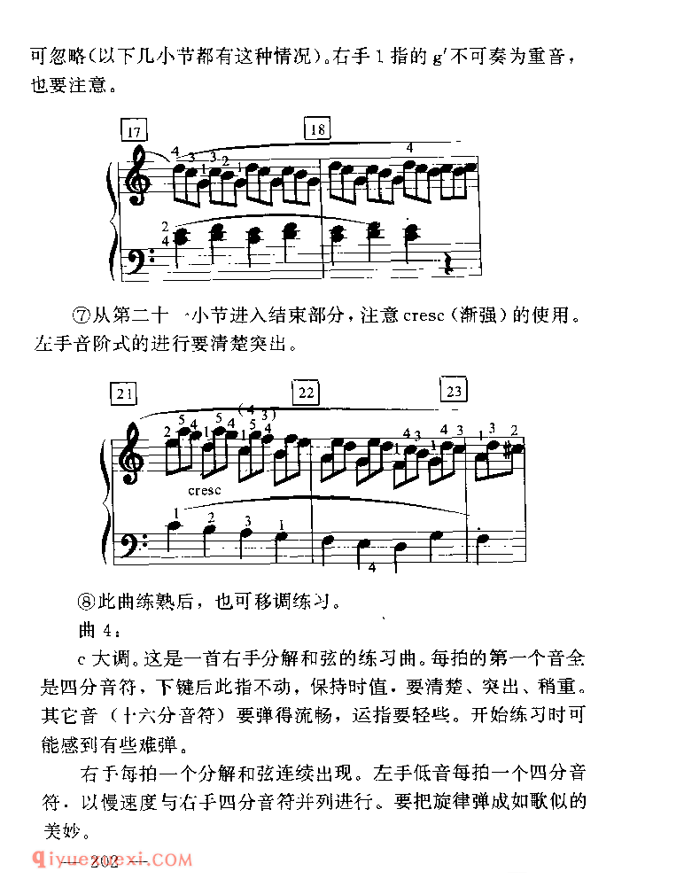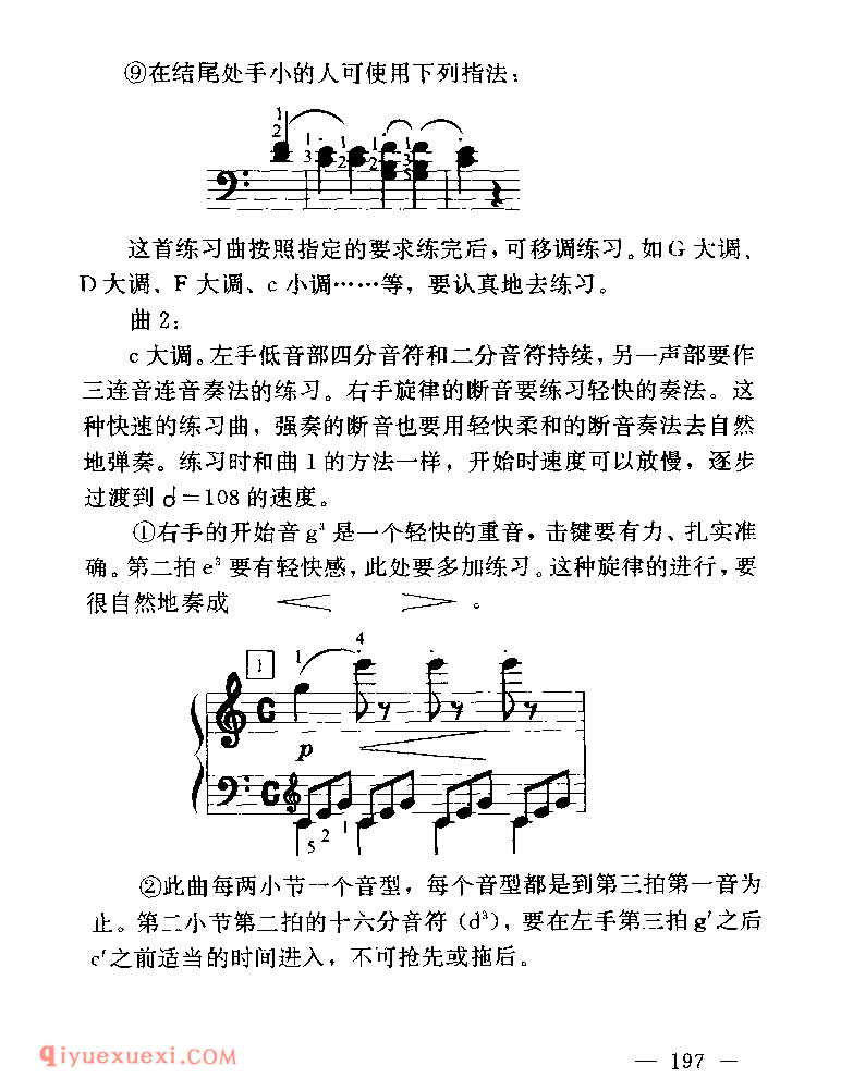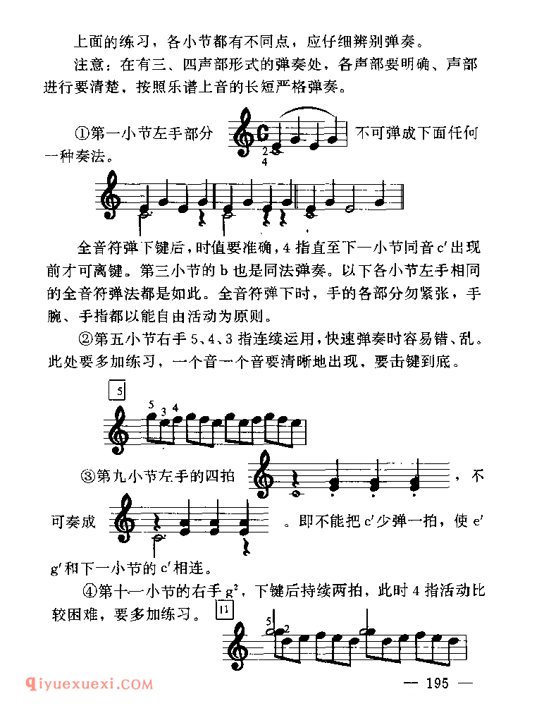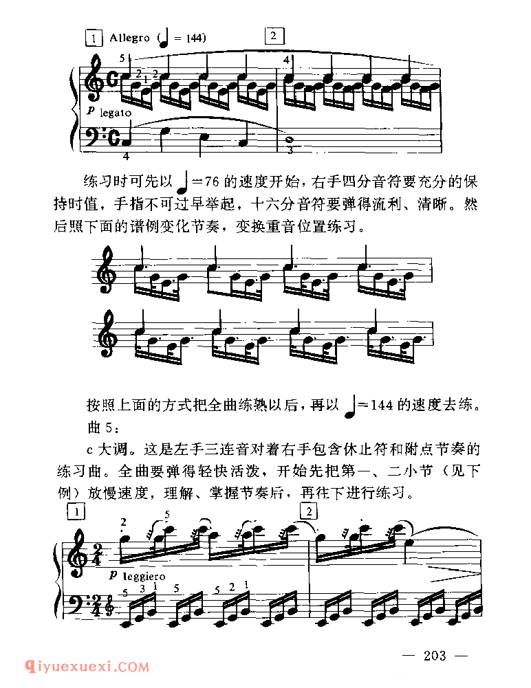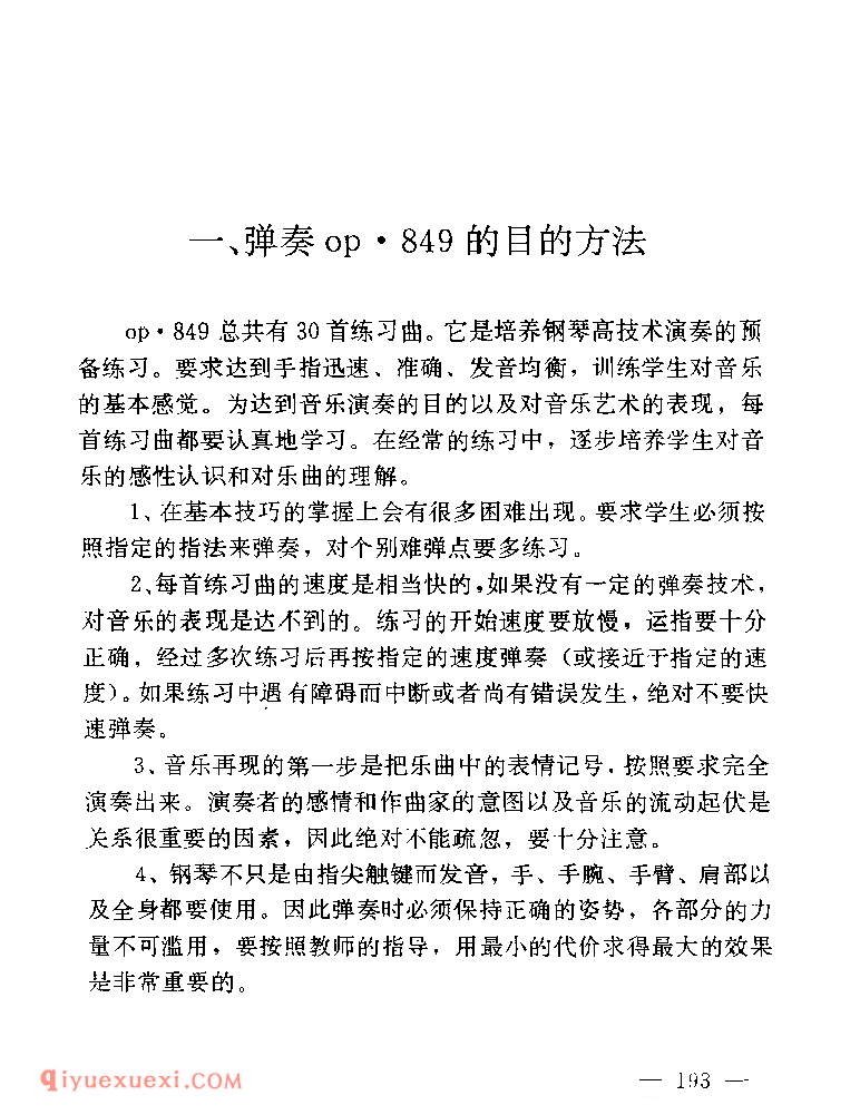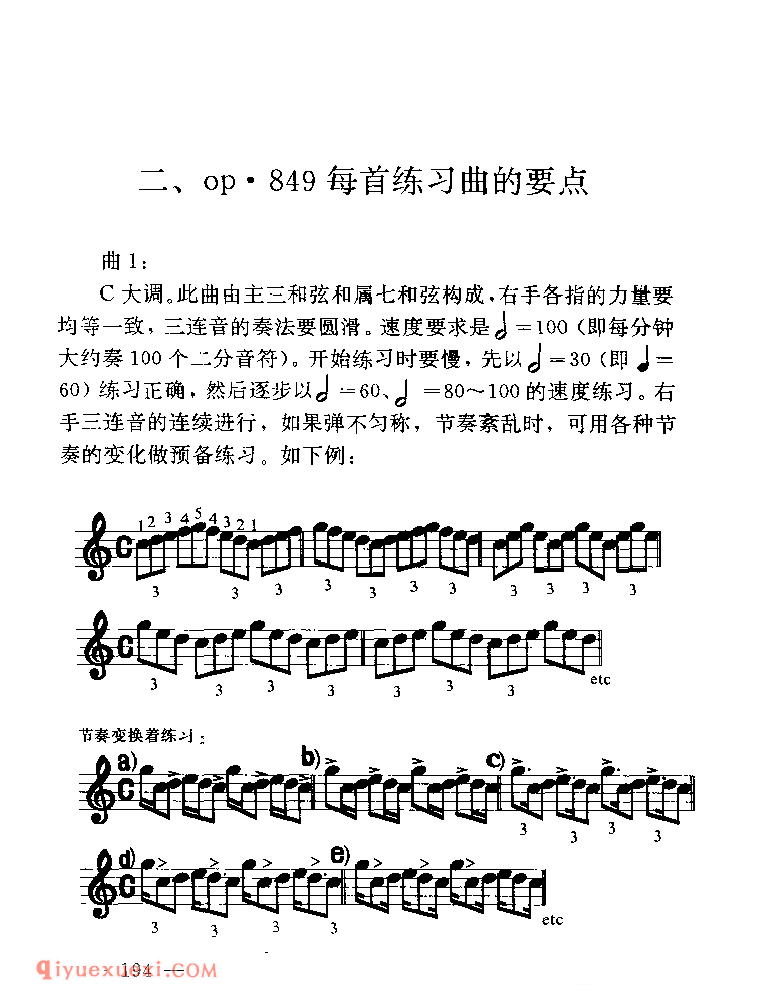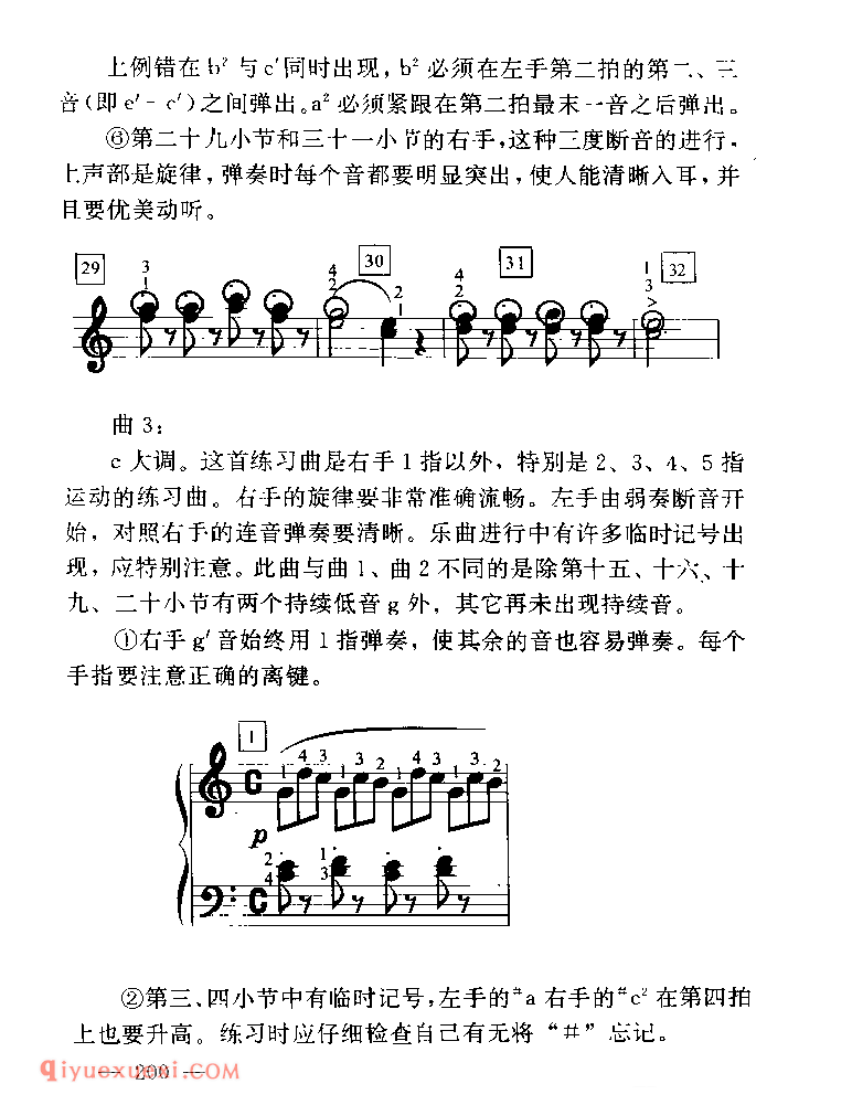 2,每首练习曲的速度是相当快的,如果没有一定的弹奏技术,对音乐的表现是达不到的。练习的开始速度要放慢,运指要十分正确,经过多次练习后再按指定的速度弹奏(或接近于指定的速度)。如果练习中遇有障碍而中断或者尚有错误发生,绝对不要快速弹奏。