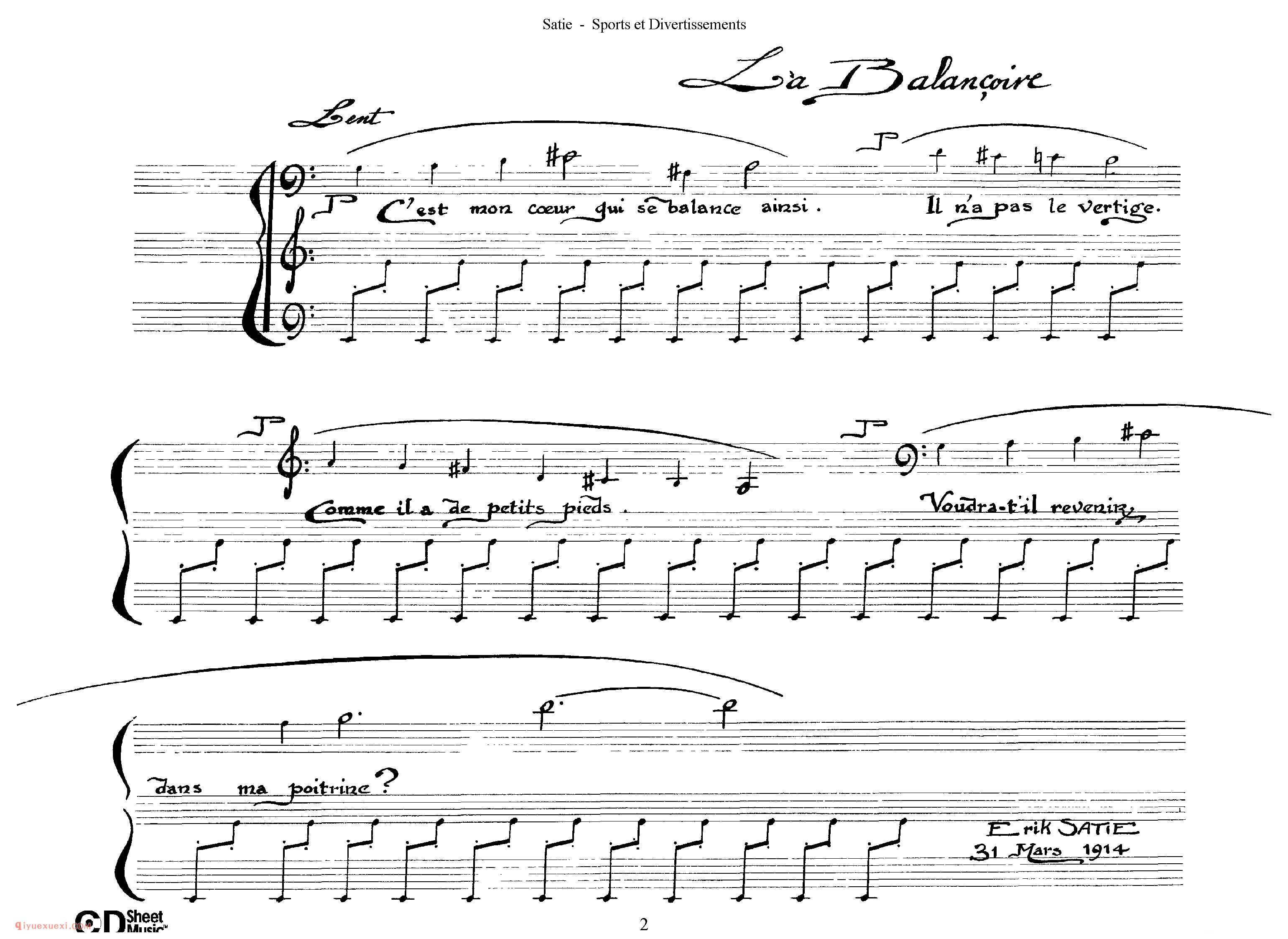 Sports et Divertissements_萨蒂钢琴谱高清电子版乐谱歌词图片是器乐学习网于2021年11月14日 11:50:47更新分享的钢琴曲谱;资源收录于钢琴曲谱栏目中;器乐学习网免费分享Sports et Divertissements_萨蒂钢琴谱简谱与五线谱歌谱图片,欢迎在线免费下载;器乐学习网无需注册会员,直接免费下载各类乐器学习资源及乐谱。