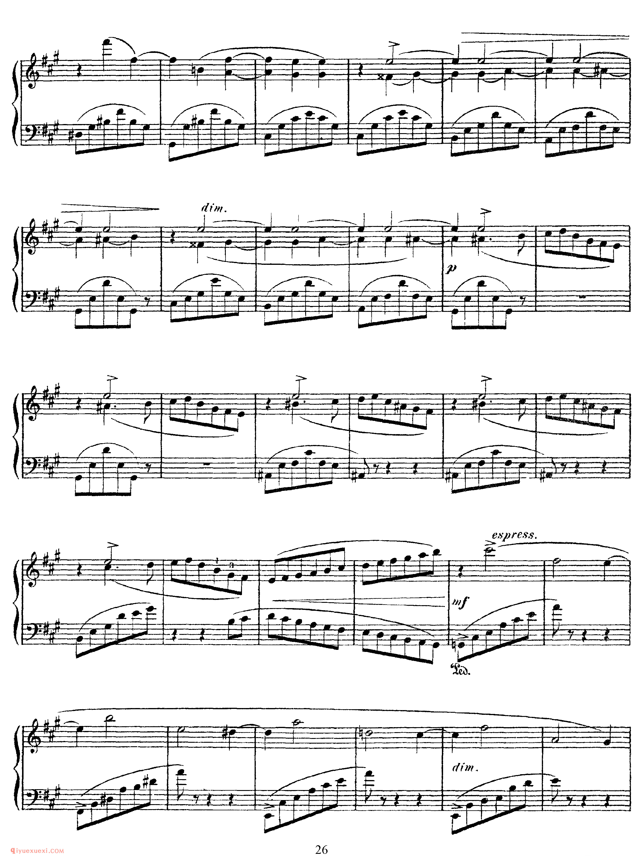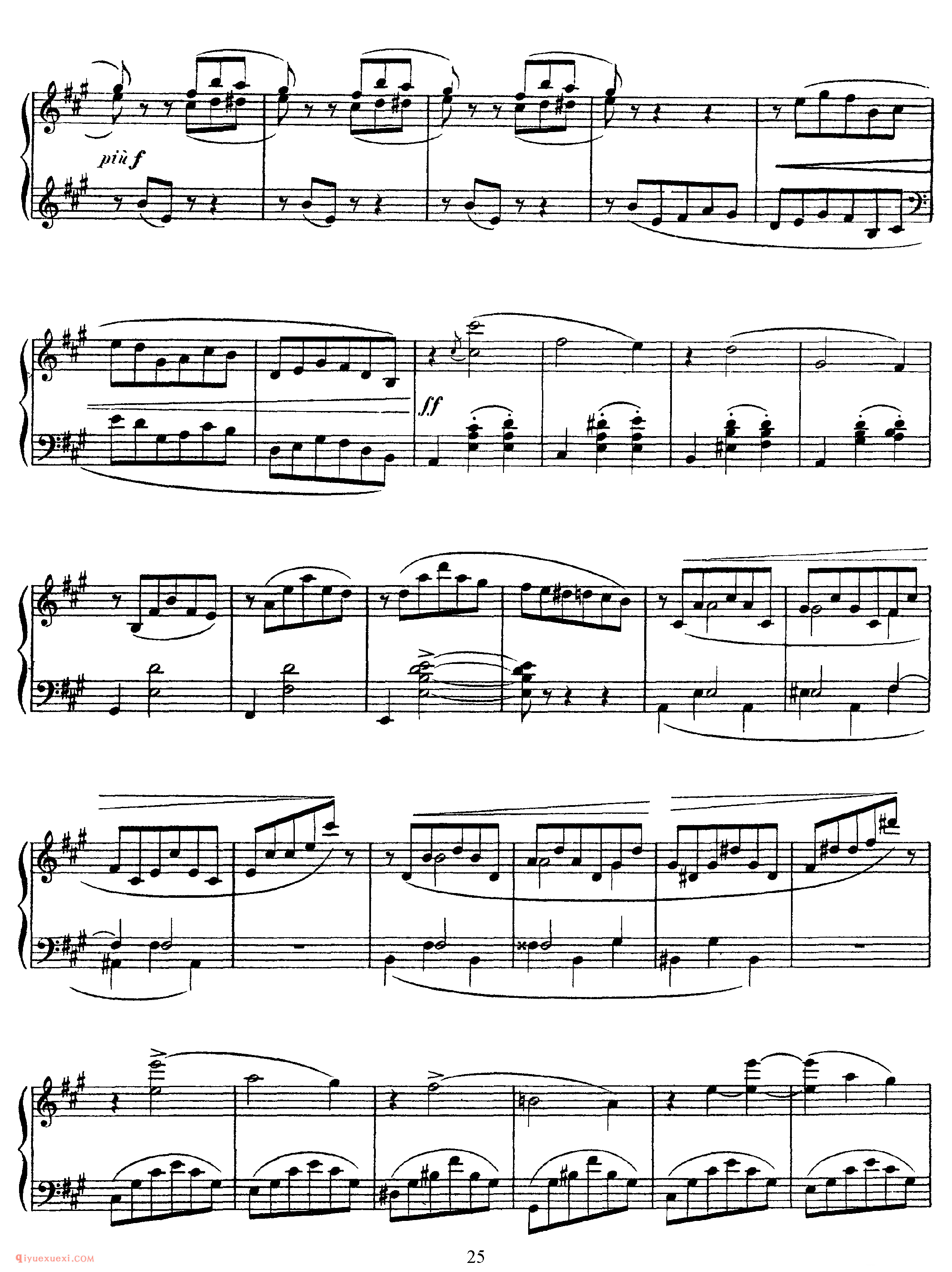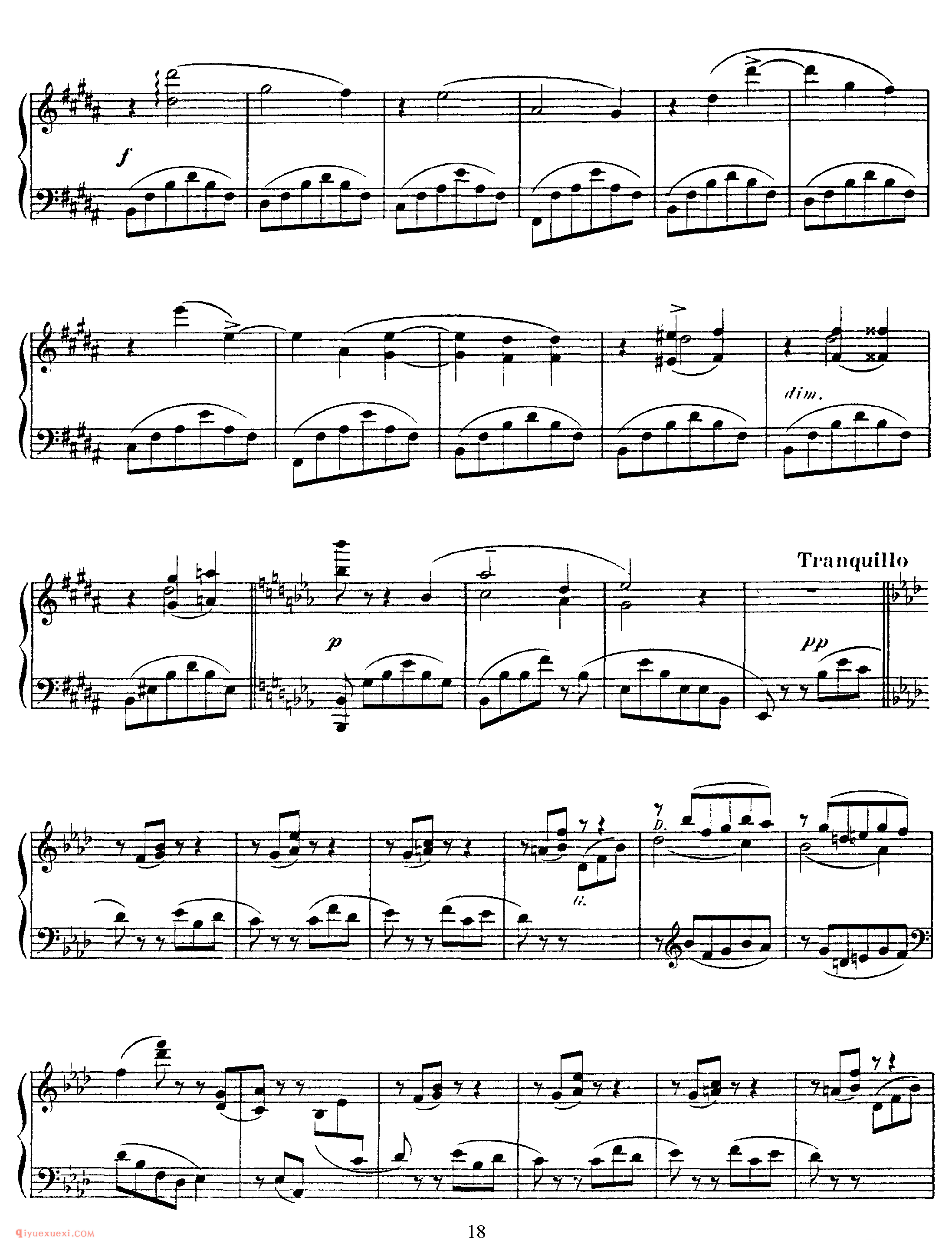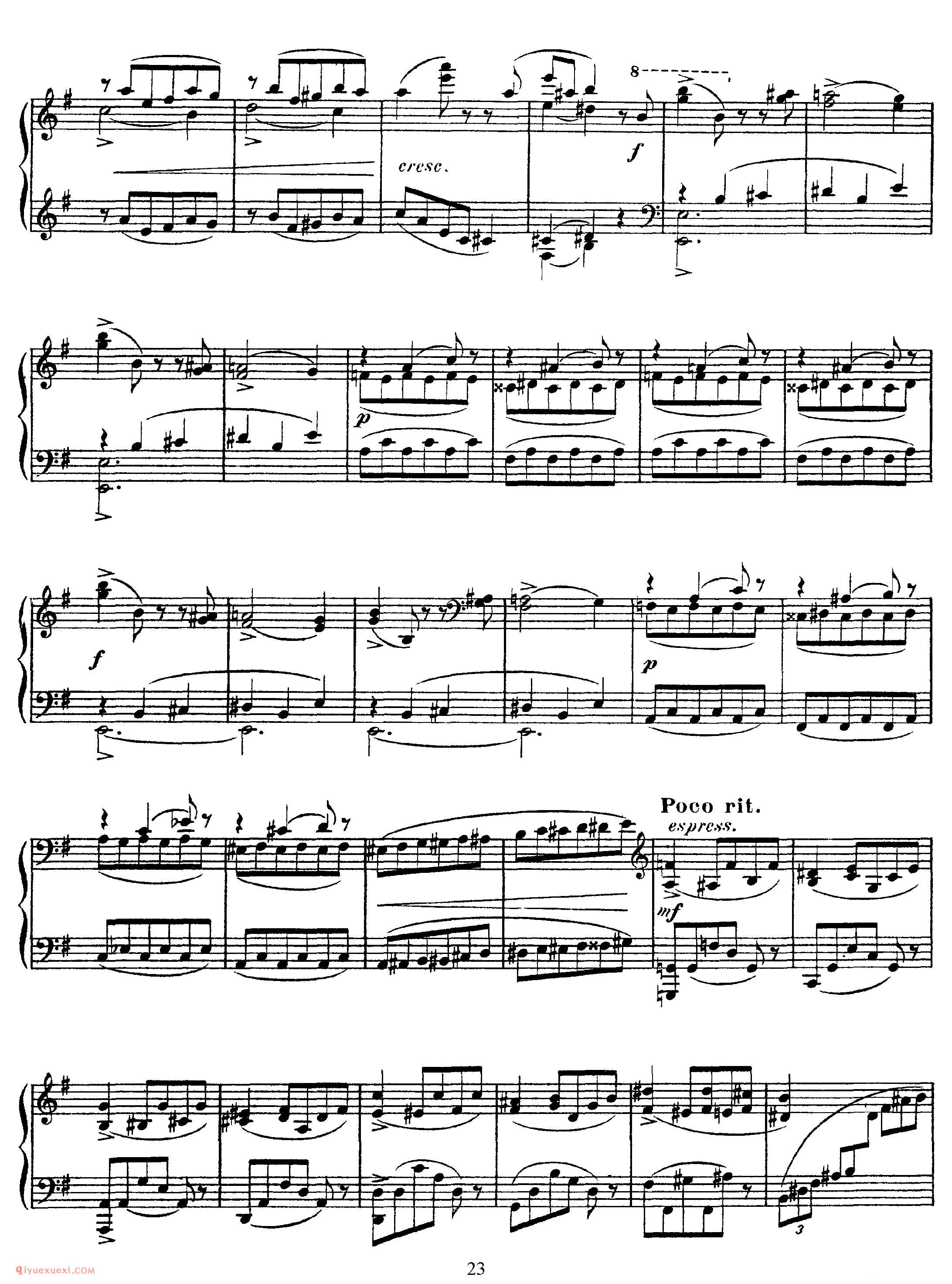 这首乐曲的左手弹奏时,小指既要站稳、保持,大指和三指又可略带轻微地带动手掌的翻动动作, 值得注意的是,19世纪的装饰音往往是在强拍之前弹奏的。因此第11小节的装饰音可从前一小节...