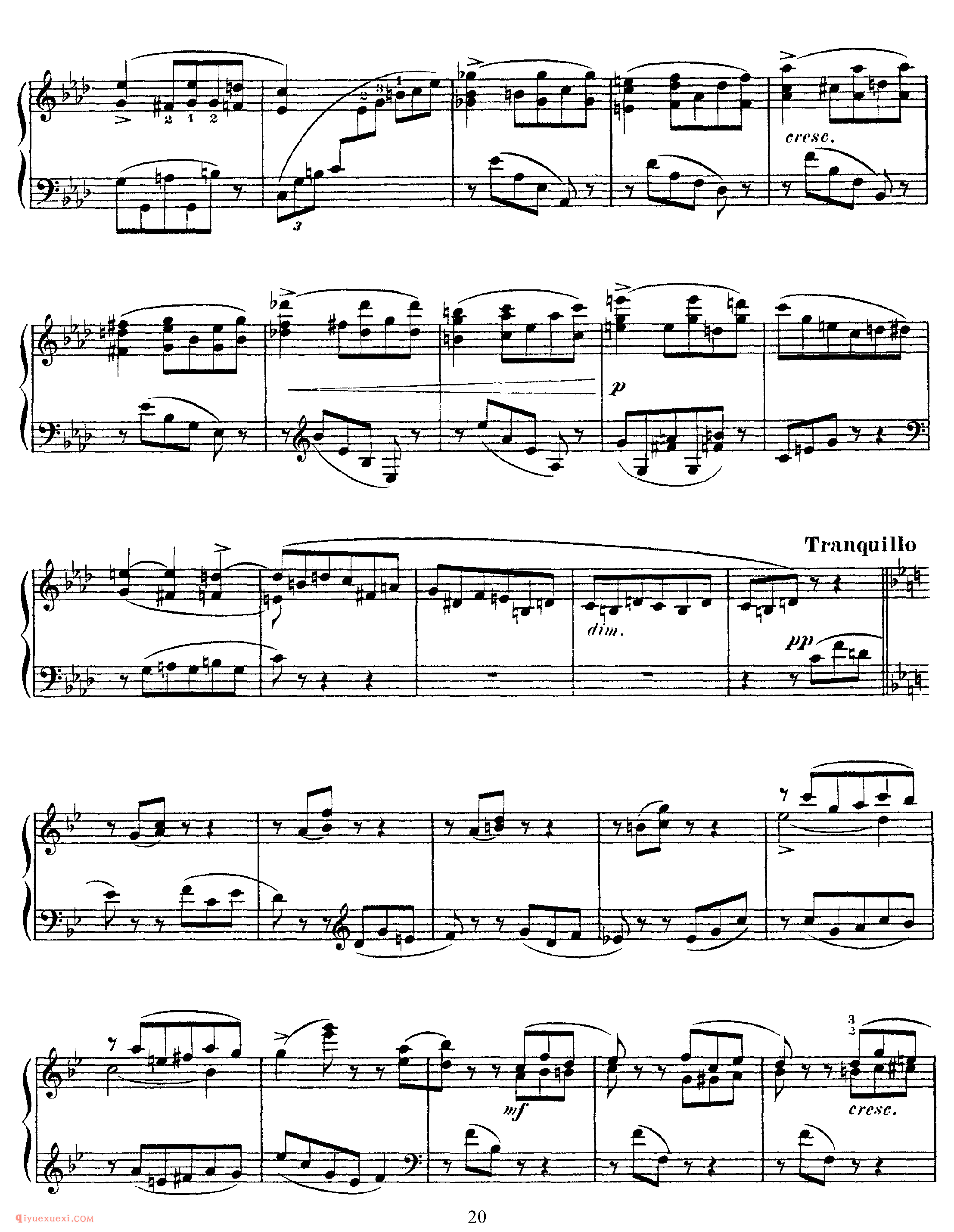 升g小调,无编号,作于1822年,呈献给索菲杜邦夫人。这是肖邦开始显示自己创作个性的作品,主要是采用轻快的音形法。 波罗乃兹(波兰舞曲)起源于16世纪波兰民间歌舞。中庸速度。三拍子...