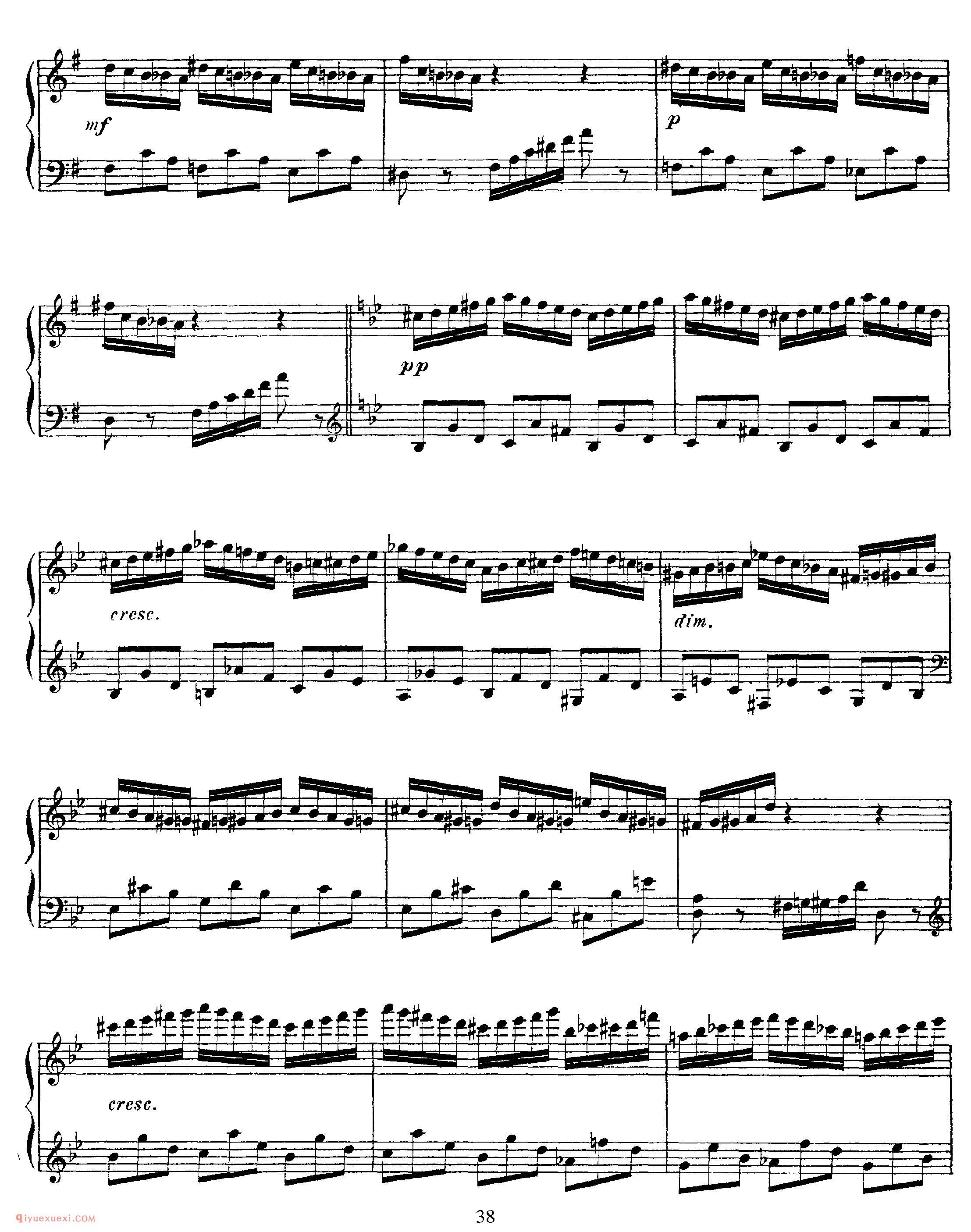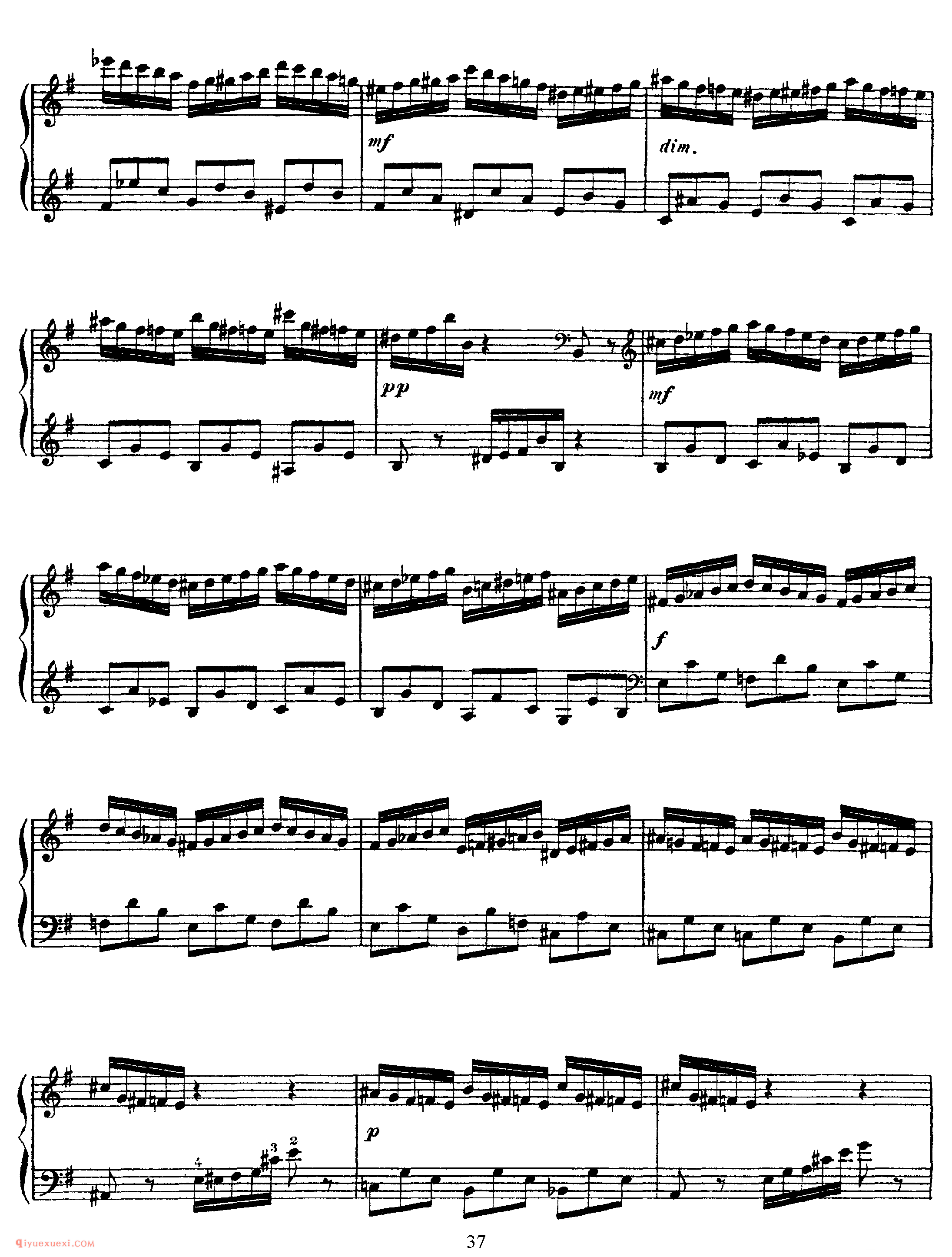 技巧: 1.这首作品和前面第八条的训练内容是一样的,都是音阶型的跑动练习,所不同的是这条练习曲以左手训练为主,左手需要注意的技巧要点和右手一样,仍然是换指动作的准确性。(具...