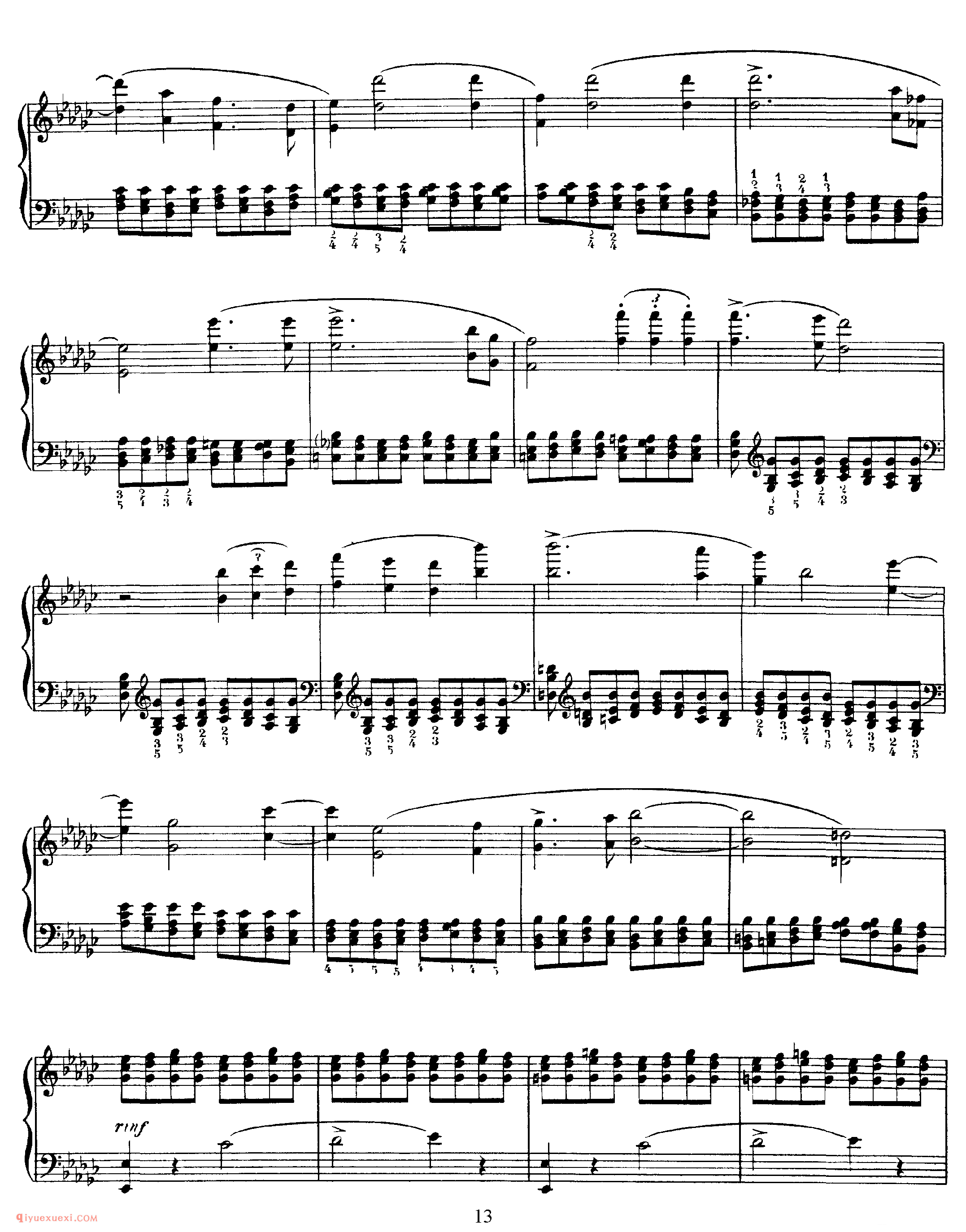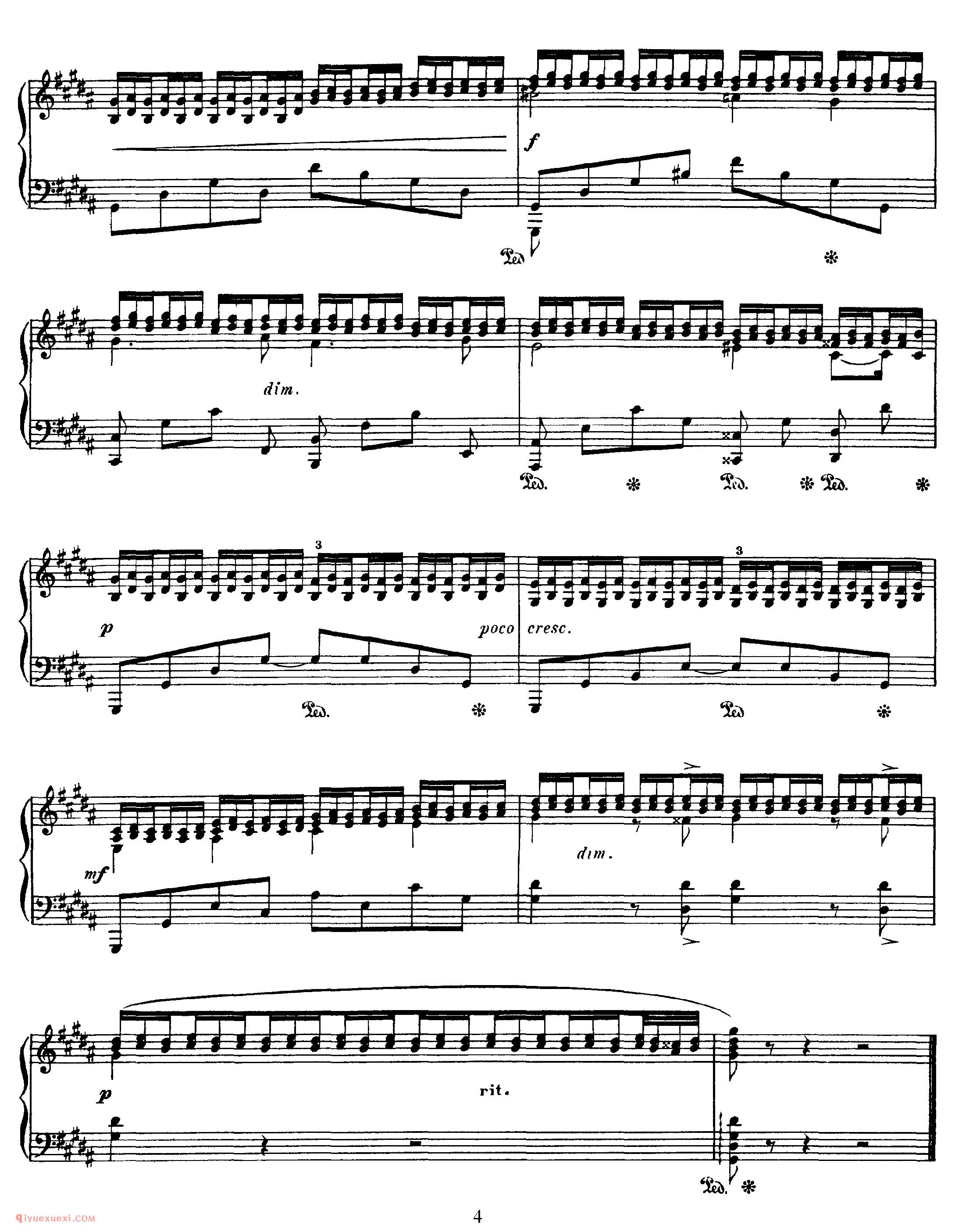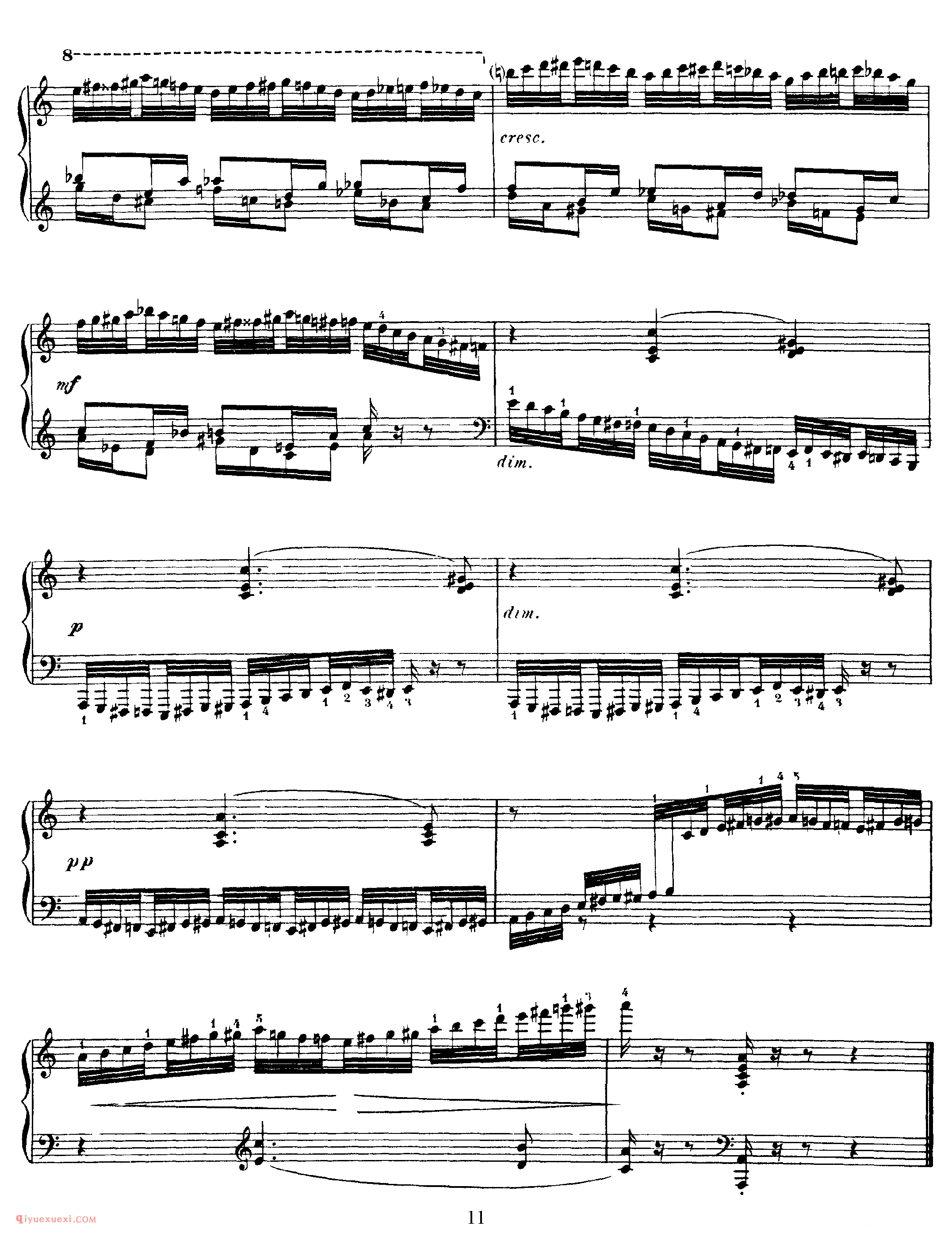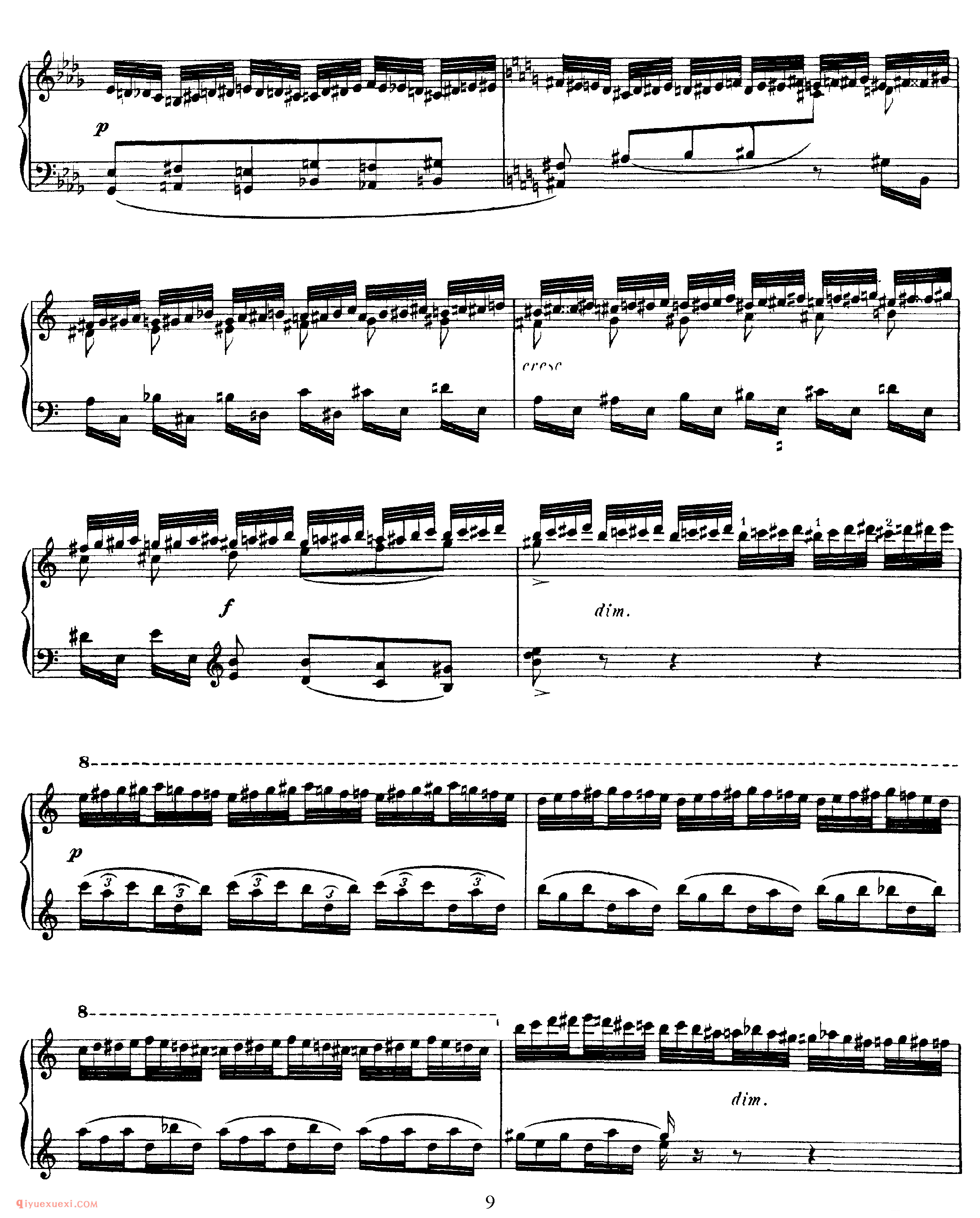 3. 前奏曲与赋格 Prelude et Fugue ,降e小调,前奏曲为2/2拍,激动的中板,是八度与和弦的练习曲;赋格为4/4拍,有表情的中板,声部练习曲。