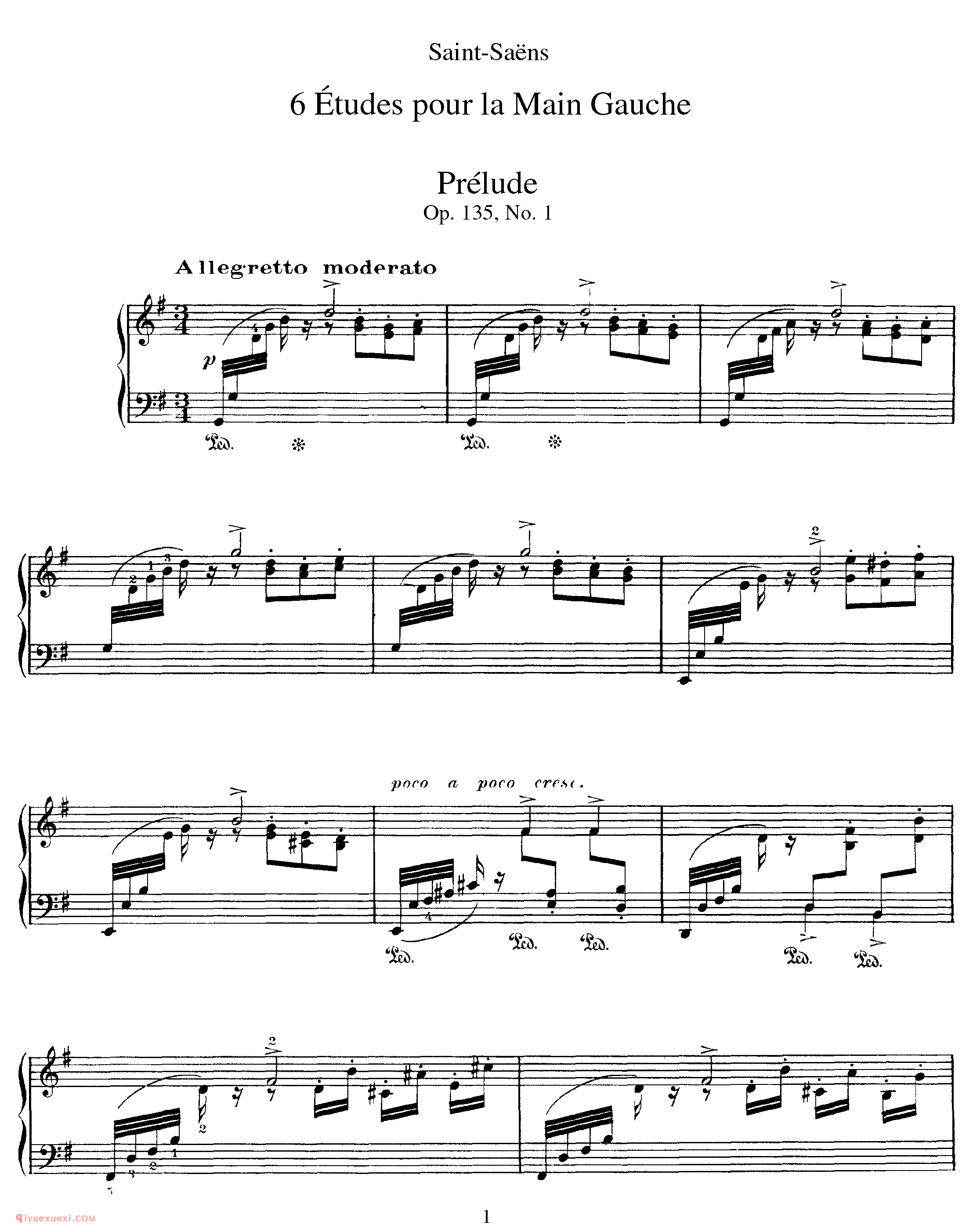 《六首左手练习曲》6 Etudes for the Left Hand Op 135_练习曲_圣桑钢琴谱高清电子版乐谱歌词图片是器乐学习网于2021年11月15日 10:44:28更新分享的钢琴曲谱;资源收录于钢琴曲谱栏目中;器乐学习网免费分享《六首左手练习曲》6 Etudes for the Left Hand Op 135_练习曲_圣桑钢琴谱简谱与五线谱歌谱图片,欢迎在线免费下载;器乐学习网无需注册会员,直接免费下载各类乐器学习资源及乐谱。