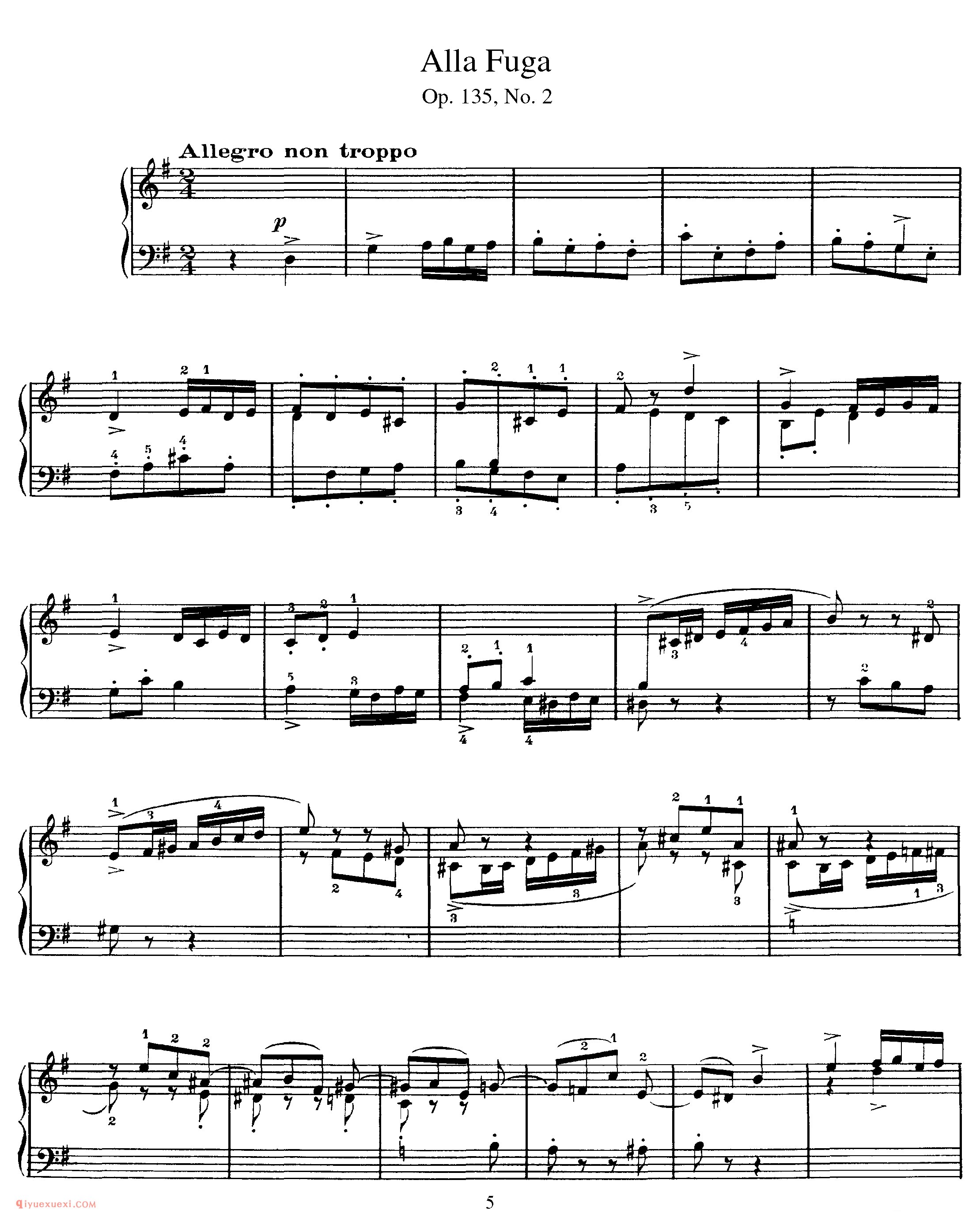 2. 赋格 Alla fuga ,G大调,2/4拍,不过分的快板。