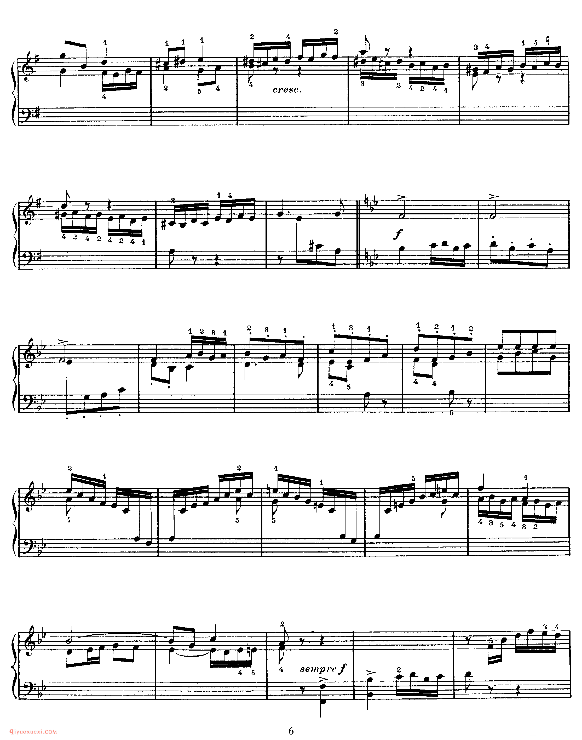 6. 基格舞曲 Gigue ,G大调,3/8拍,急板。