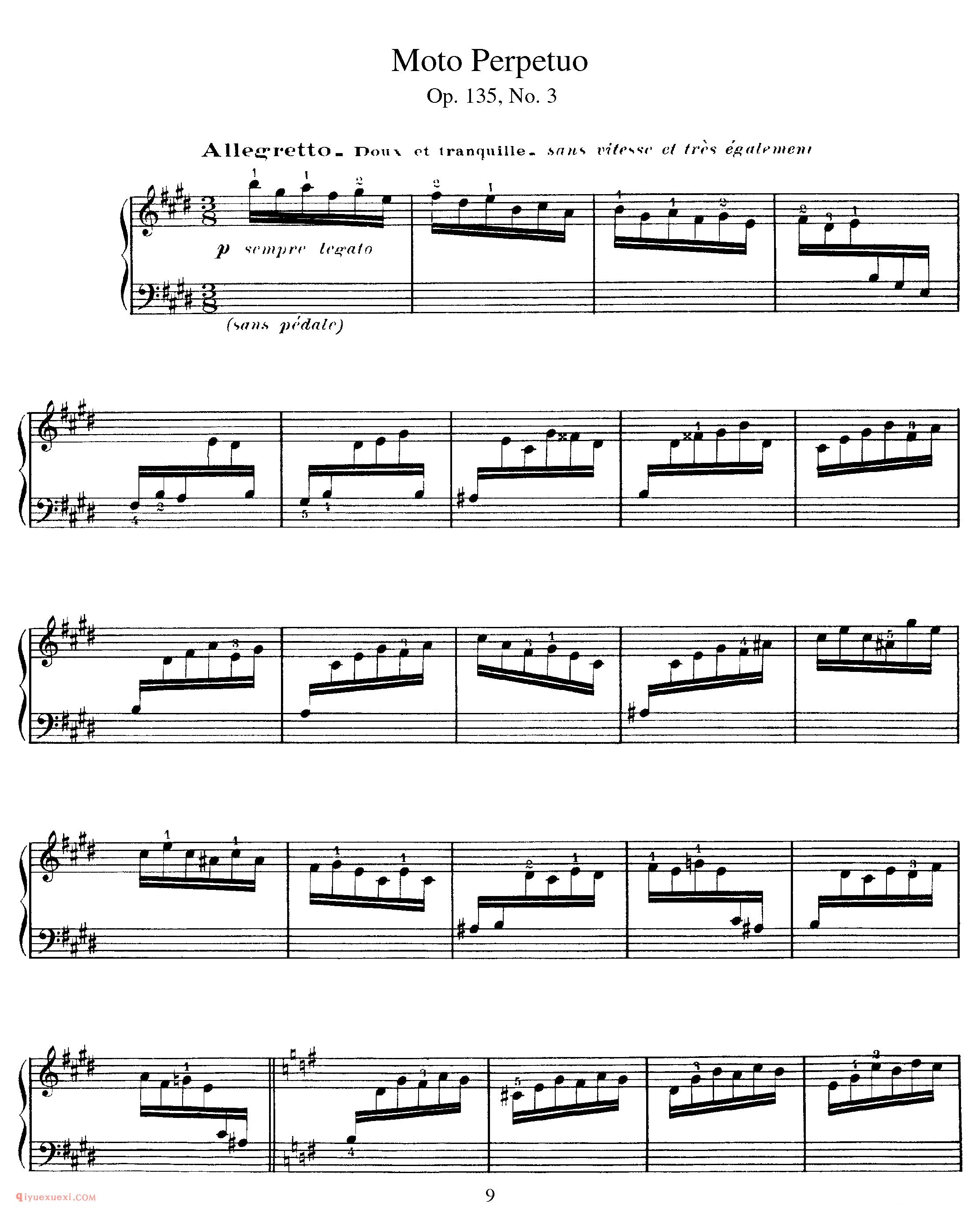 3. 无穷动 Moto perpetuo ,E大调,3/8拍,平静流畅的小快板。