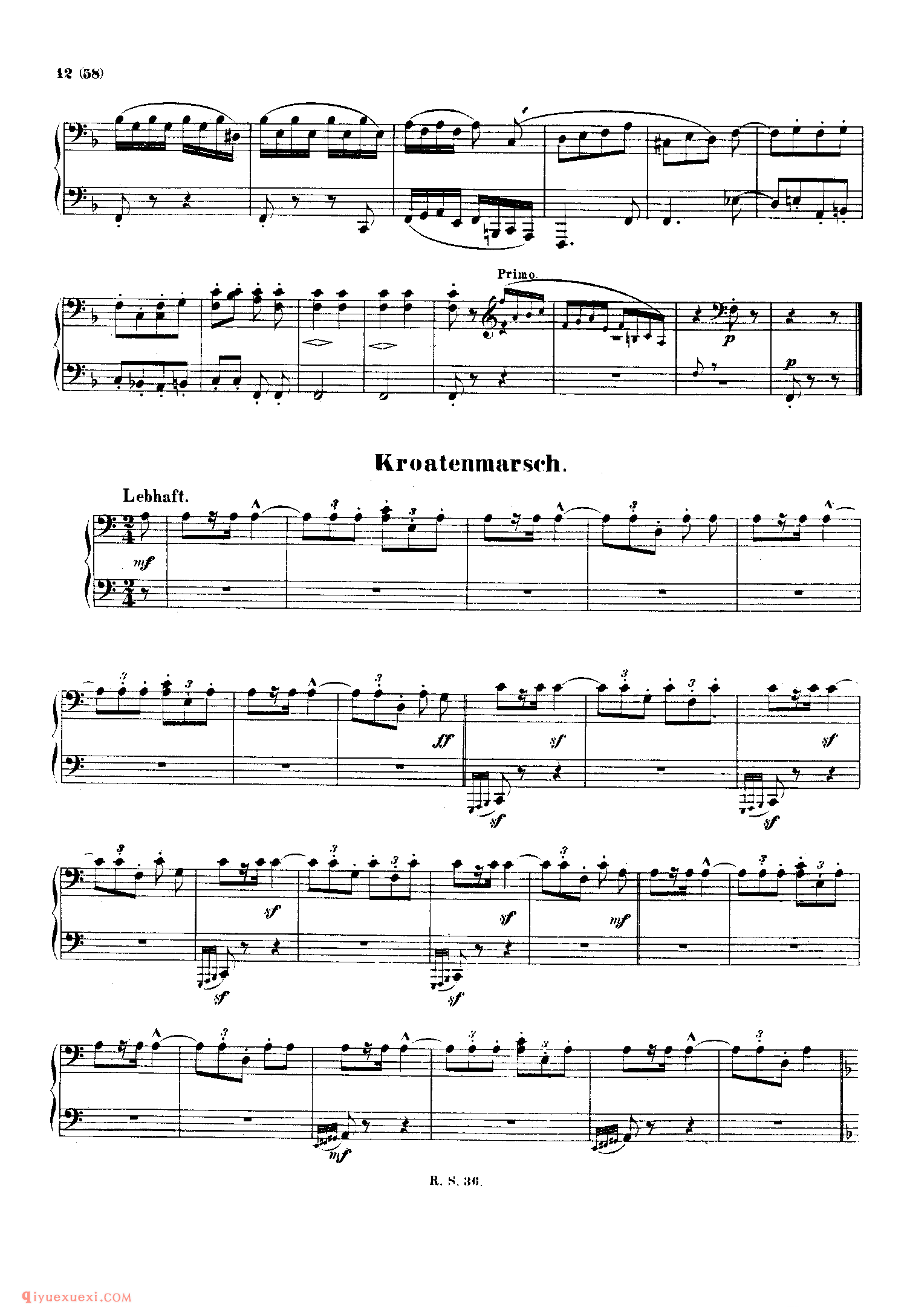 5. 克罗地亚进行曲 Kroatenmarsch ,a小调,2/4拍,活泼的。