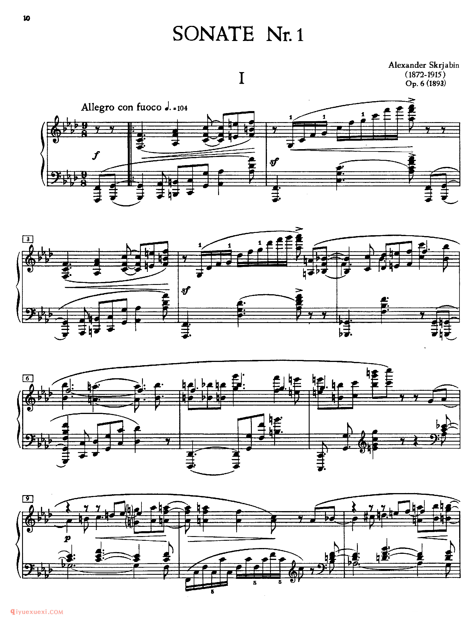 斯克里亚宾《f小调第一钢琴奏鸣曲》作品6_斯克里亚宾钢琴谱高清电子版乐谱歌词图片是器乐学习网于2021年11月17日 10:15:44更新分享的钢琴曲谱;资源收录于钢琴曲谱栏目中;器乐学习网免费分享斯克里亚宾《f小调第一钢琴奏鸣曲》作品6_斯克里亚宾钢琴谱简谱与五线谱歌谱图片,欢迎在线免费下载;器乐学习网无需注册会员,直接免费下载各类乐器学习资源及乐谱。