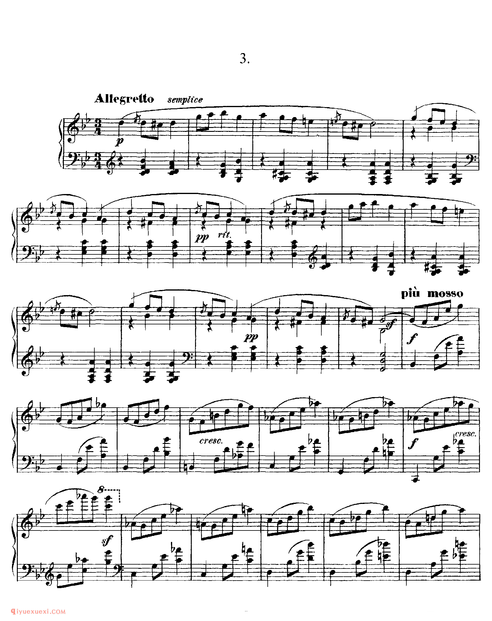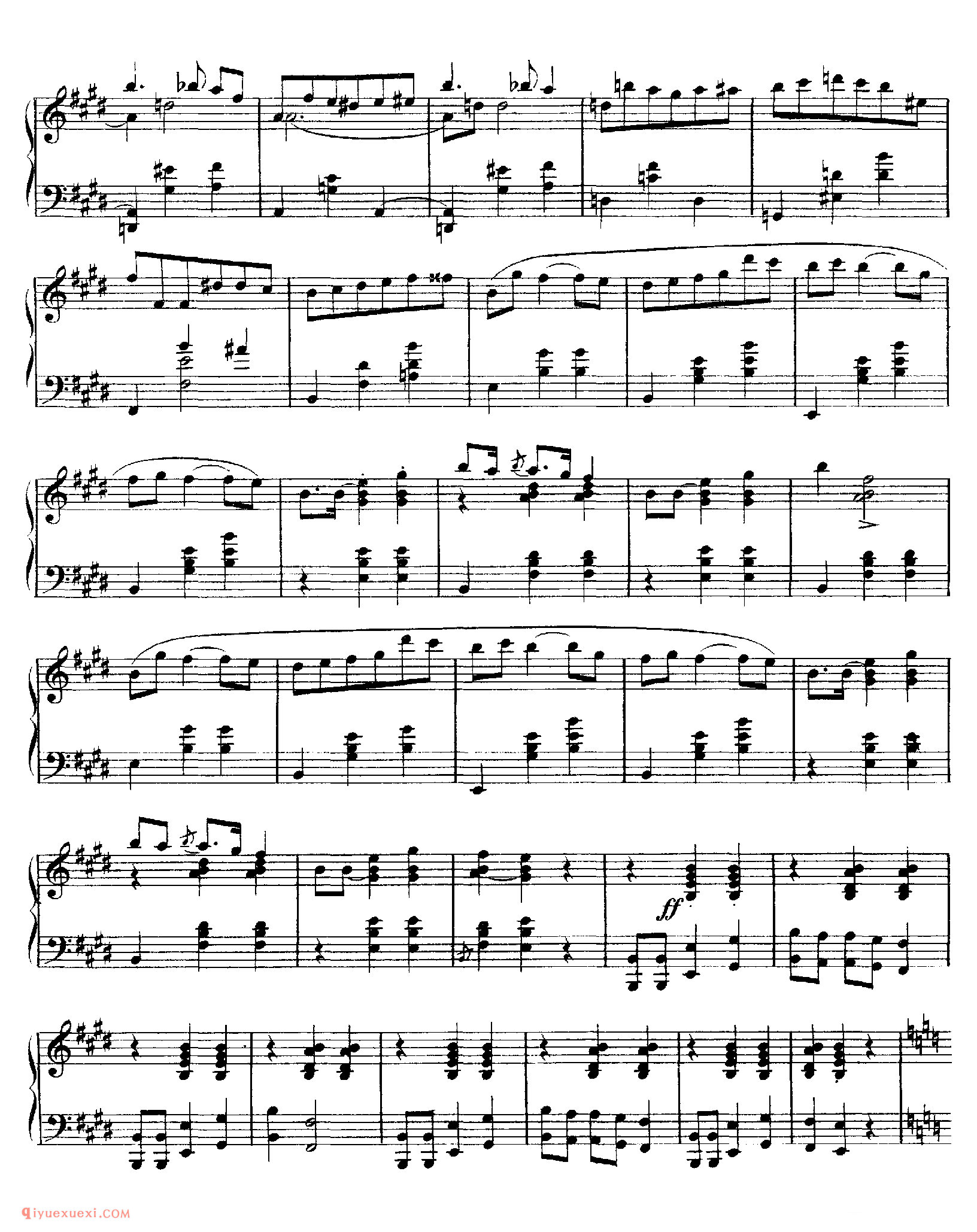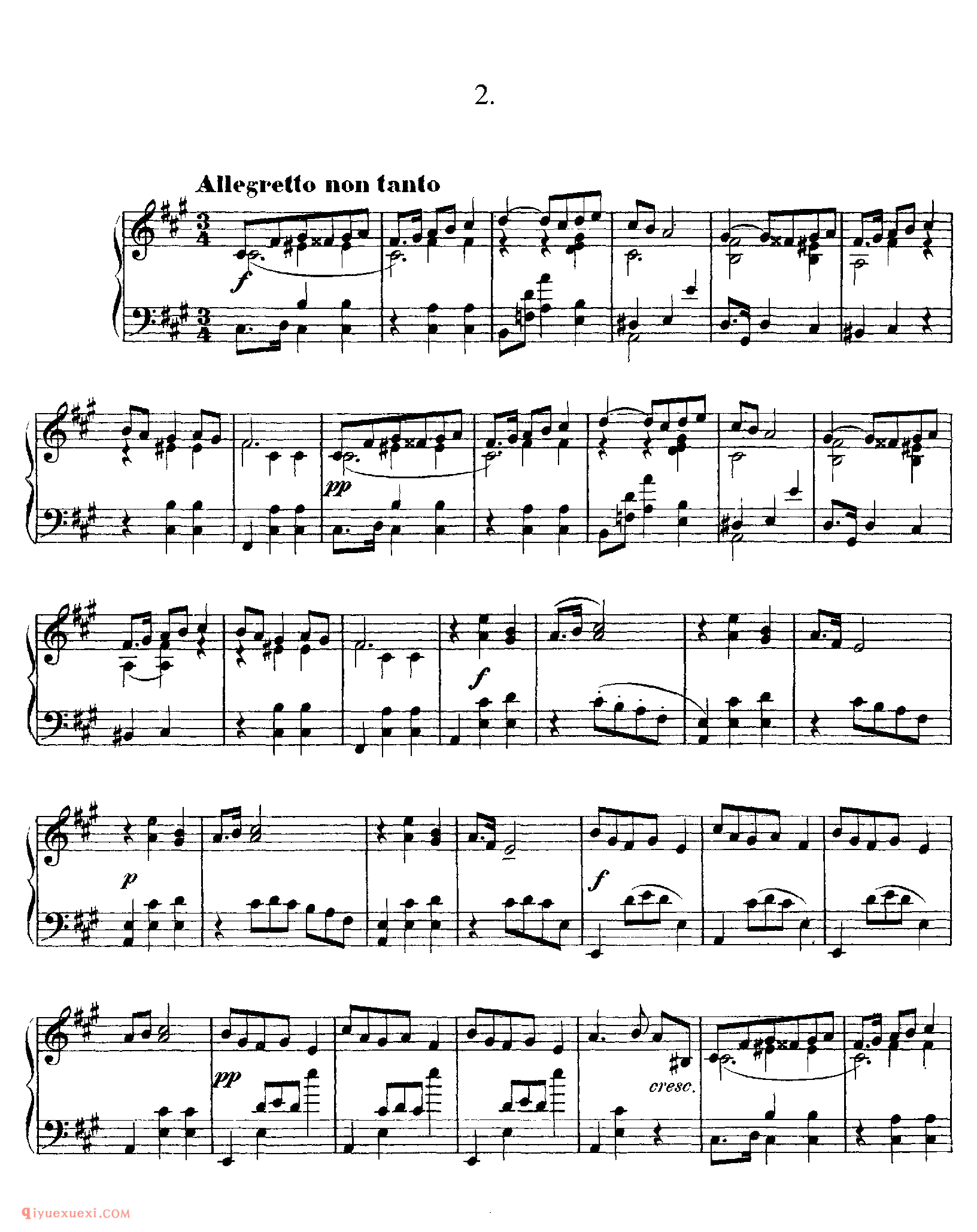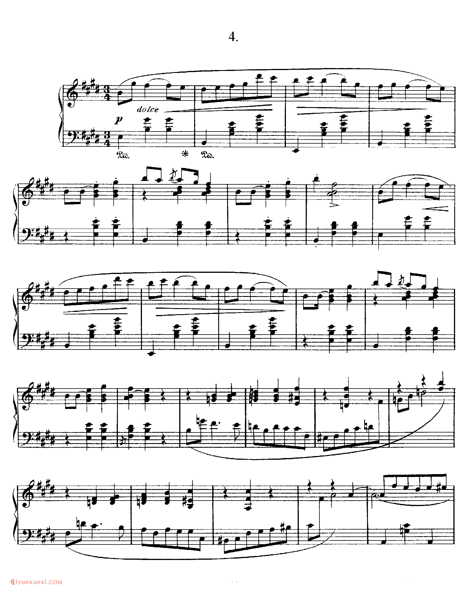4. E大调,中板,旋律流畅而高雅。