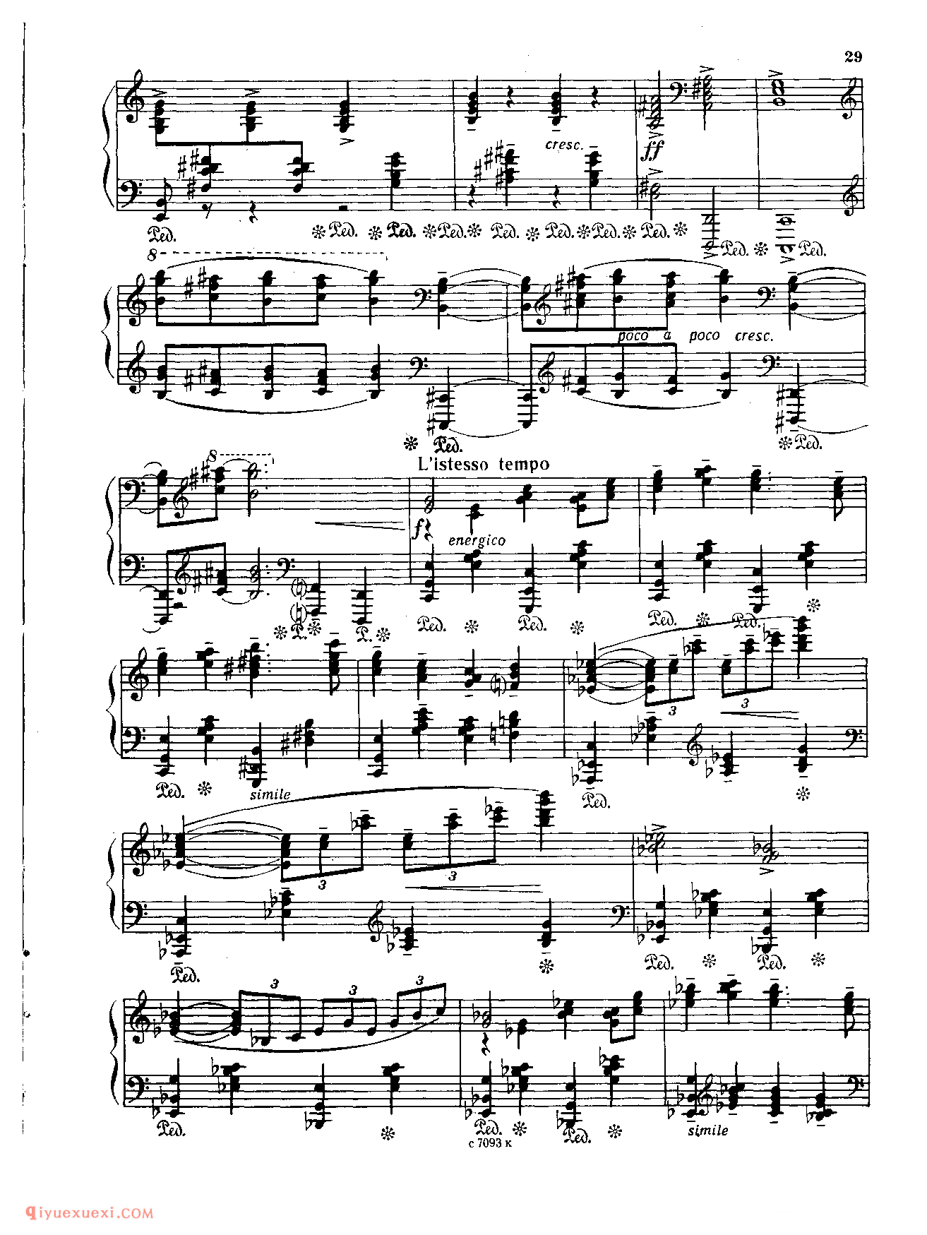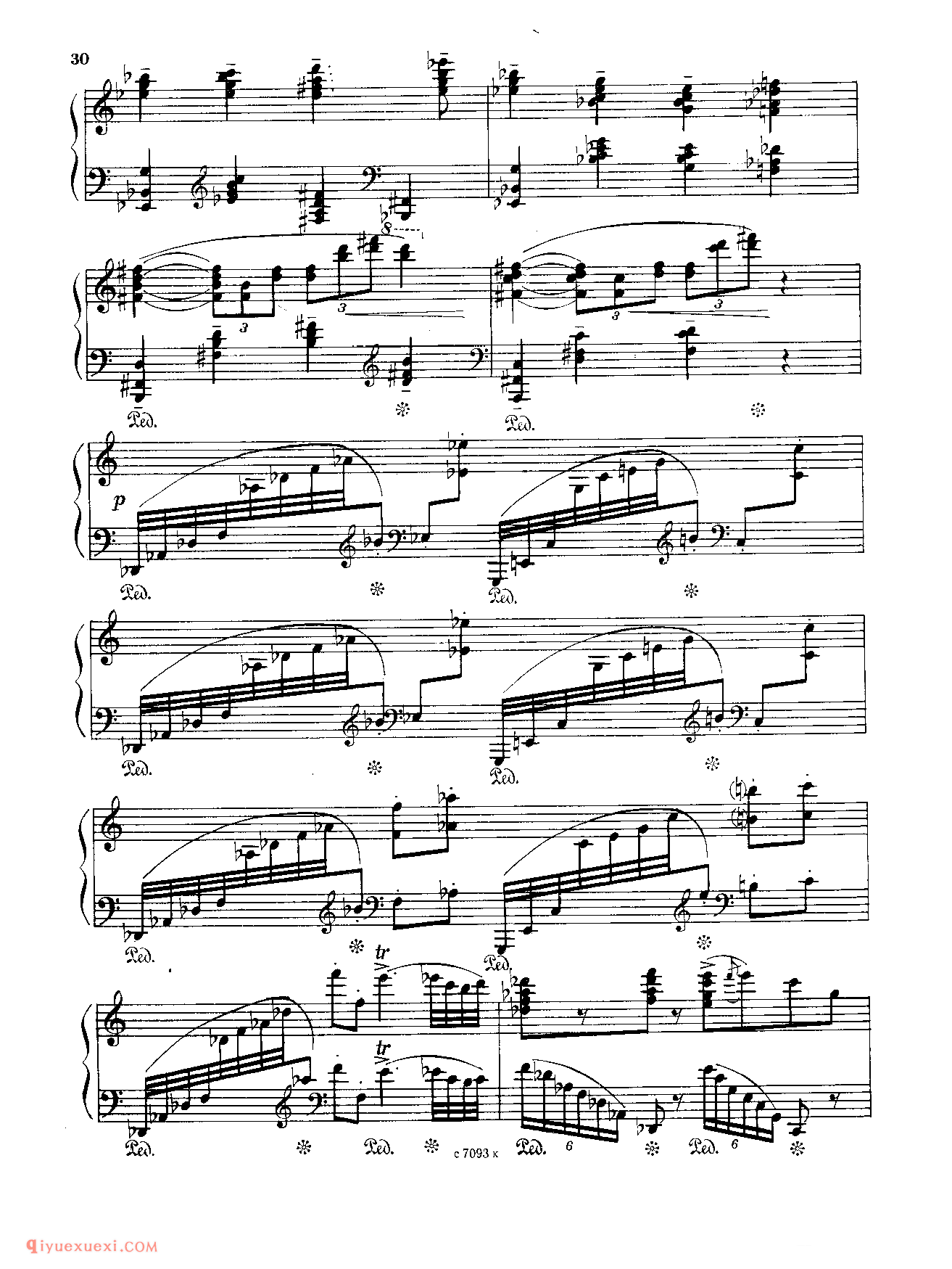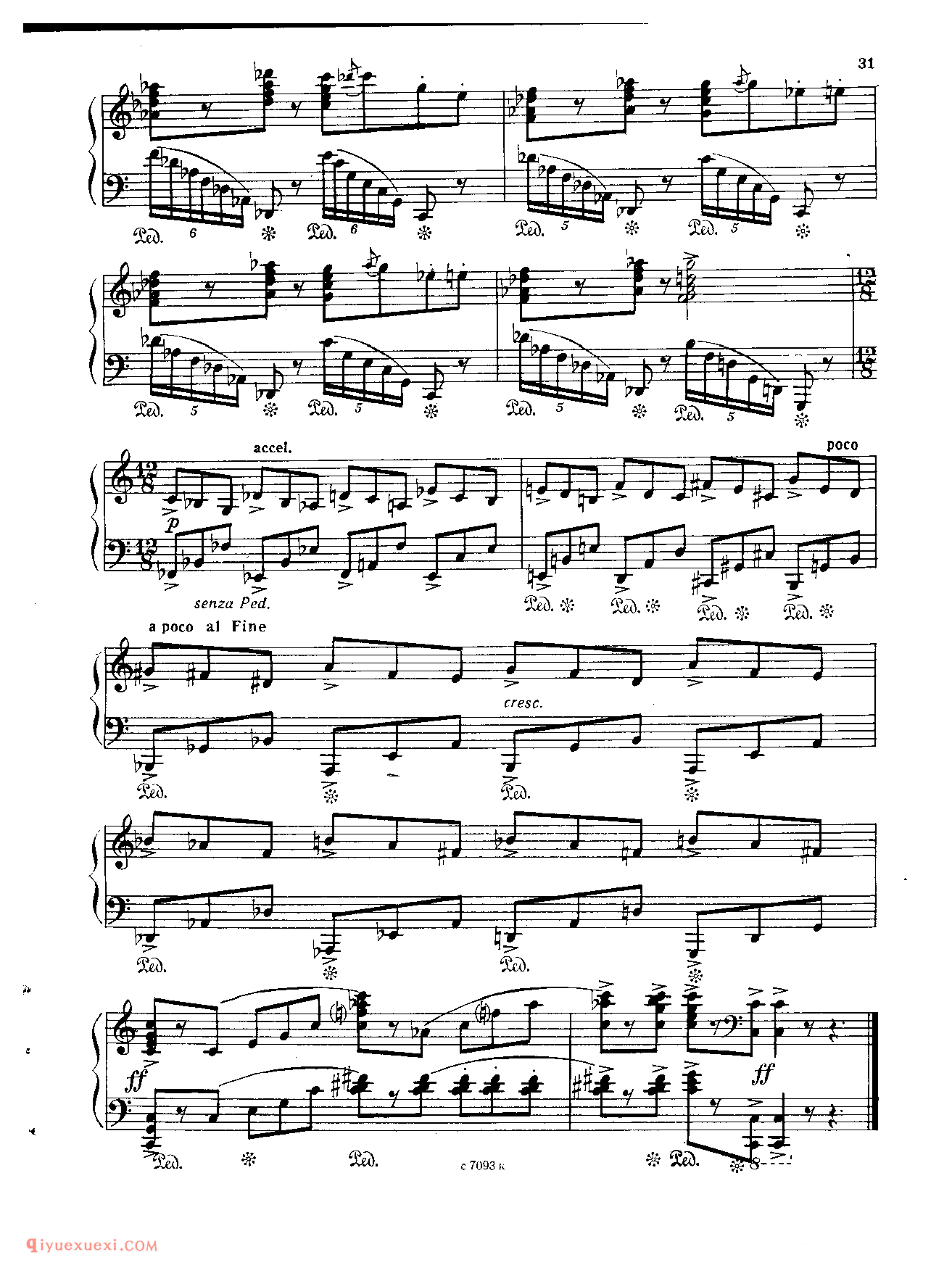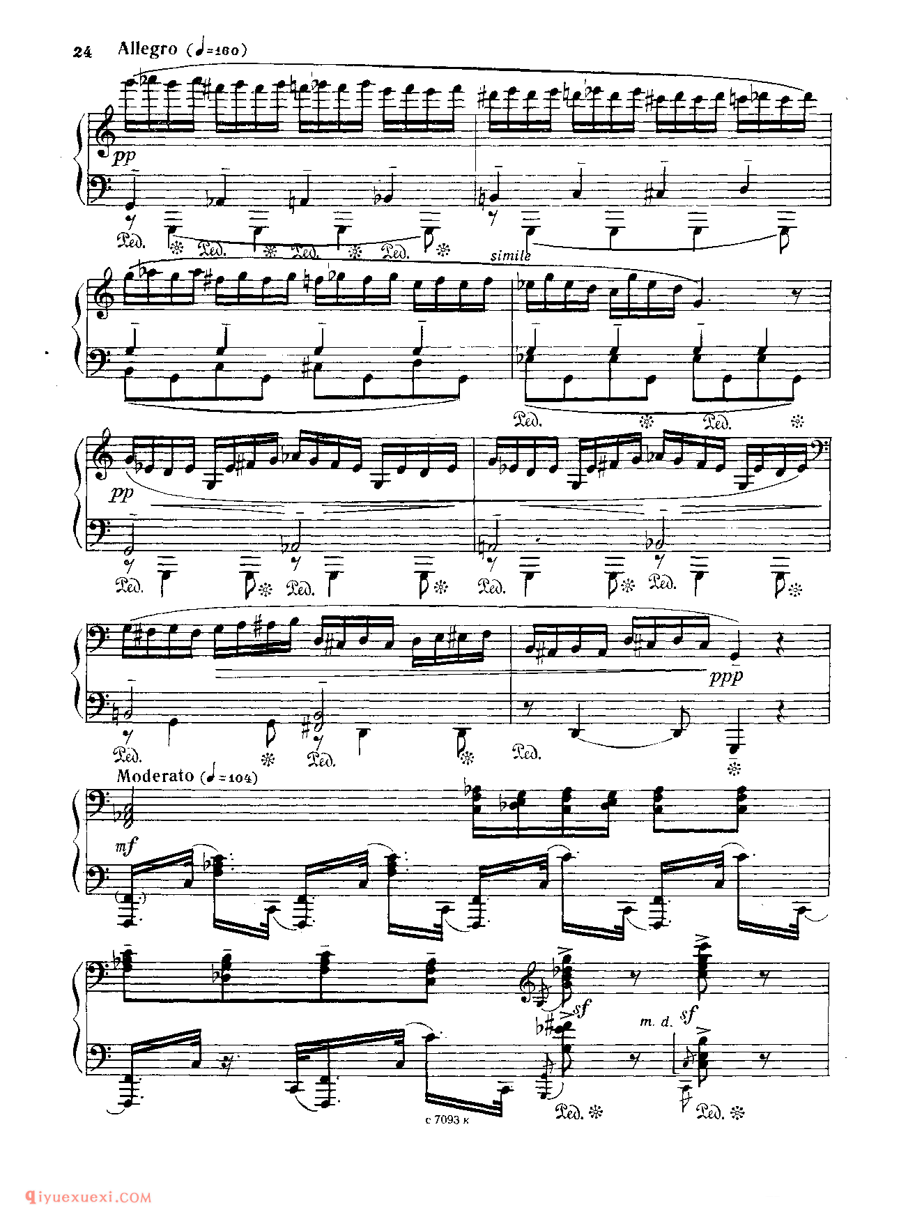 技巧: 1.这首作品和前面第八条的训练内容是一样的,都是音阶型的跑动练习,所不同的是这条练习曲以左手训练为主,左手需要注意的技巧要点和右手一样,仍然是换指动作的准确性。(具...