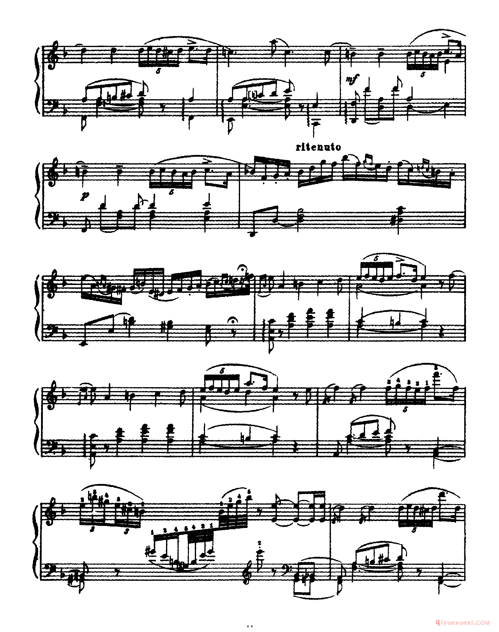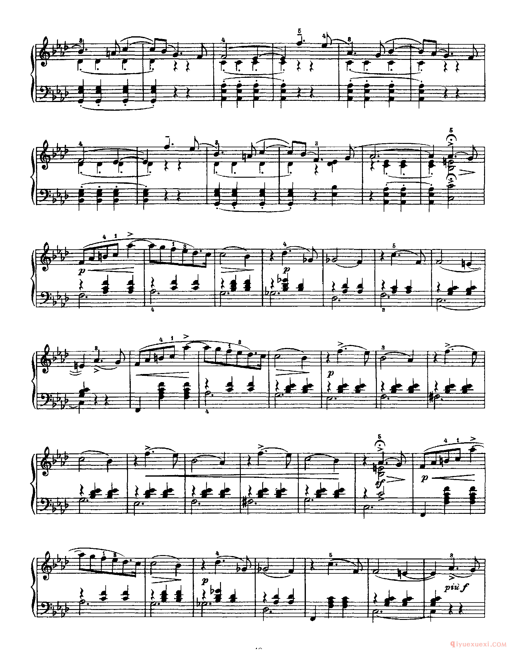 这首乐曲的左手弹奏时,小指既要站稳、保持,大指和三指又可略带轻微地带动手掌的翻动动作, 值得注意的是,19世纪的装饰音往往是在强拍之前弹奏的。因此第11小节的装饰音可从前一小节...