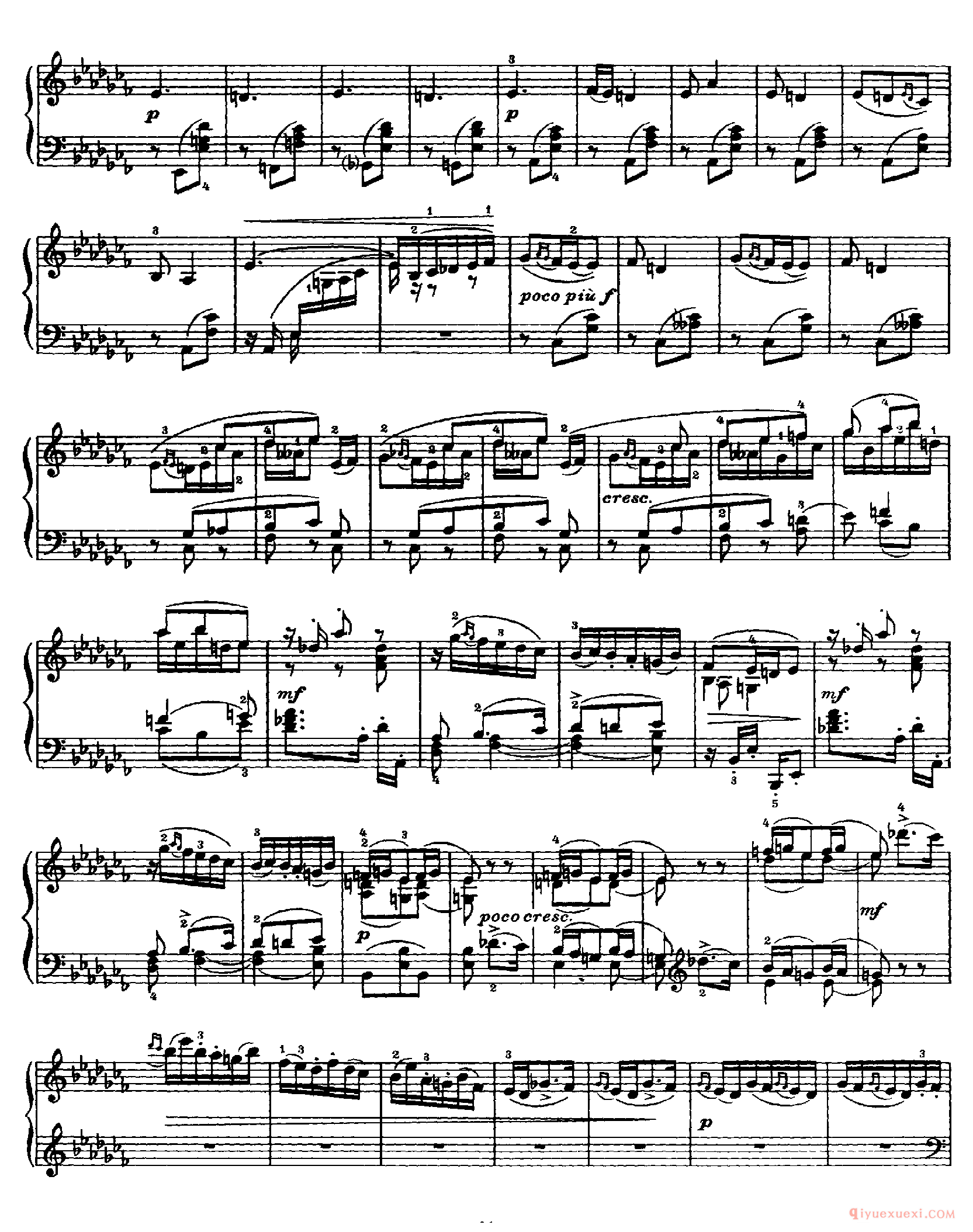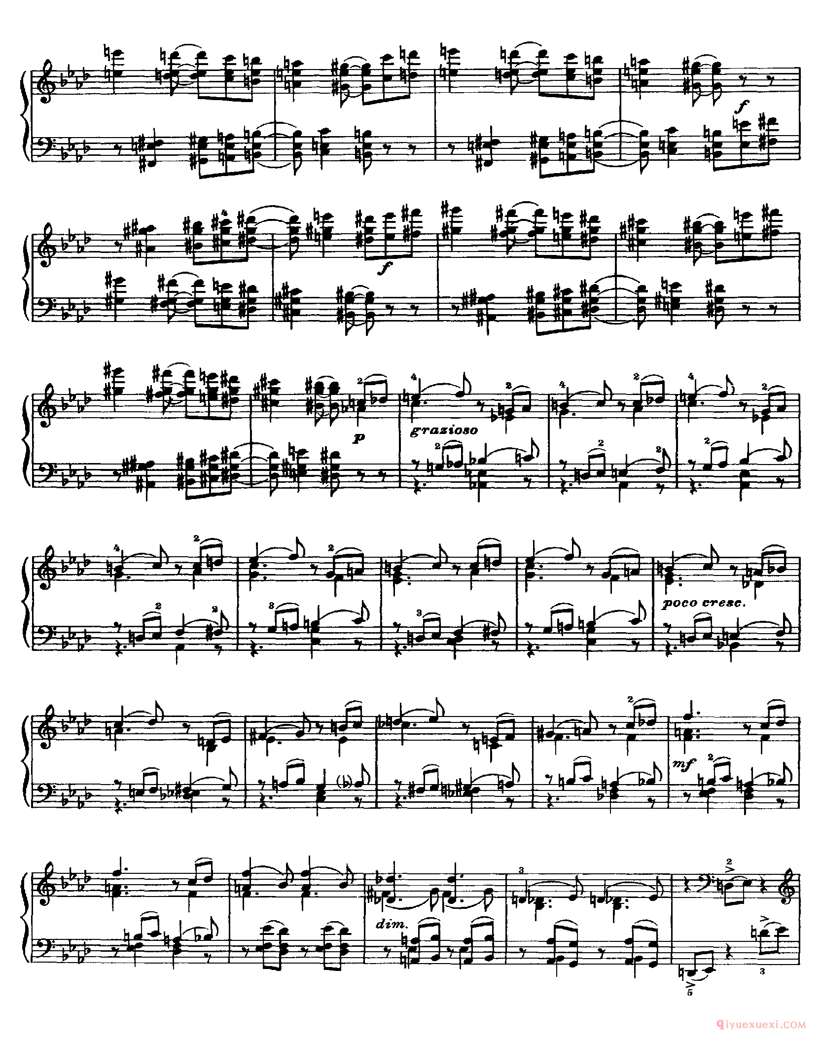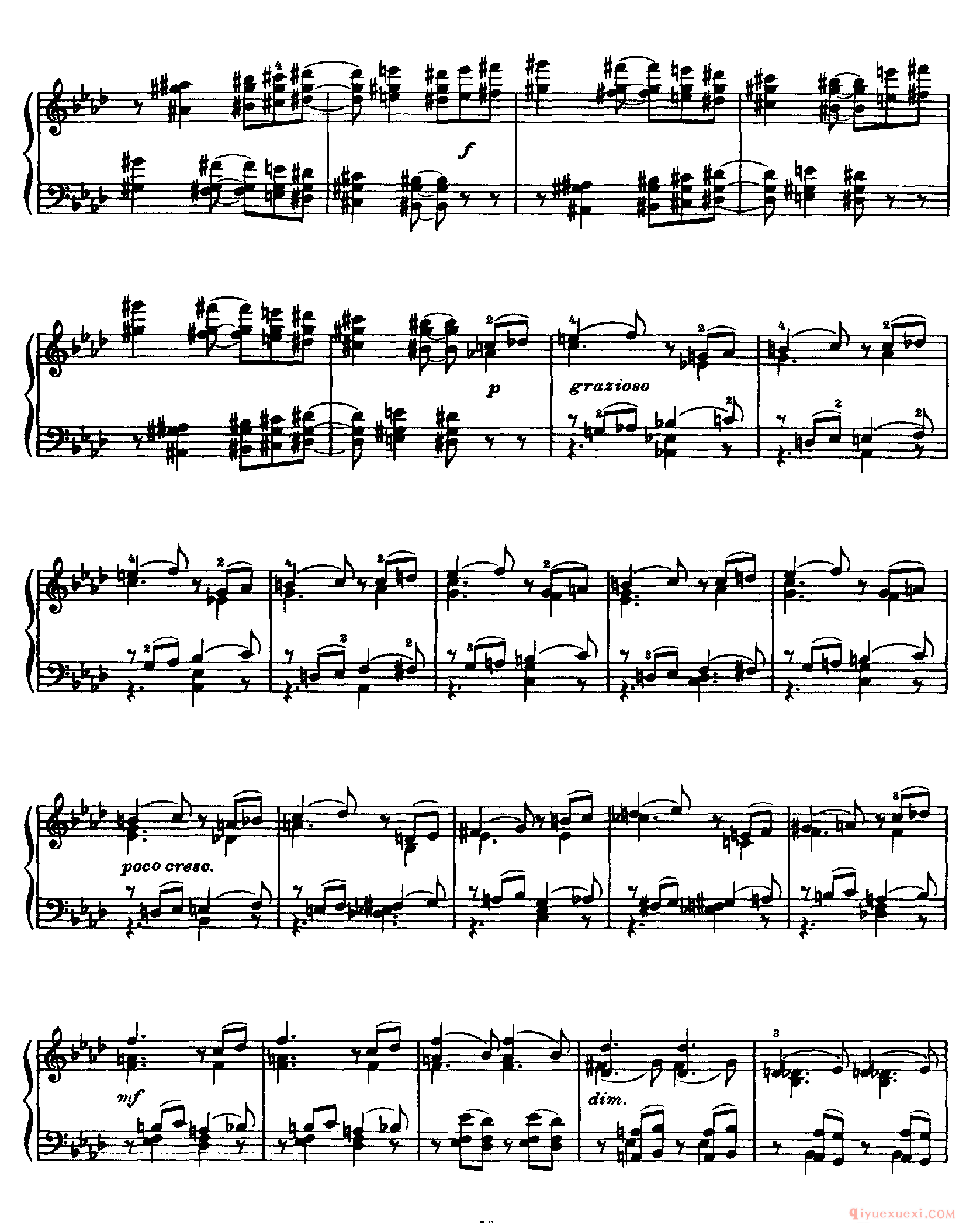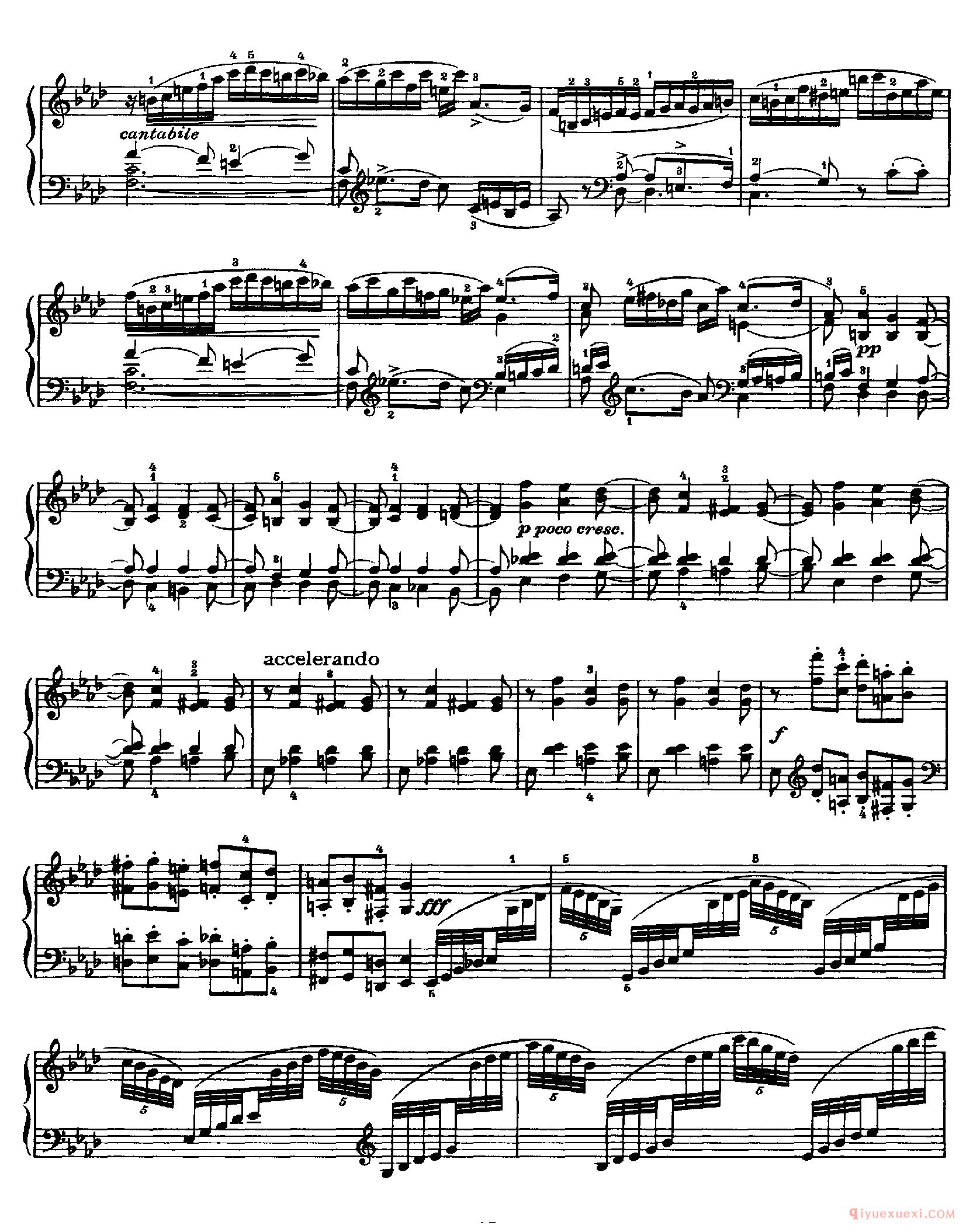 技巧: 1.这首作品和前面第八条的训练内容是一样的,都是音阶型的跑动练习,所不同的是这条练习曲以左手训练为主,左手需要注意的技巧要点和右手一样,仍然是换指动作的准确性。(具...