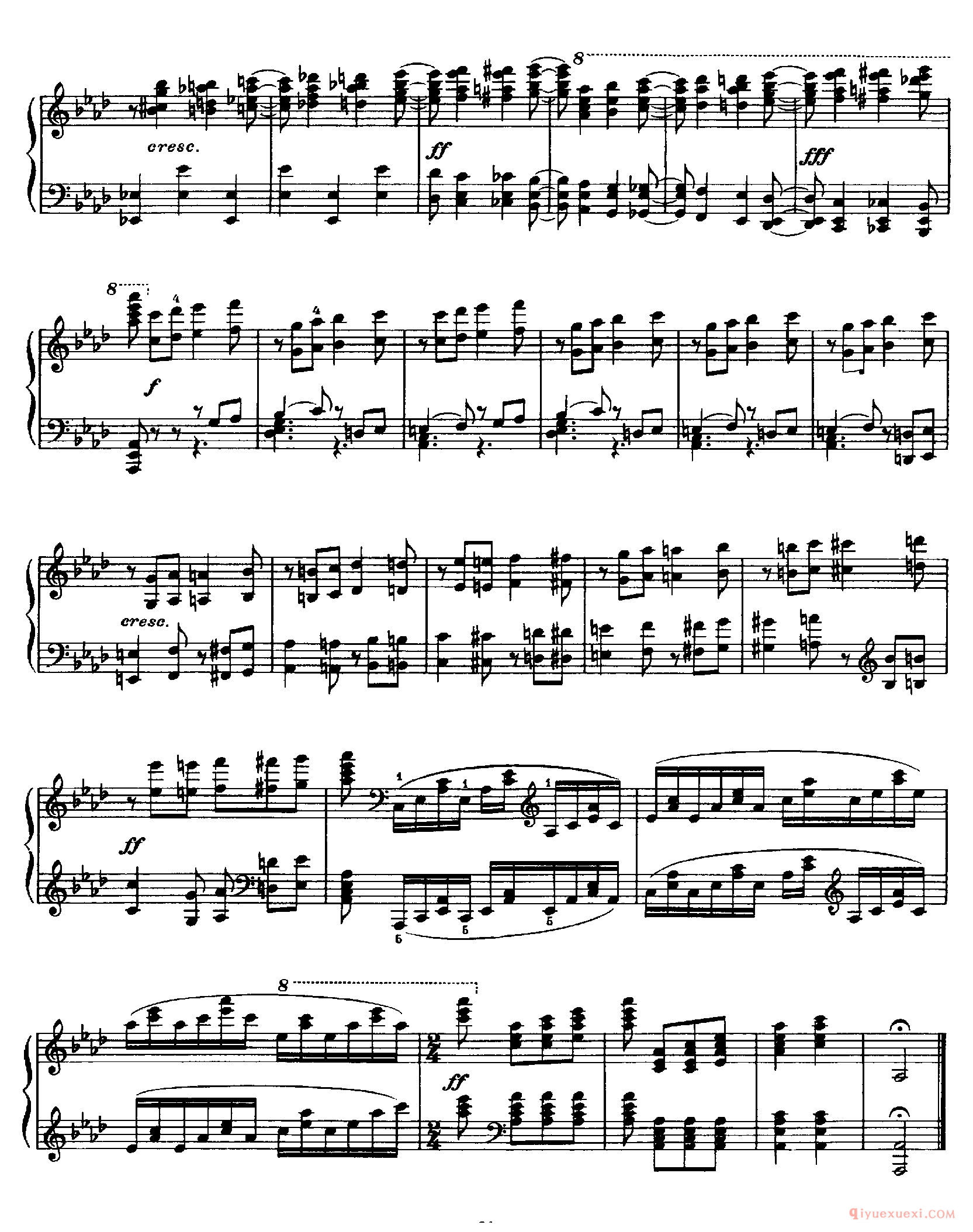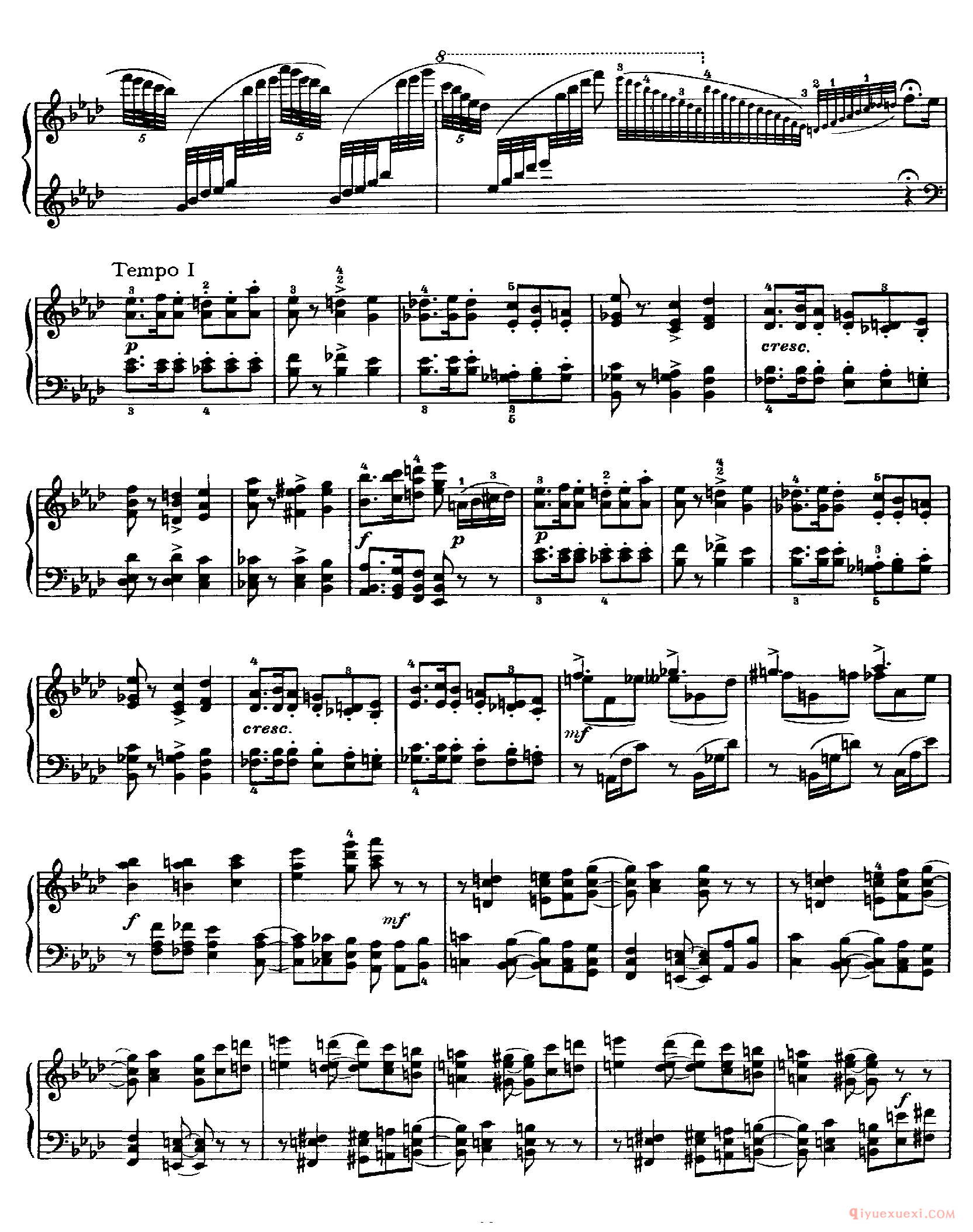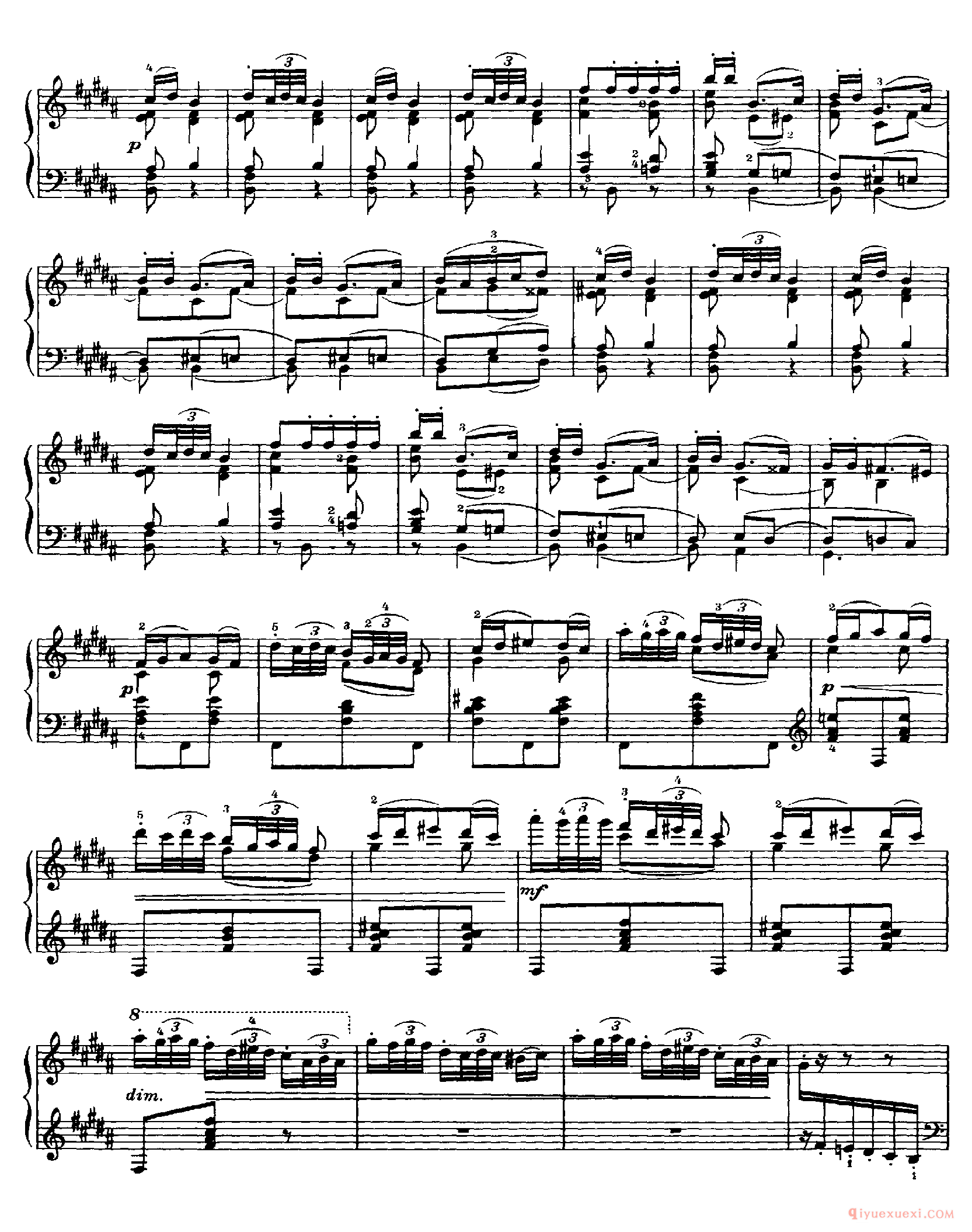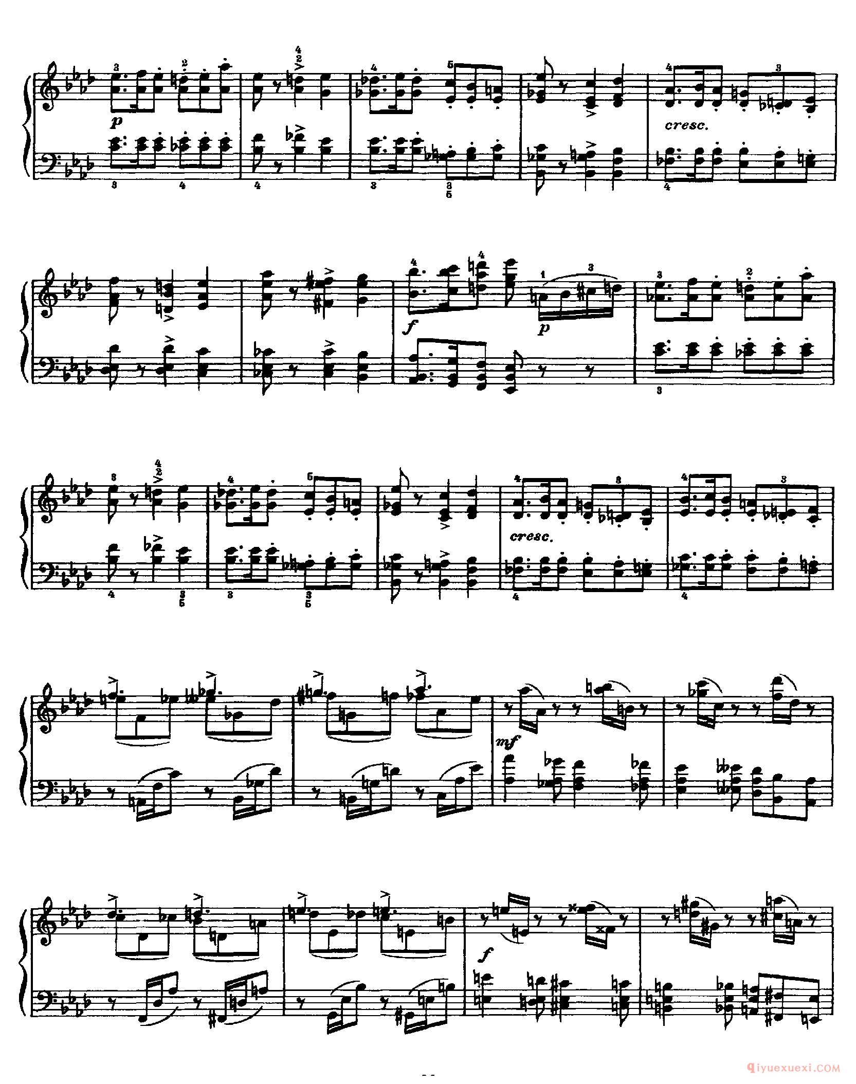 技巧: 1.这首作品和前面第八条的训练内容是一样的,都是音阶型的跑动练习,所不同的是这条练习曲以左手训练为主,左手需要注意的技巧要点和右手一样,仍然是换指动作的准确性。(具...