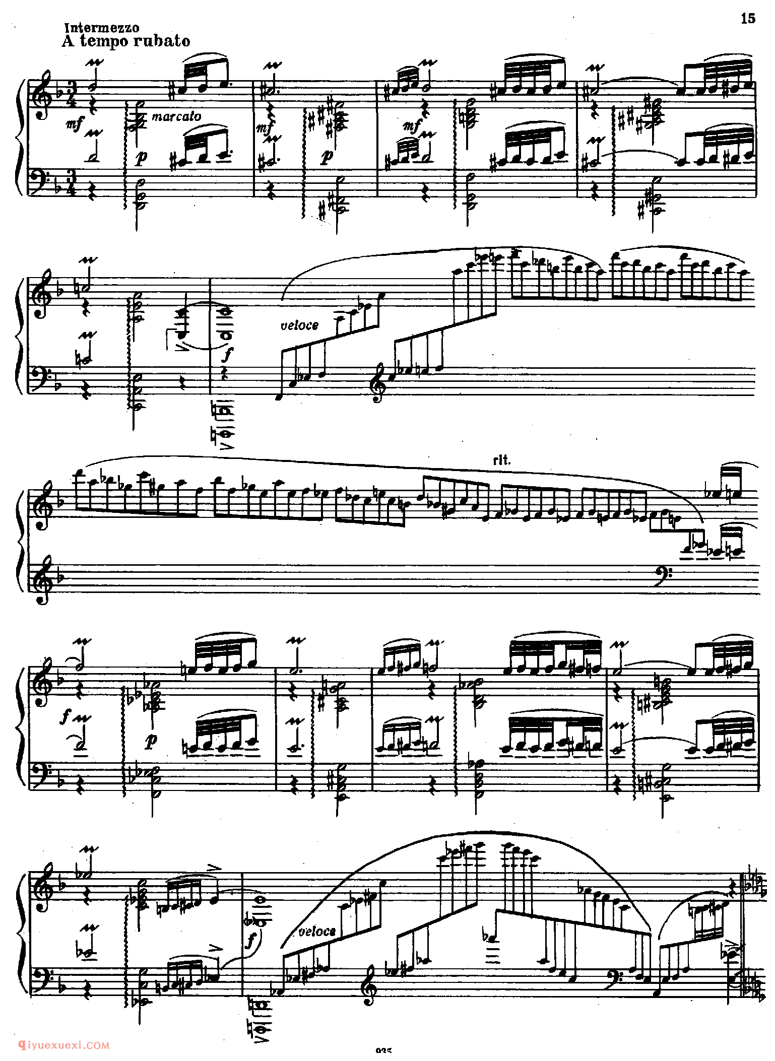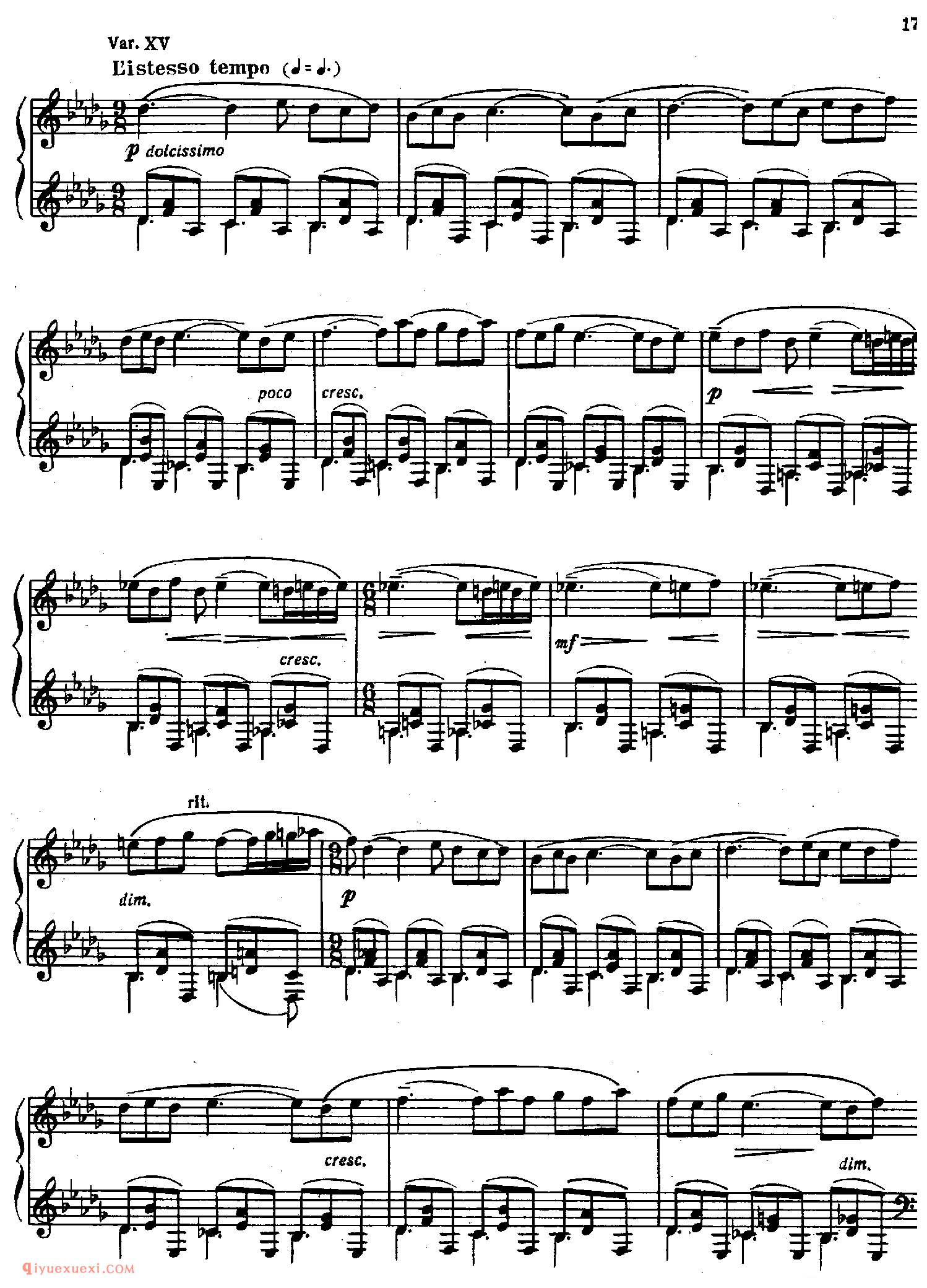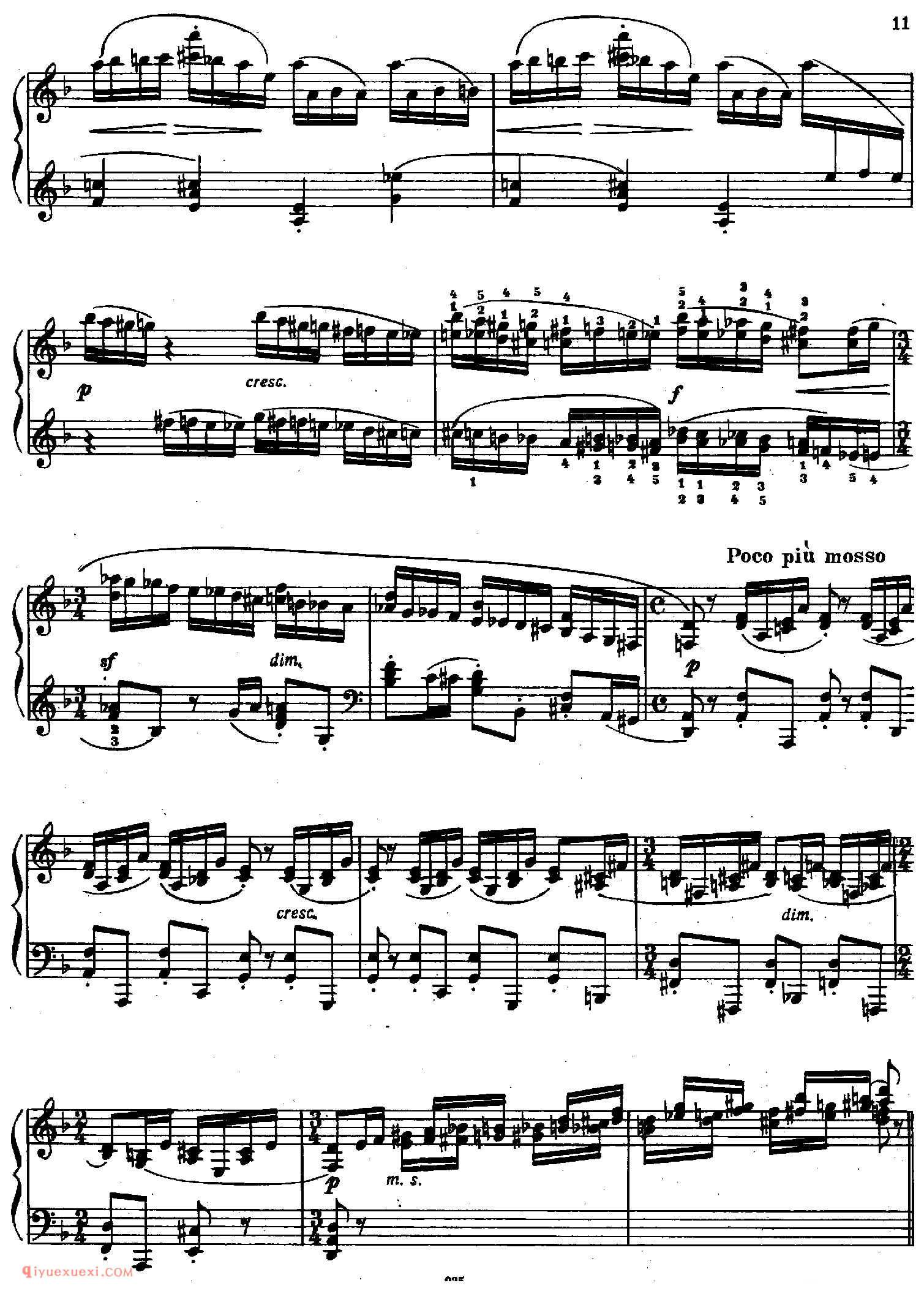 这首乐曲的左手弹奏时,小指既要站稳、保持,大指和三指又可略带轻微地带动手掌的翻动动作, 值得注意的是,19世纪的装饰音往往是在强拍之前弹奏的。因此第11小节的装饰音可从前一小节...