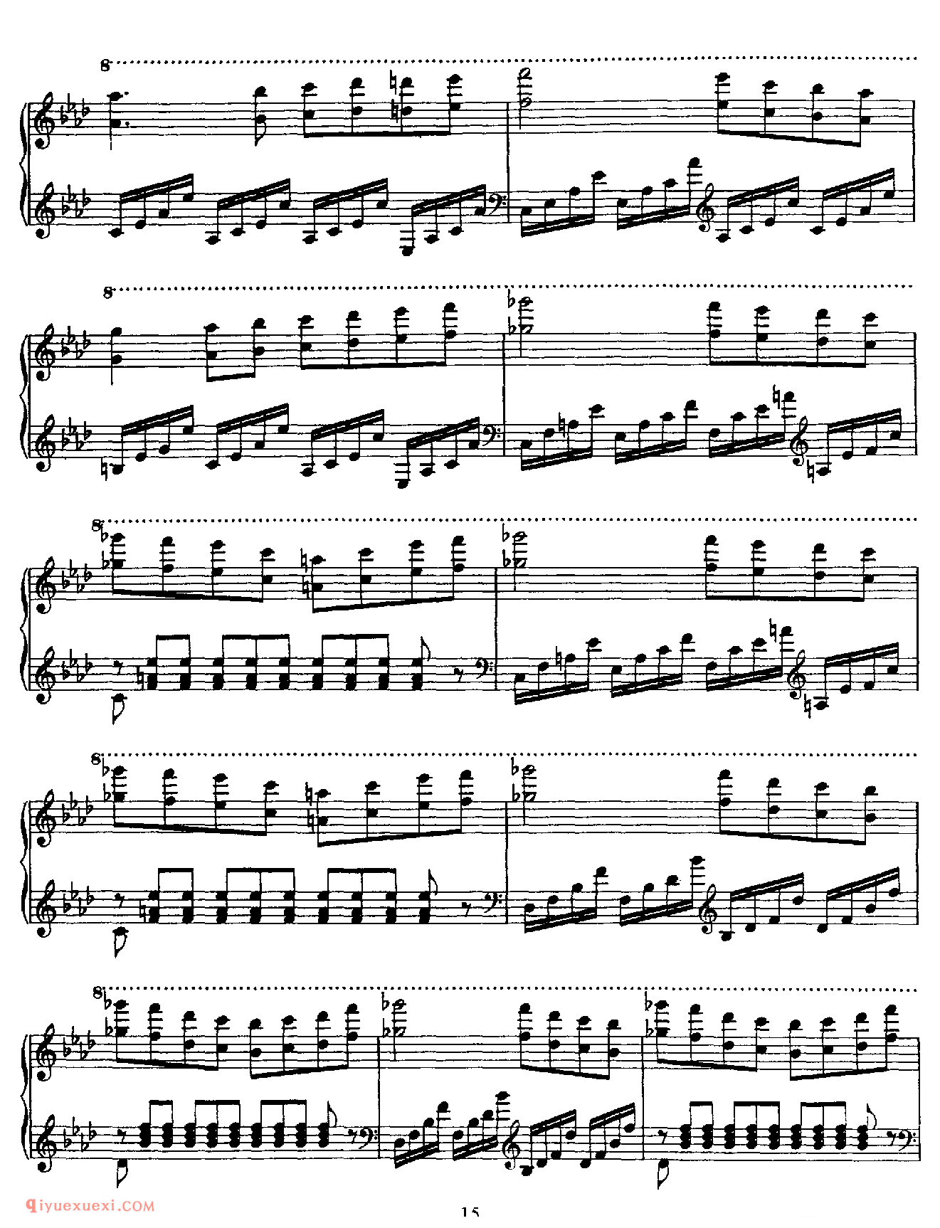 技巧: 1.这首作品和前面第八条的训练内容是一样的,都是音阶型的跑动练习,所不同的是这条练习曲以左手训练为主,左手需要注意的技巧要点和右手一样,仍然是换指动作的准确性。(具...