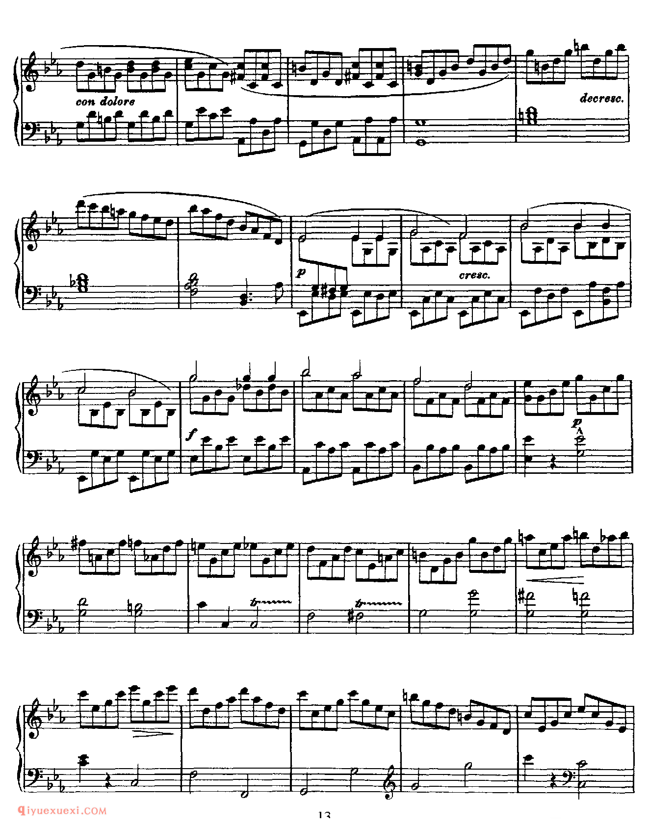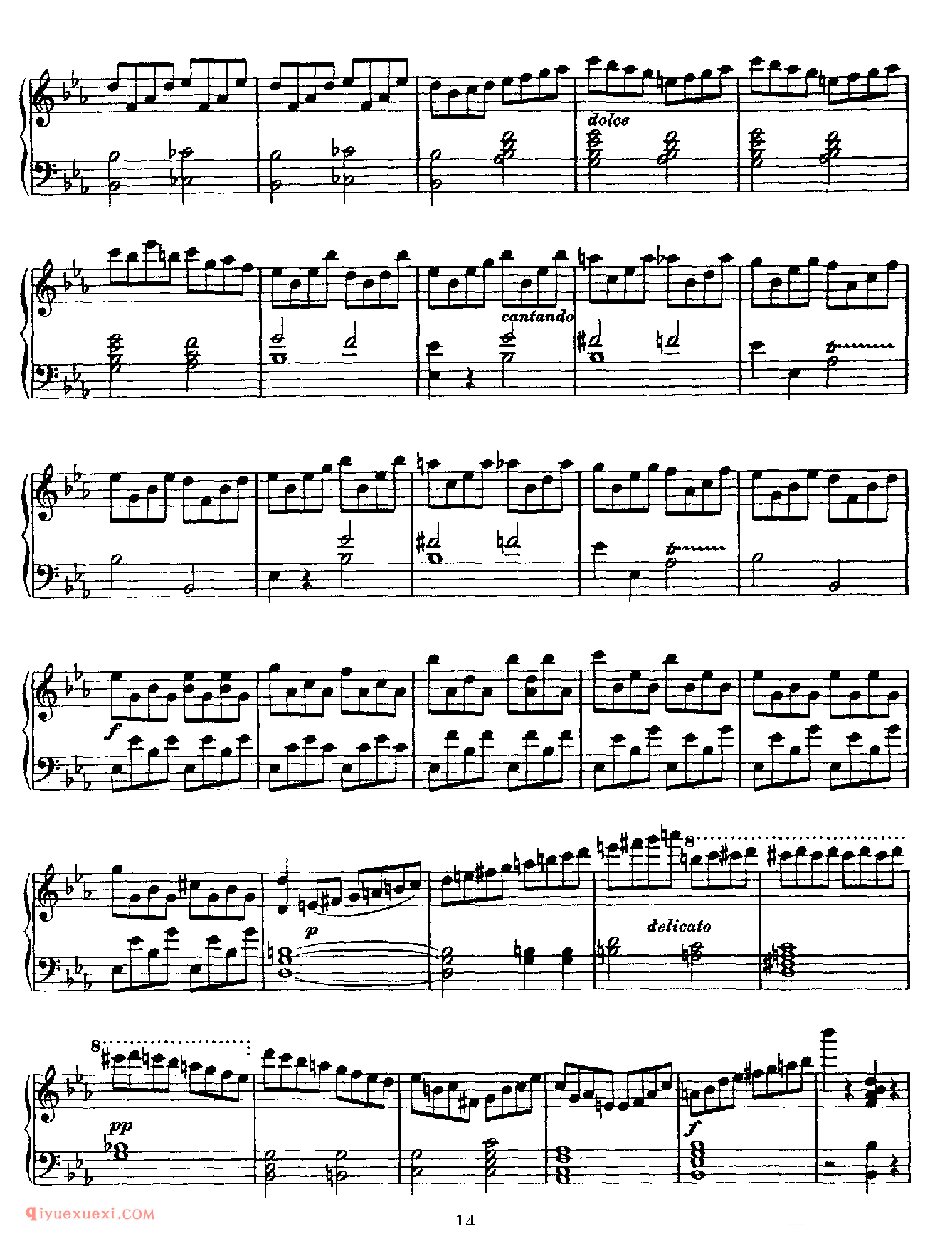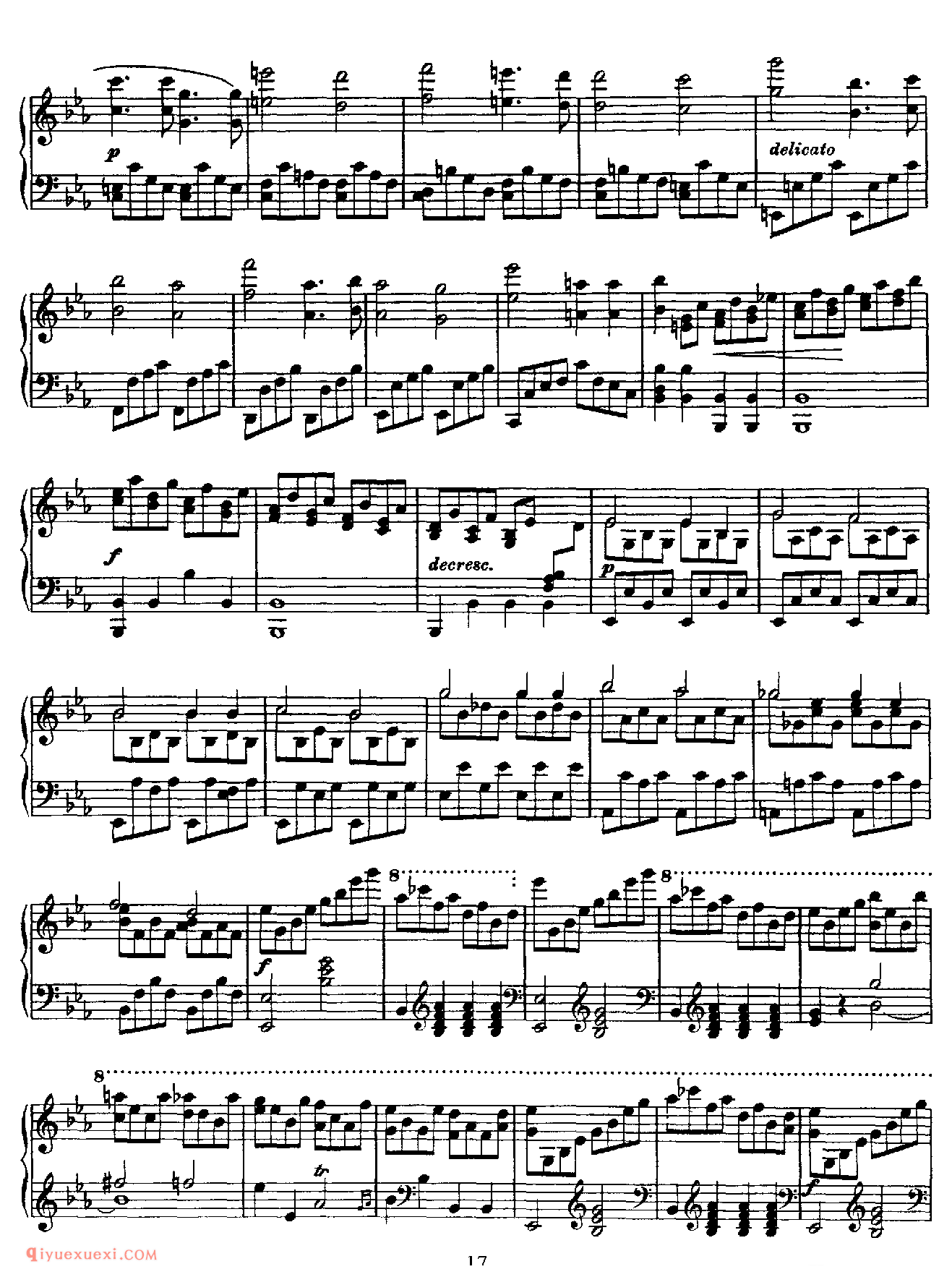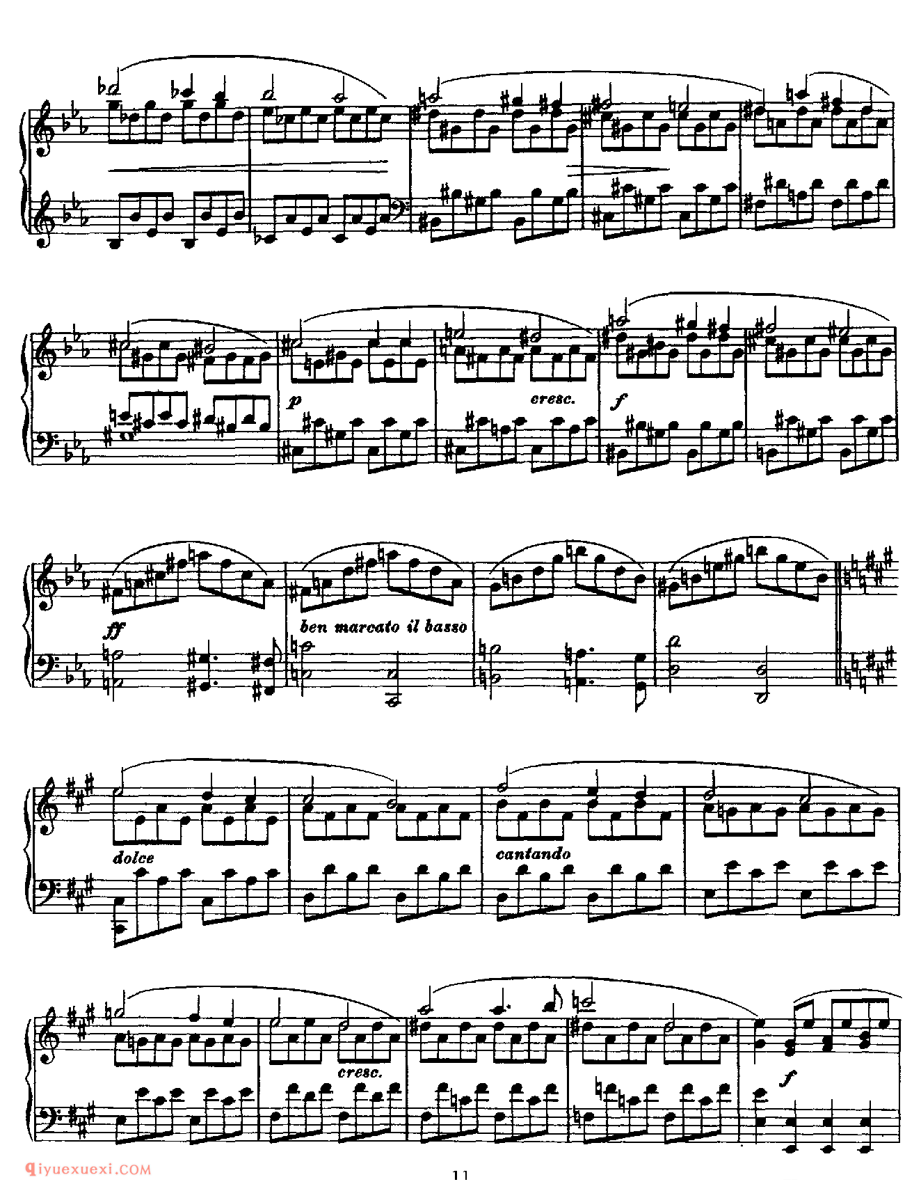 这首乐曲的左手弹奏时,小指既要站稳、保持,大指和三指又可略带轻微地带动手掌的翻动动作, 值得注意的是,19世纪的装饰音往往是在强拍之前弹奏的。因此第11小节的装饰音可从前一小节...