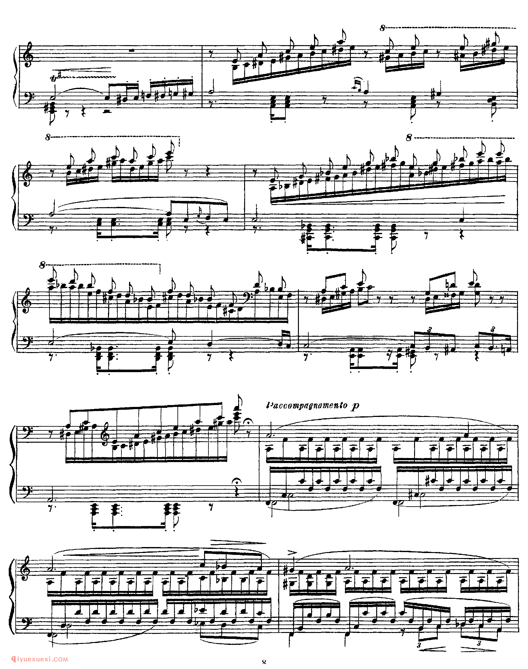 3. 平静的行板 Andante Placido ,升F大调,6/8拍。改写后成为补遗部分的第一首《船歌》Gondoliera 。