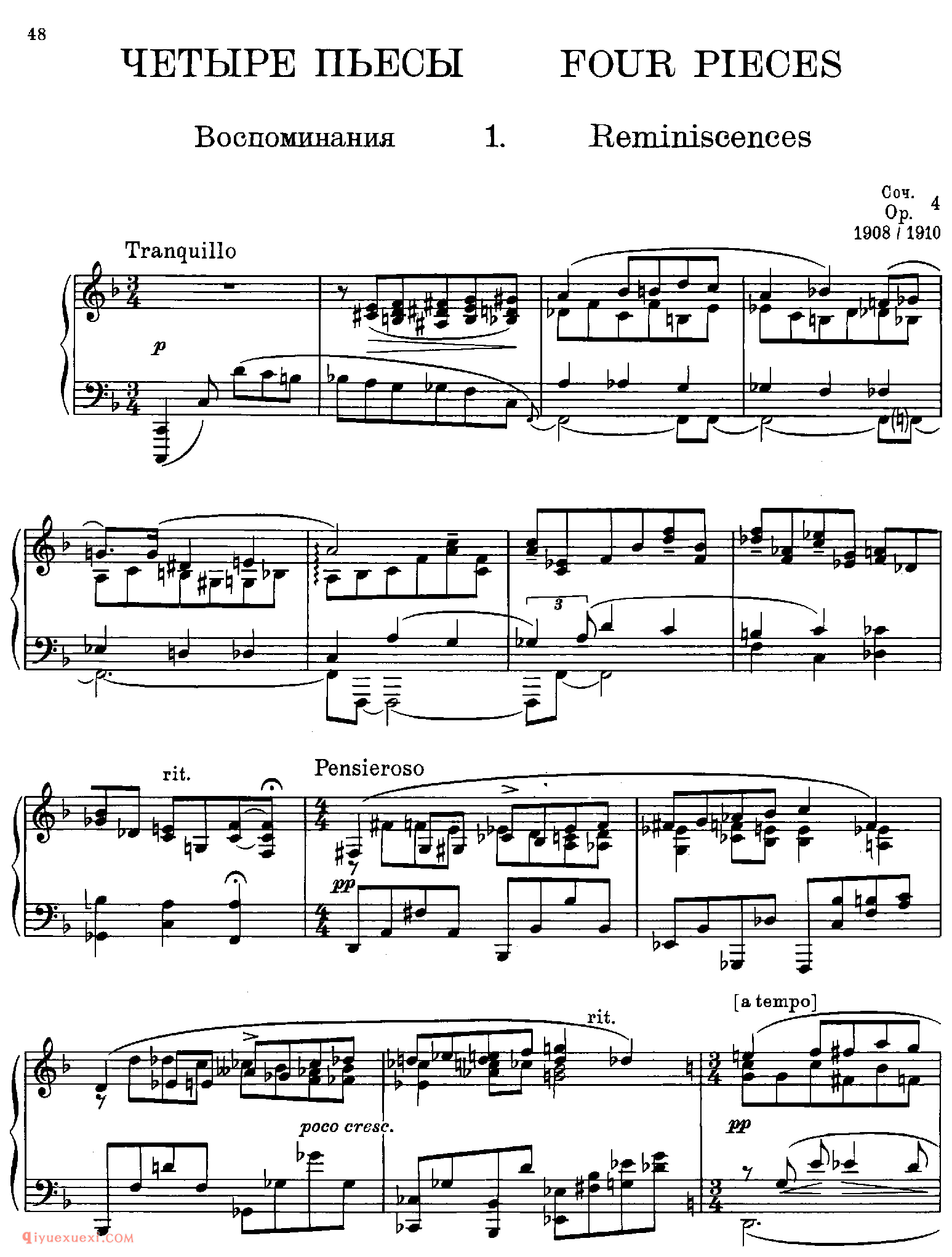 4 Pieces, Op 4_钢琴小品集_普罗科菲耶夫钢琴谱高清电子版乐谱歌词图片是器乐学习网于2021年11月29日 16:22:42更新分享的钢琴曲谱;资源收录于钢琴曲谱栏目中;器乐学习网免费分享4 Pieces, Op 4_钢琴小品集_普罗科菲耶夫钢琴谱简谱与五线谱歌谱图片,欢迎在线免费下载;器乐学习网无需注册会员,直接免费下载各类乐器学习资源及乐谱。
