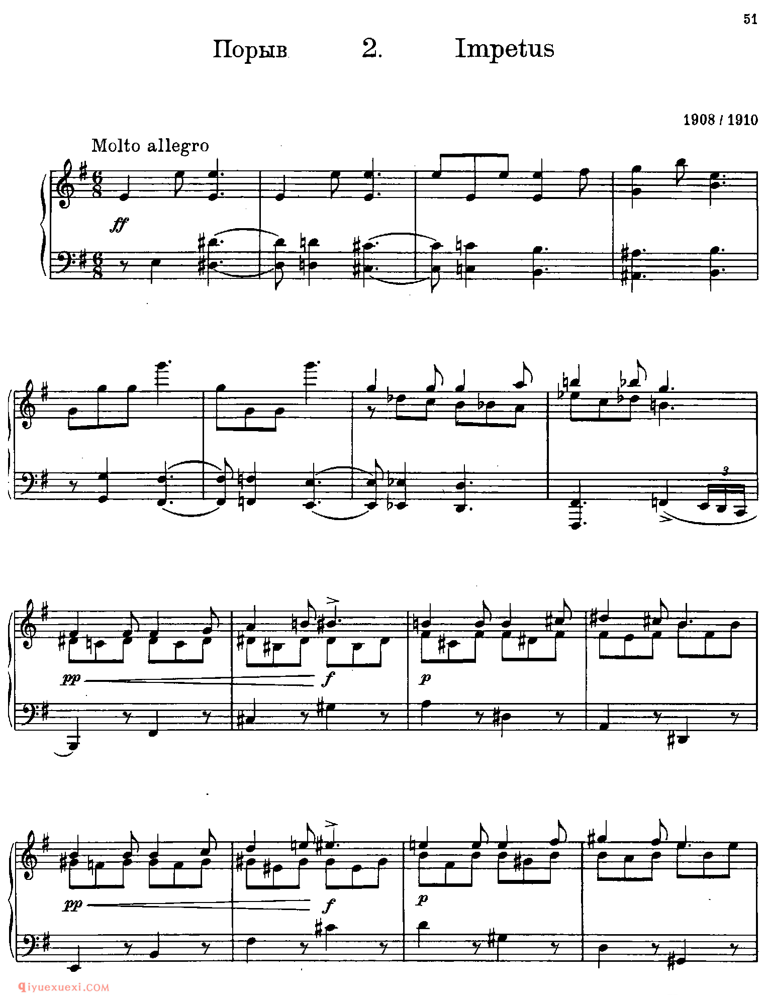 2. 热情 Impetus,甚快板,是纯粹的普罗科菲耶夫早期前卫风格。