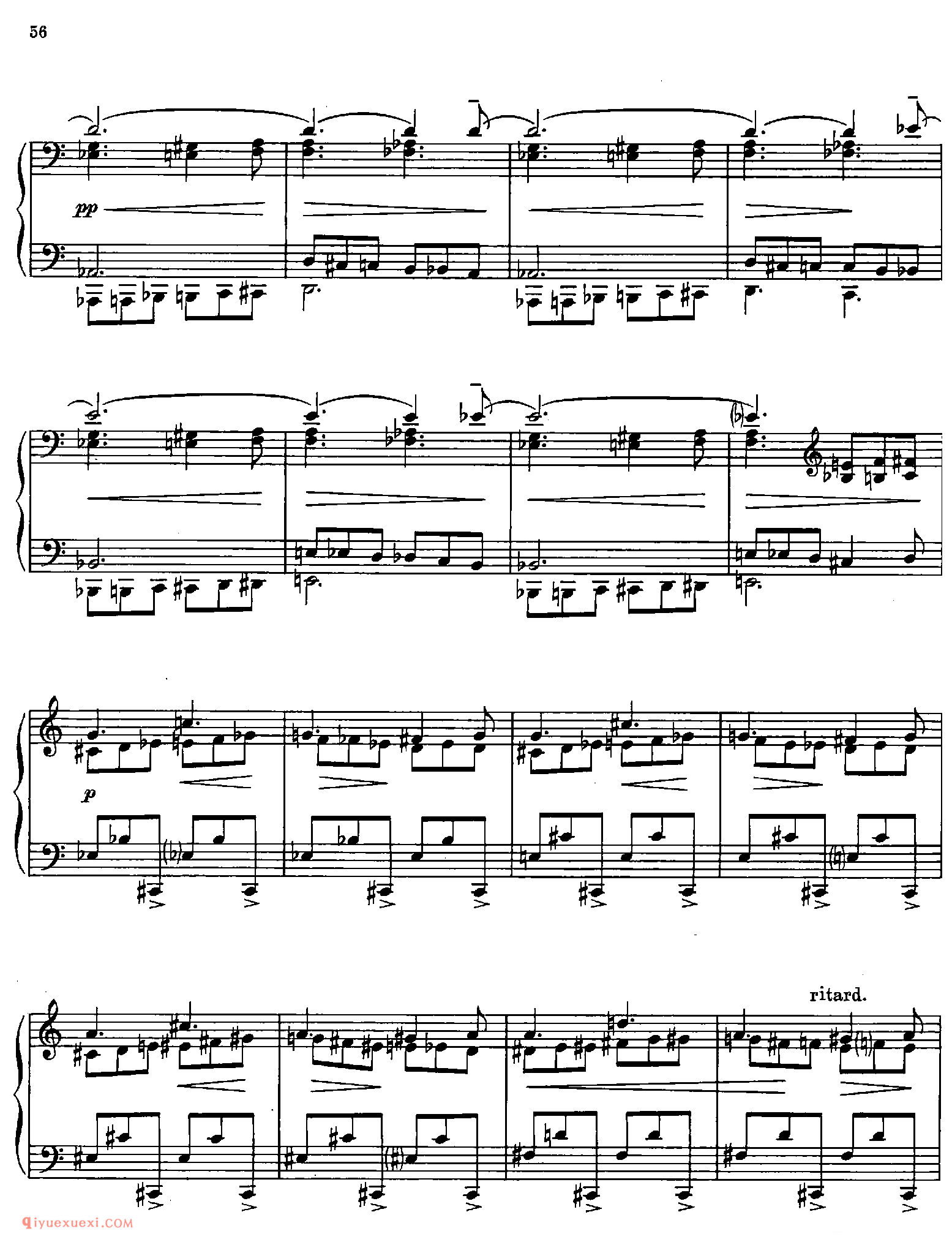 Prokofiev - Four Pieces Op.4《四首小品》Four Pieces Op.4 ,作于1910-1912年(另一说法是从完成Op.1后即开始动笔写作)。普罗科菲耶夫早期创作时喜欢为自己的作品添加标题,并希望观众在欣赏他作品的同时感受到他高超的钢琴技术。因此,他早期的四部钢琴独奏作品演奏难度都非常大。这部作品的四首小品分别是:
